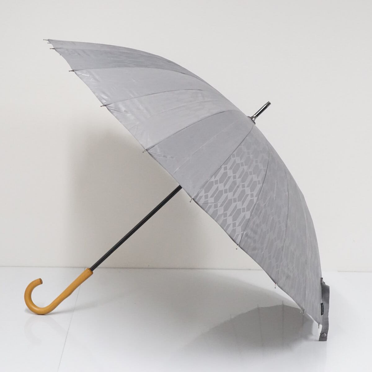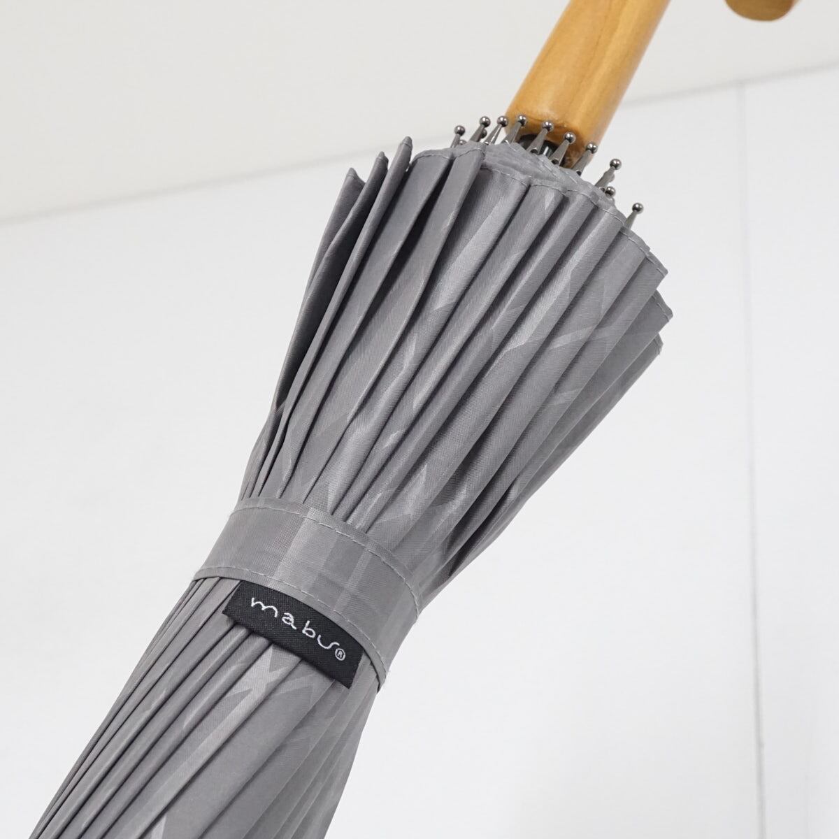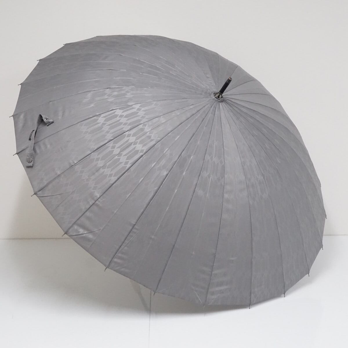 mabu マブ 24本骨傘 USED美品 銀×矢羽根 和柄 江戸切子 和モダン レトロ 多間 グラス骨 男女兼用 グレー 60cm UVカット A2992