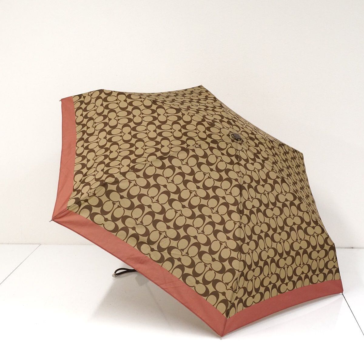 幅広い世代に人気のある「COACH」の折りたたみアンブレラです。