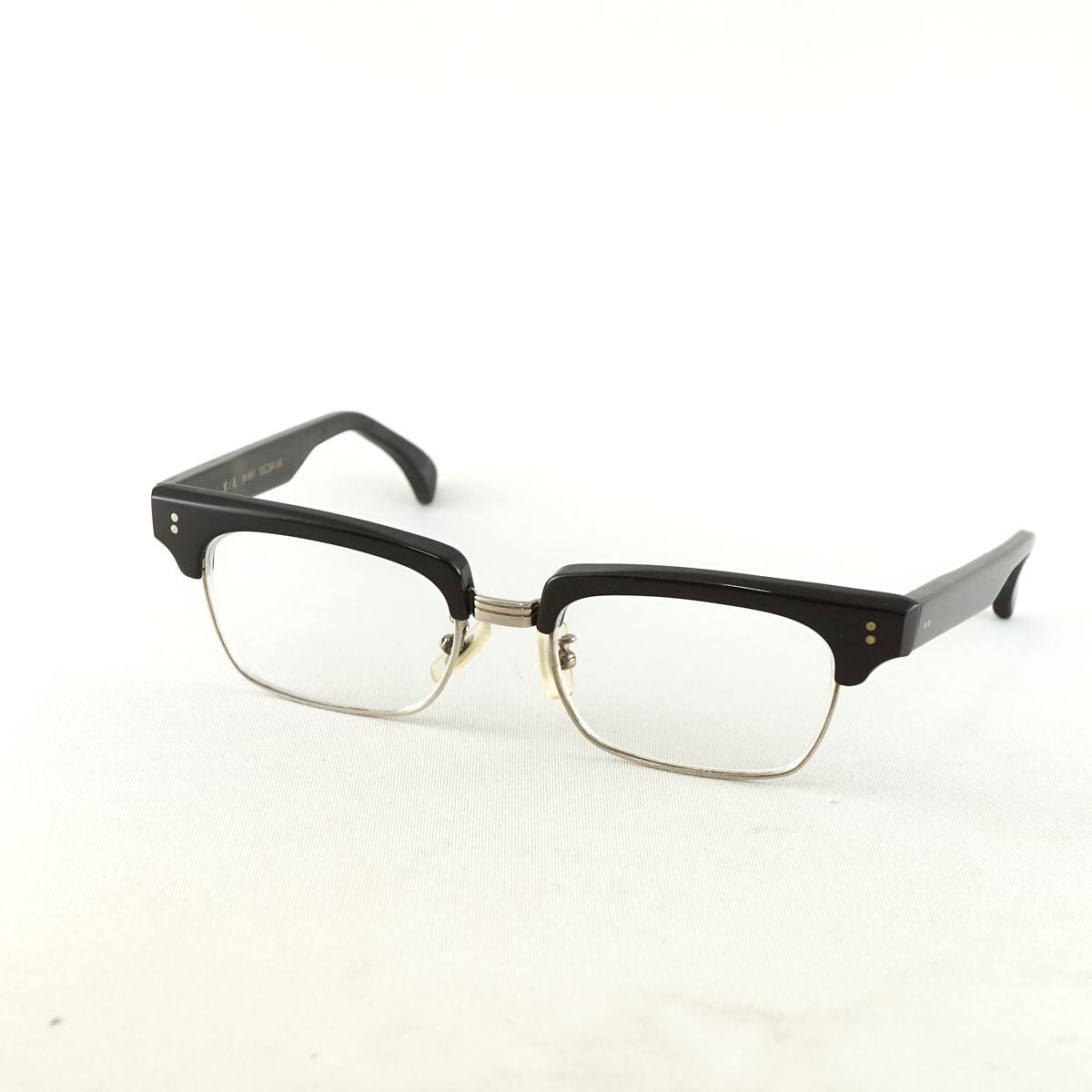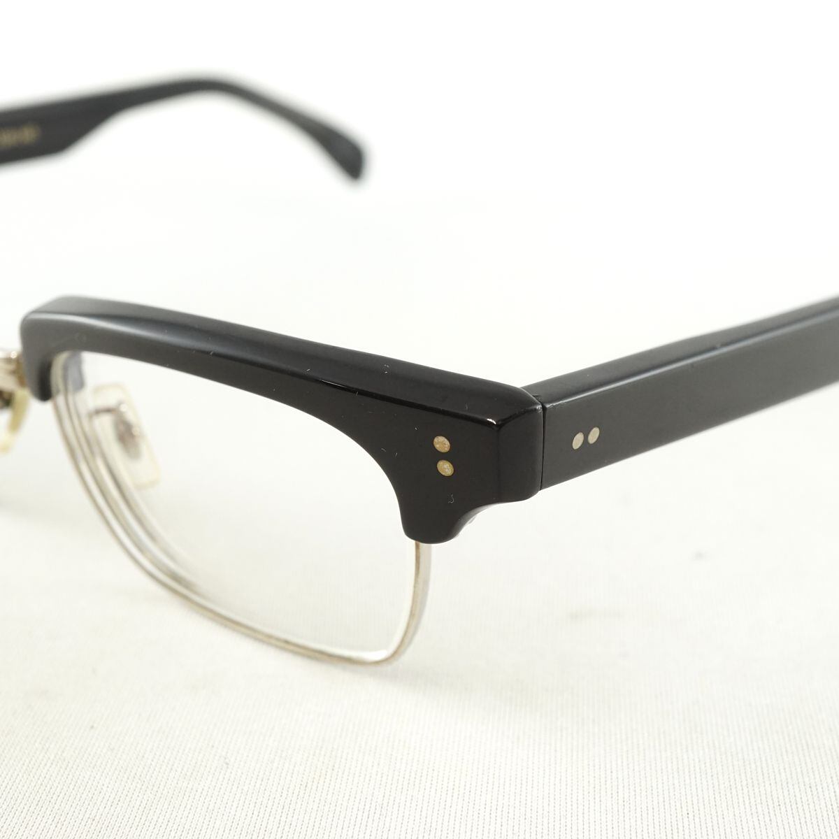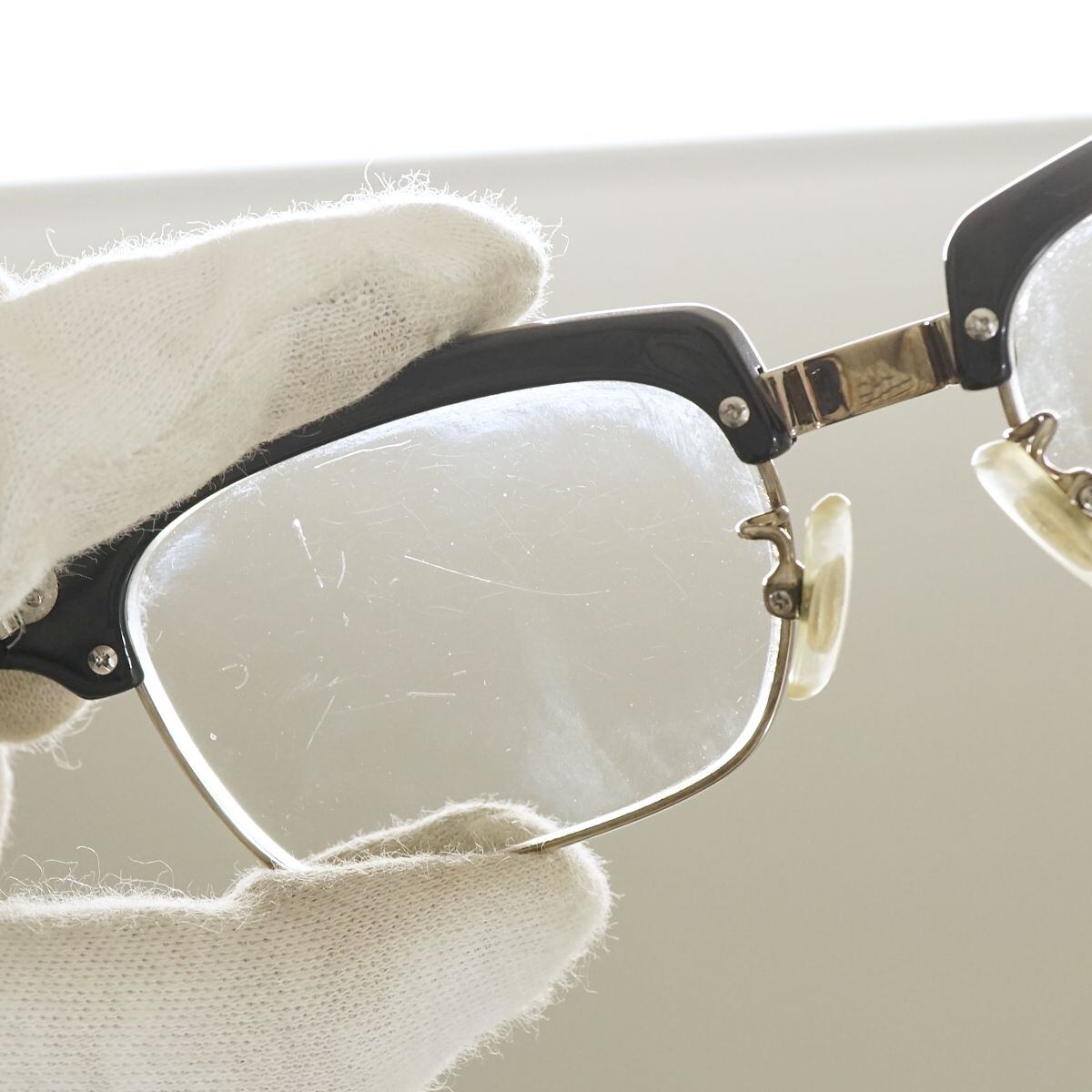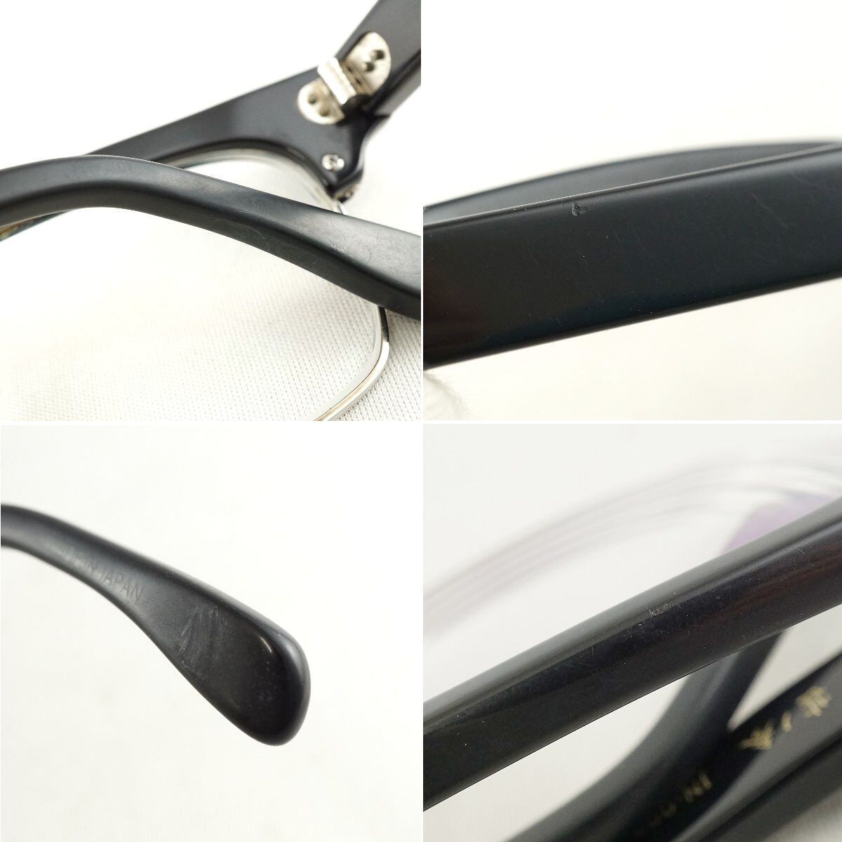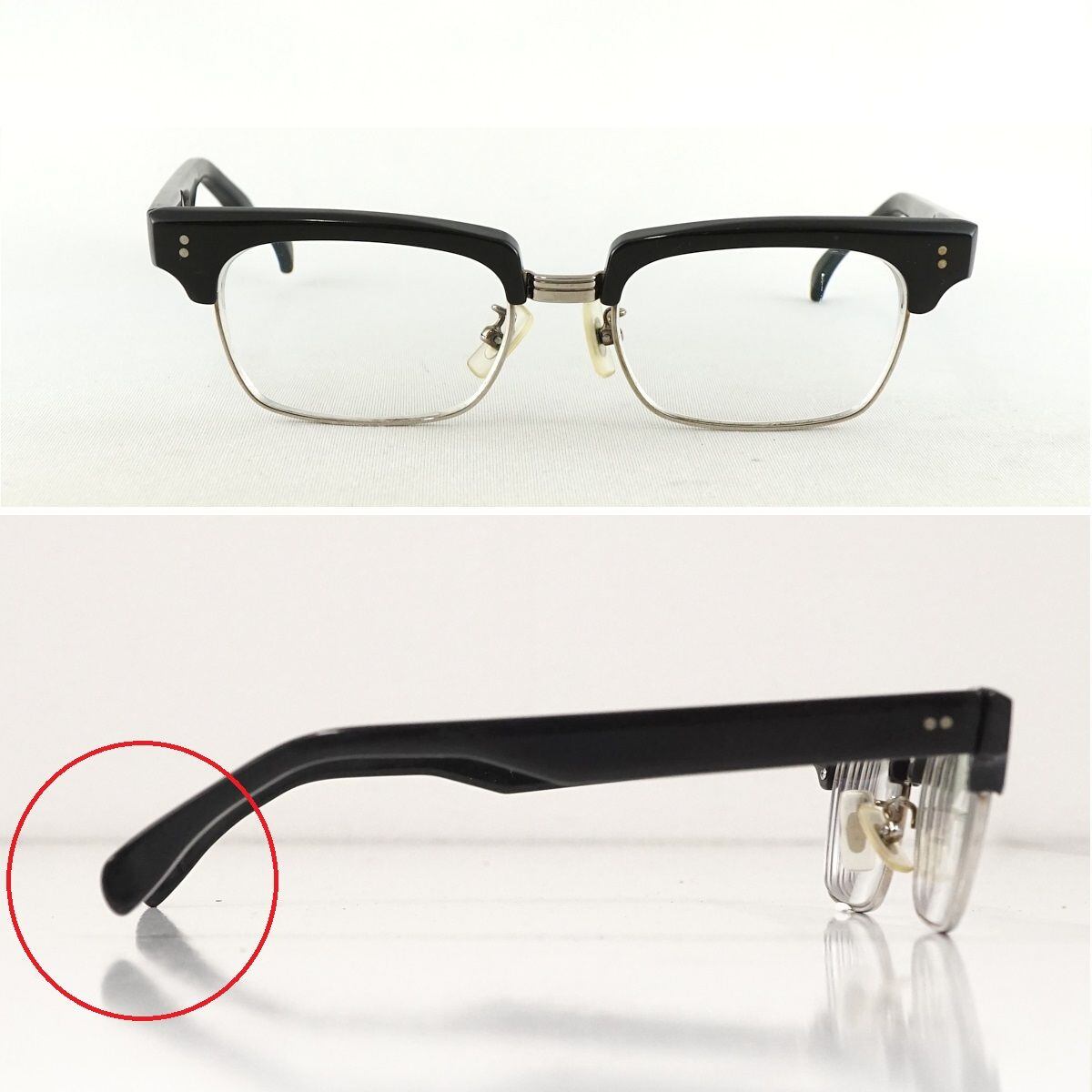 ※フレームにやや歪みがあり、眼鏡を開いて置いた際に左側が少々浮いてしまいます。(画像3枚目、赤印部分をご確認ください。)