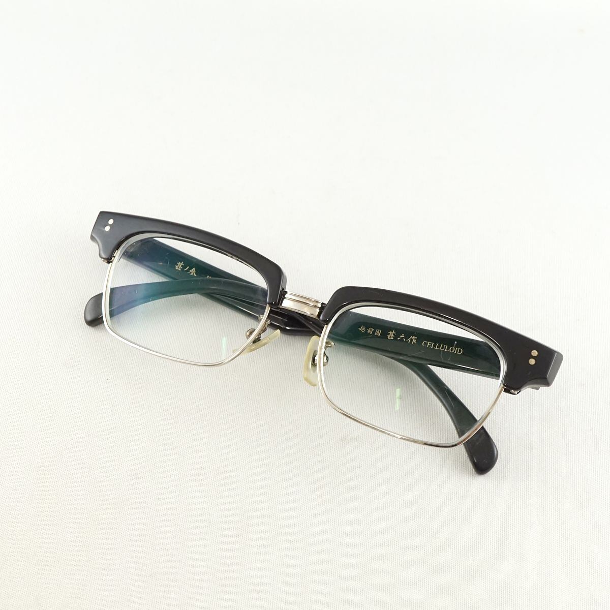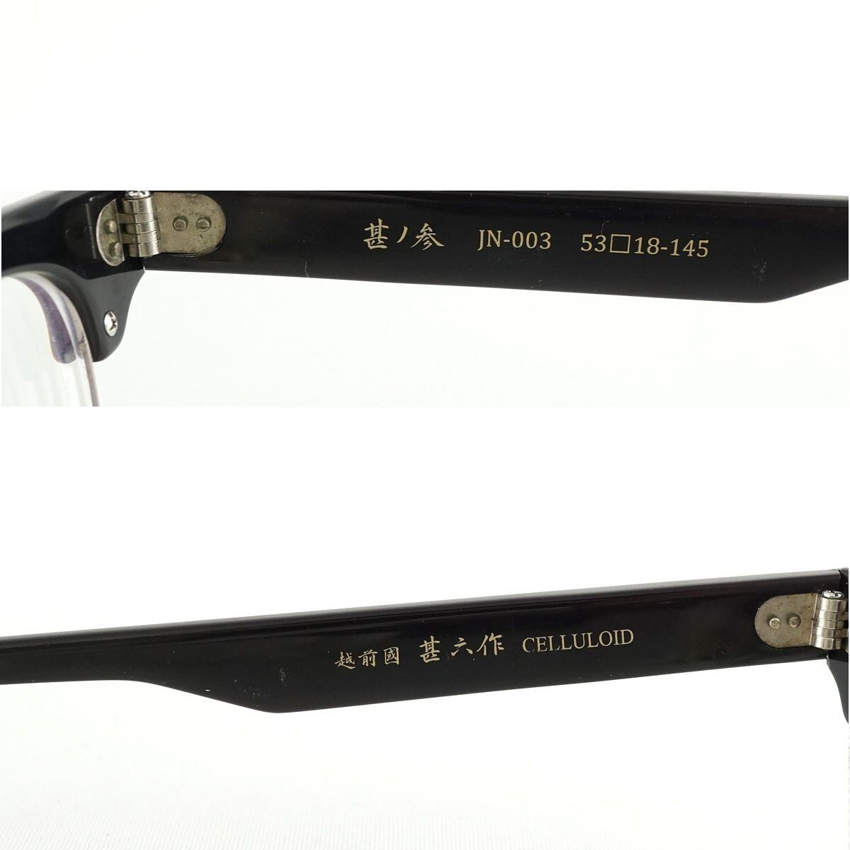 眼鏡 越前國甚六作 甚ノ参 JN-003 USED品 セルロイド 日本製 サーモントフレーム メガネ アイウェア 高級 鯖江 中古 X5852