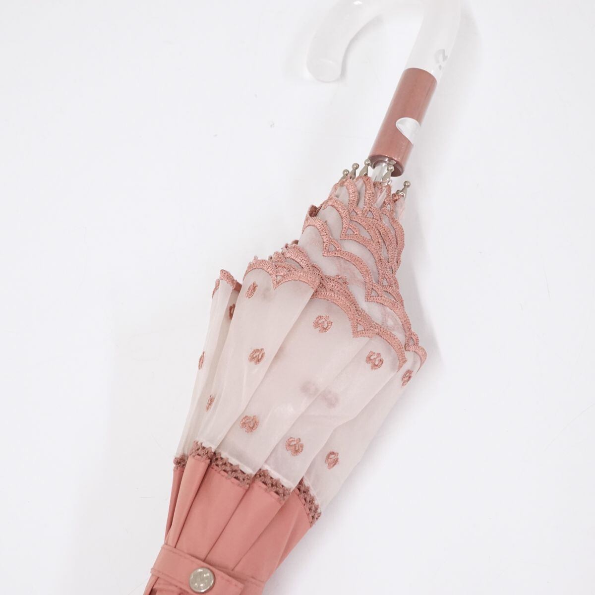 晴雨兼用日傘 mila schon ミラショーン USED美品 遮光 遮熱 ピンク オーガンジー フラワー かわいい UV 47cm A1745