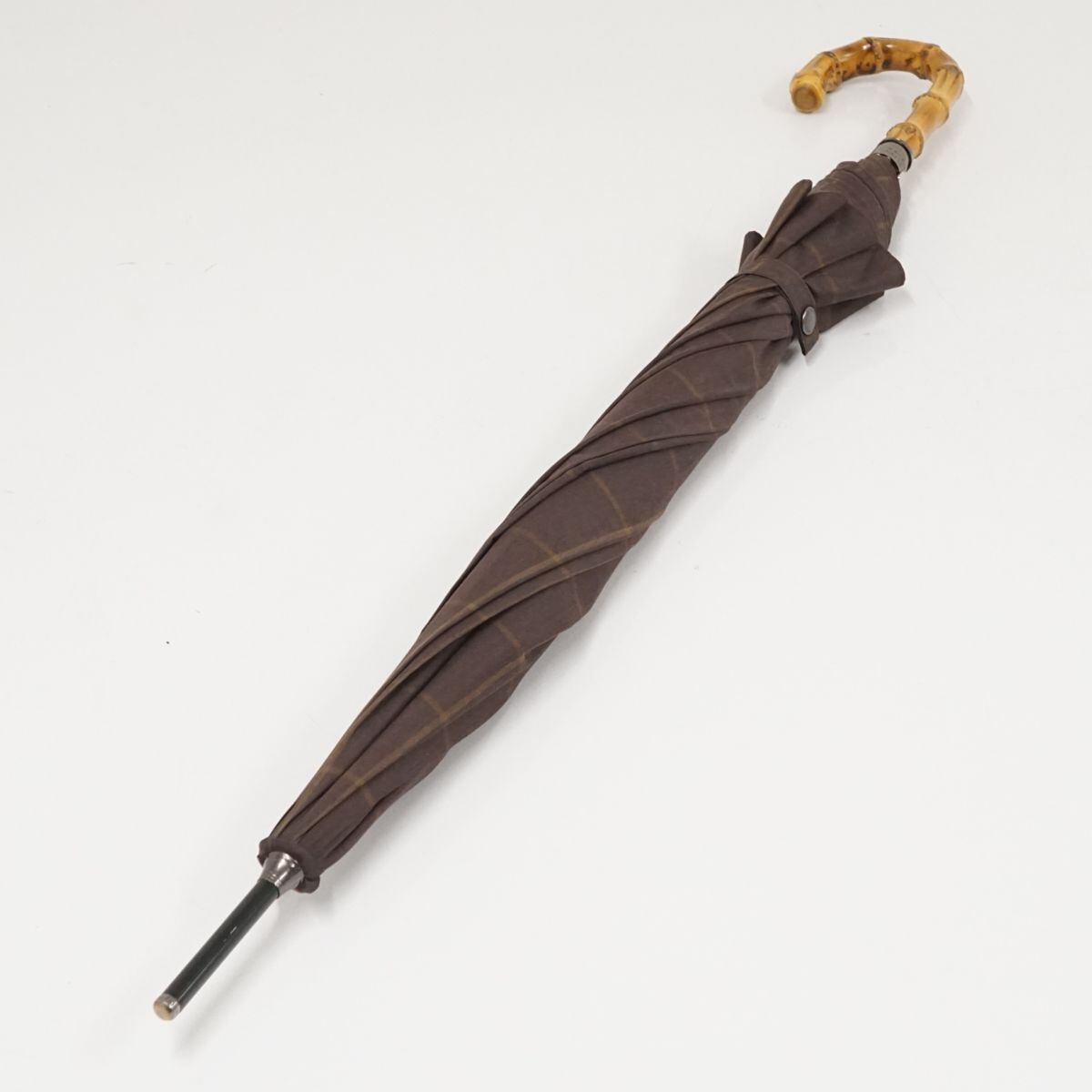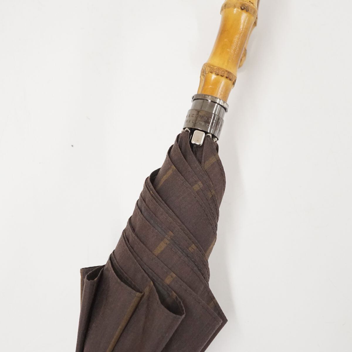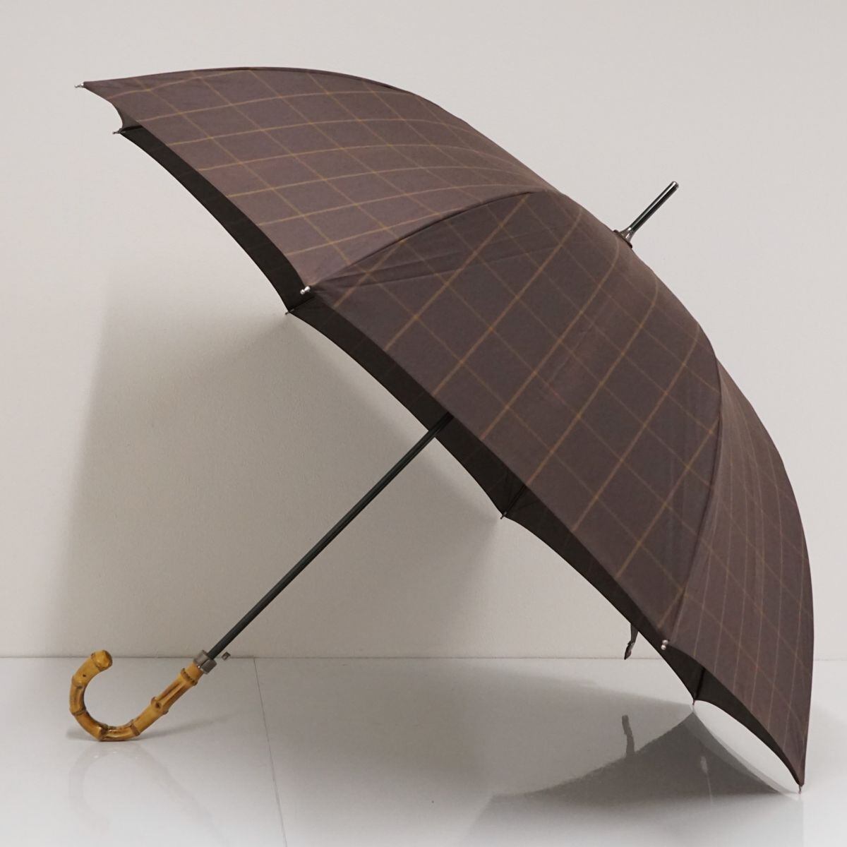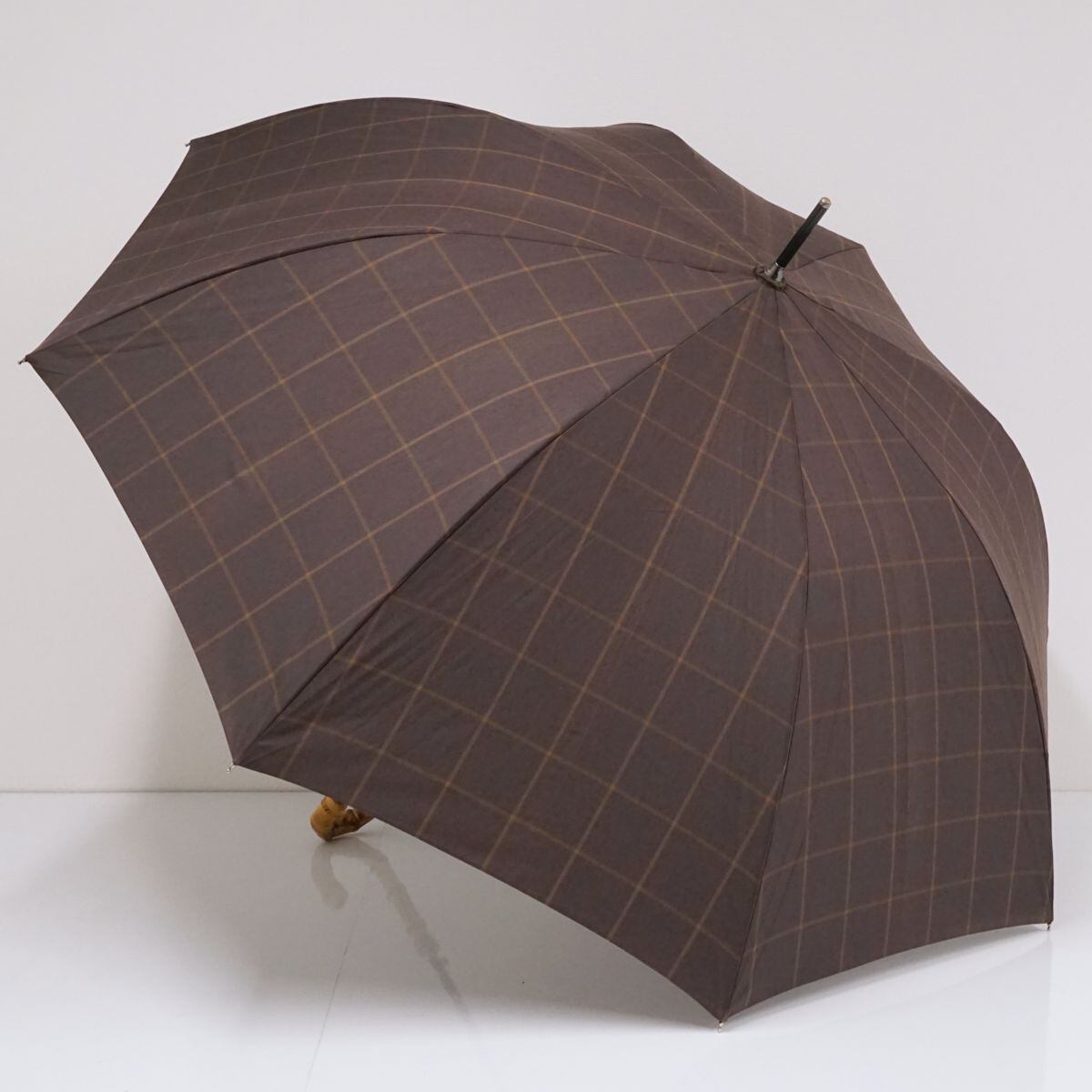 傘 MACKINTOSH PHILOSOPHY マッキントッシュフィロソフィー USED美品 チェック ブラウン メンズ 紳士傘 大判 ジャンプ 65cm S1743