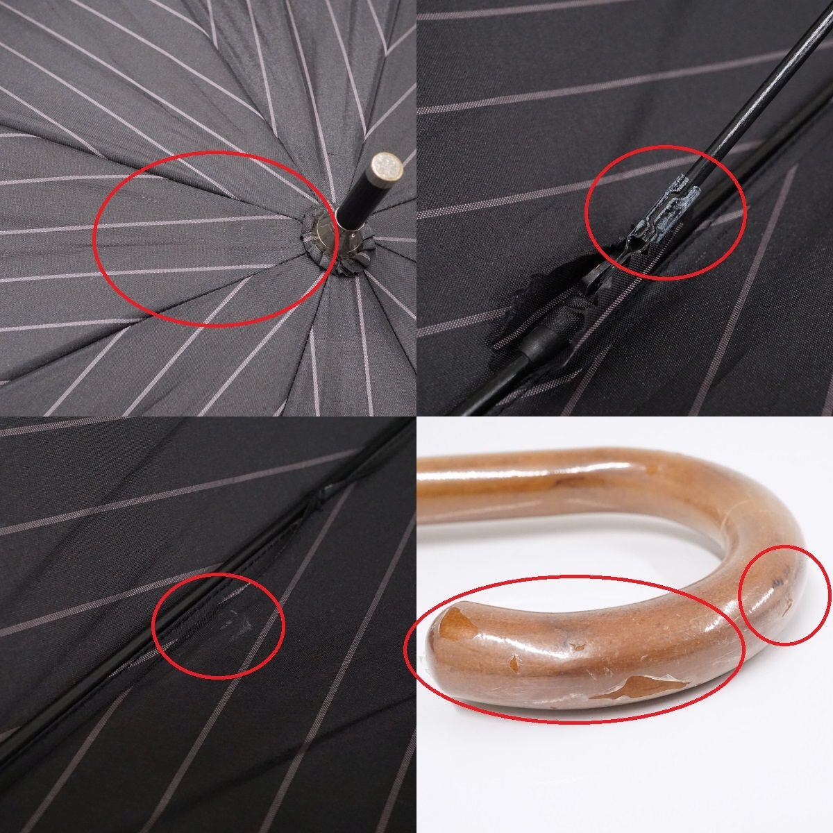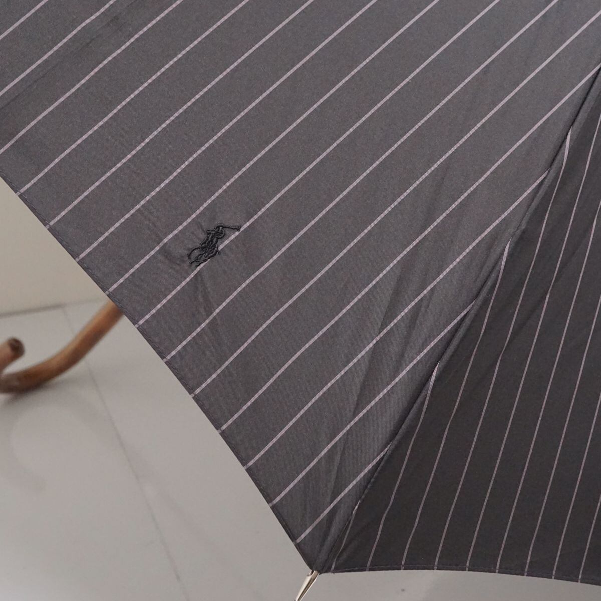 傘 メンズ Polo Ralph Lauren ラルフローレン USED品 ストライプ ブラック 刺繍 ポロポニー ブランド 超大判 70cm S1747