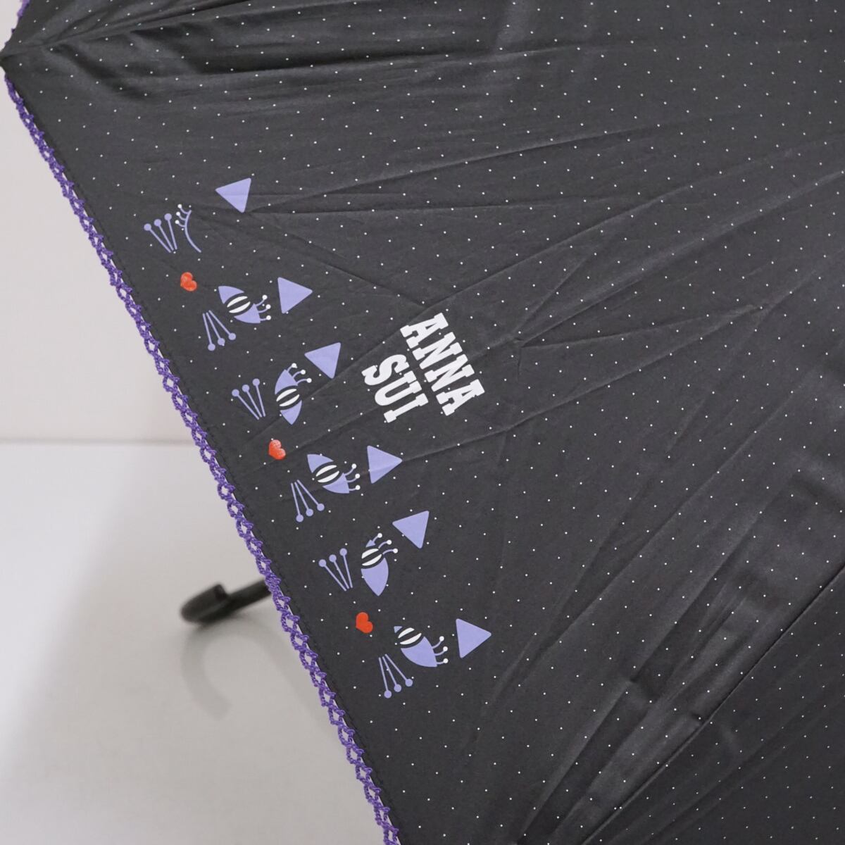 晴雨兼用日傘 ANNA SUI アナスイ USED美品 ブラック ドット 猫 ブランド おしゃれ UV 50cm S1749