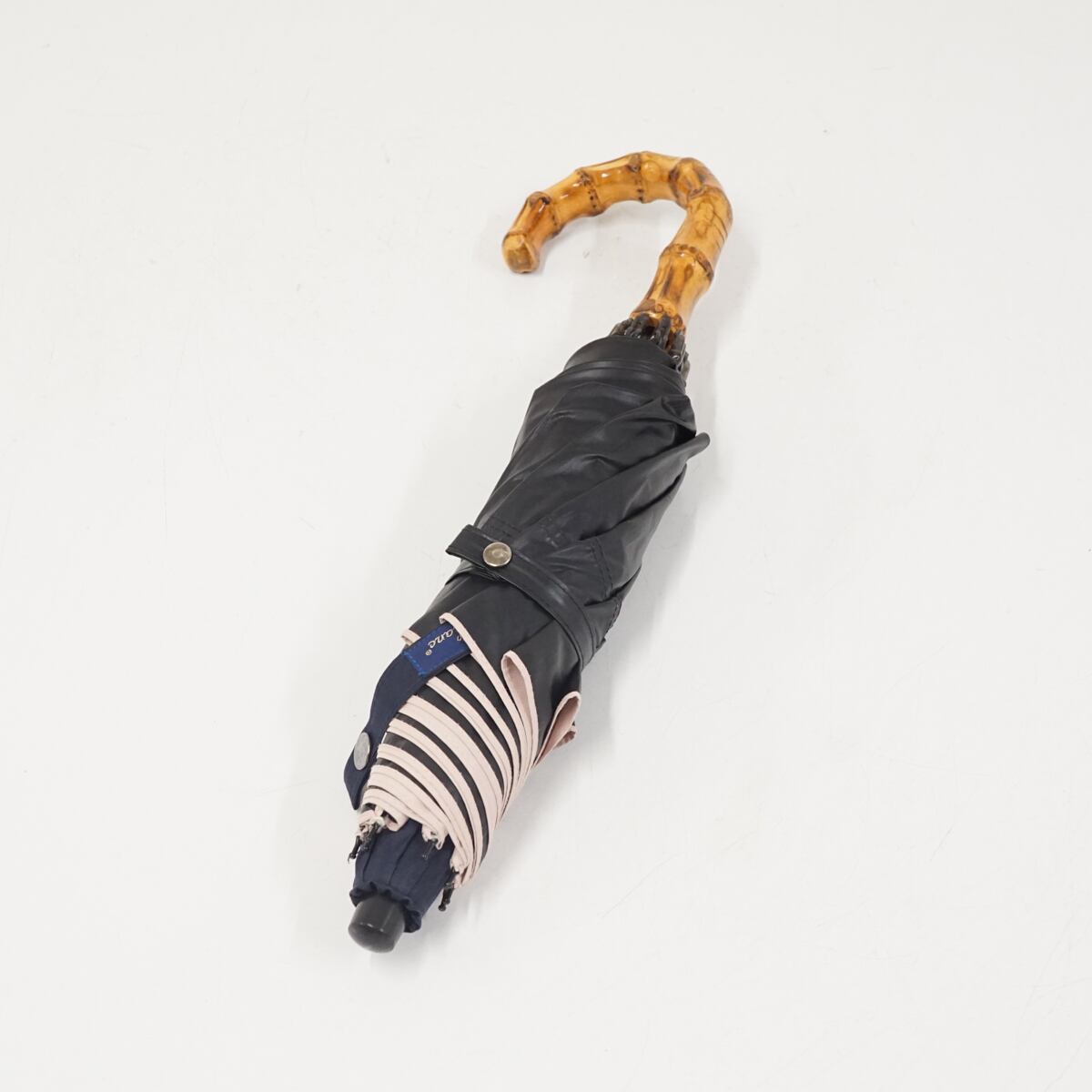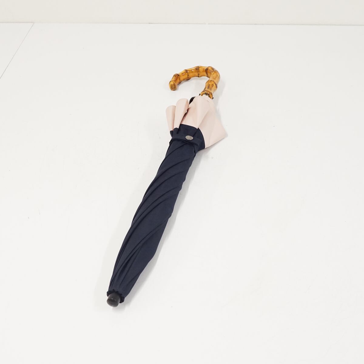 完全遮光折日傘 芦屋ロサブラン USED品 2段折 コンビ ネイビー×ピンク 寒竹手元 UV 遮熱 折りたたみ 50cm KR FS8742