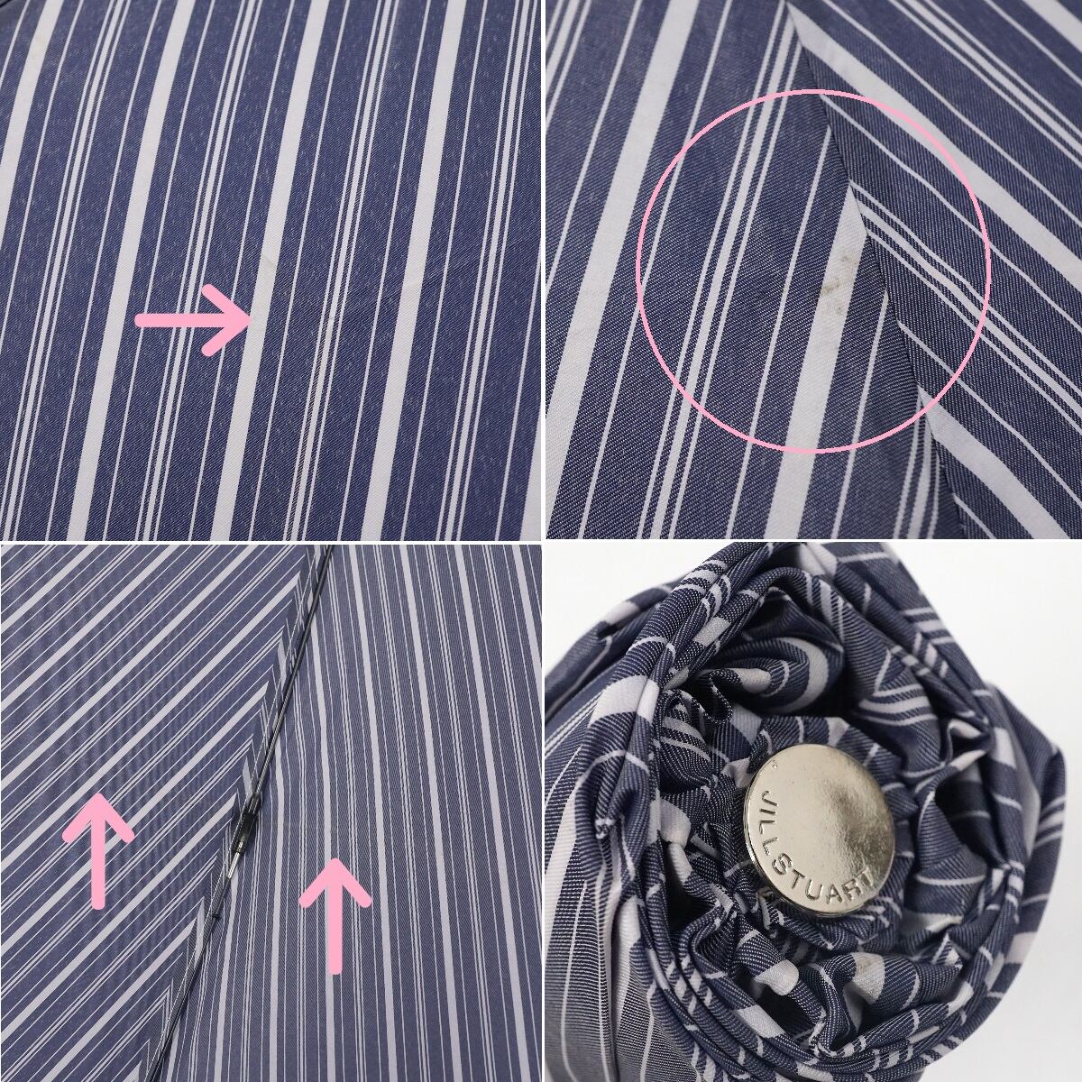 折りたたみ傘 JILL STUART ジルスチュアート USED美品 ストライプ 筆記体サイン シンプル 軽量 UV 55cm FA8733
