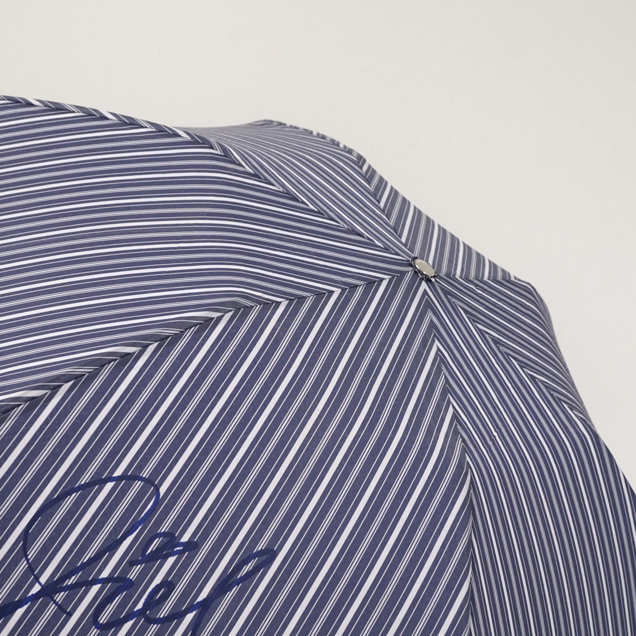 爽やかな雰囲気のストライプの先染め生地に、筆記体サインをプリントしたデザインです。