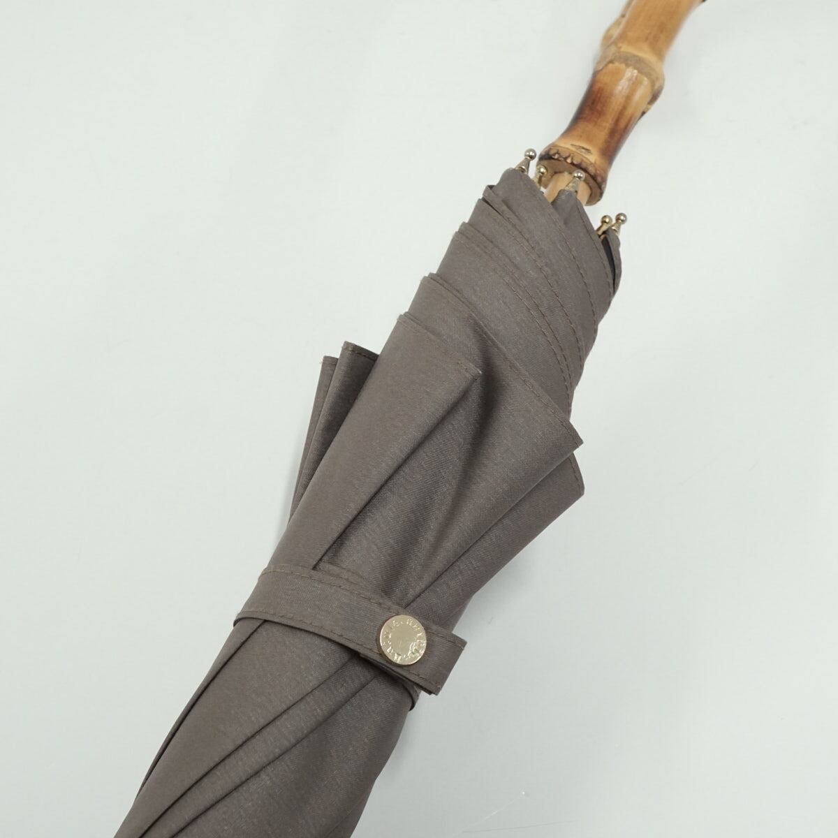 落ち着いたくすみカラーをベースに、木製の中棒と寒竹手元がナチュラルでどんなスタイリングにもマッチします。