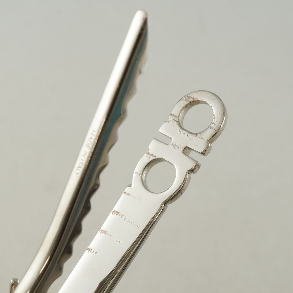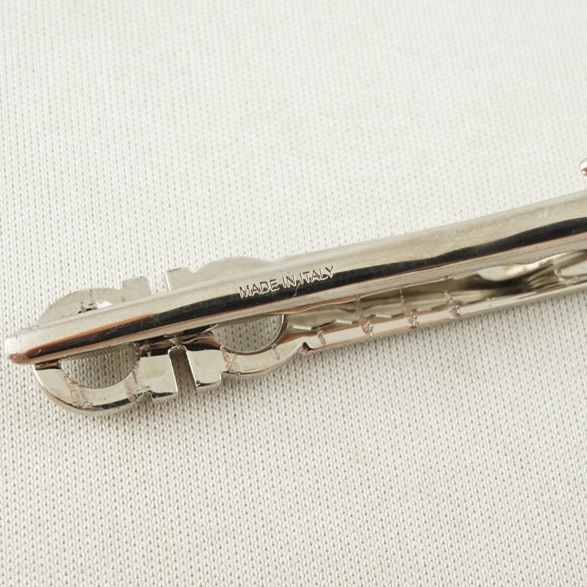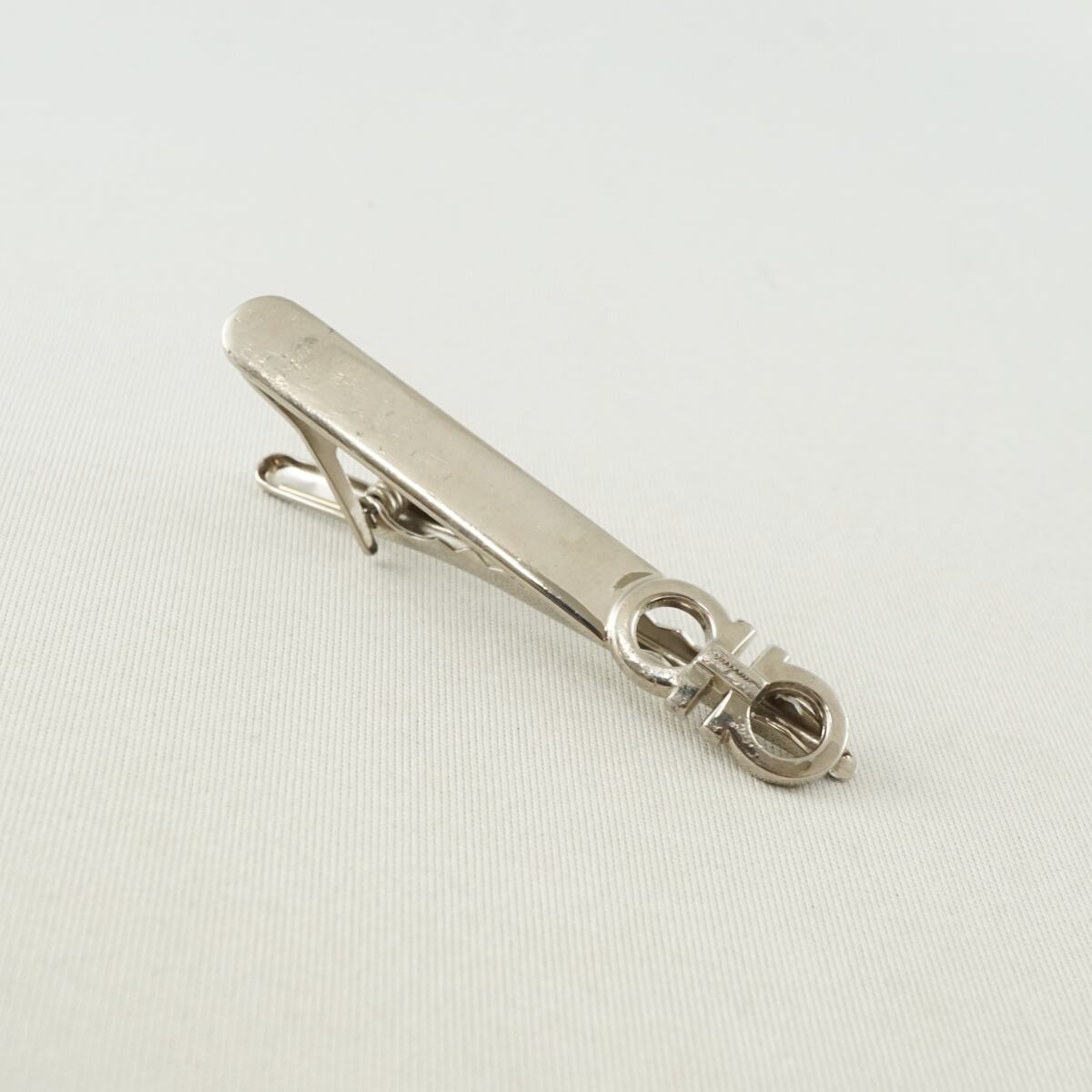 ダブル・ガンチーニをモチーフにしたフェラガモのタイクリップです。