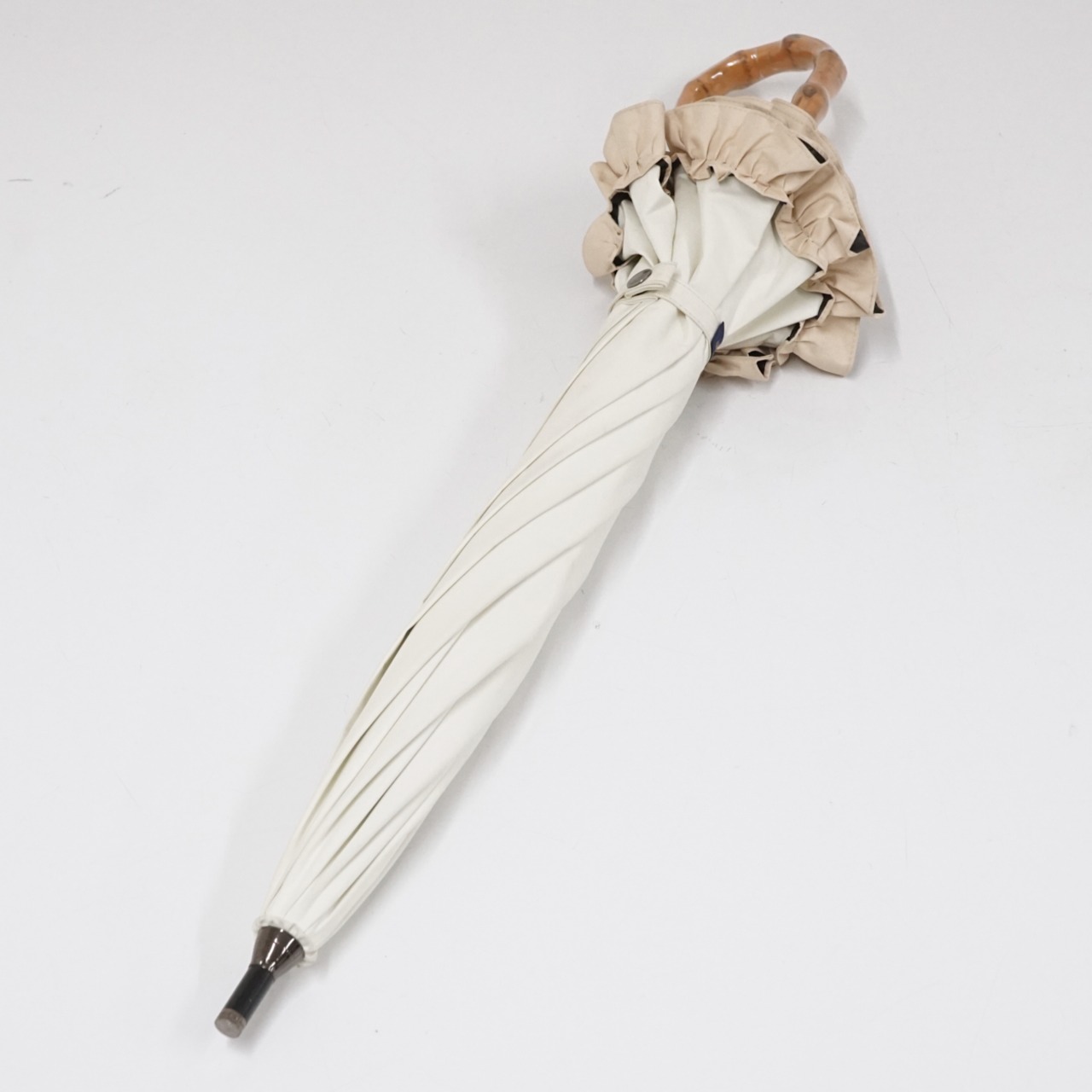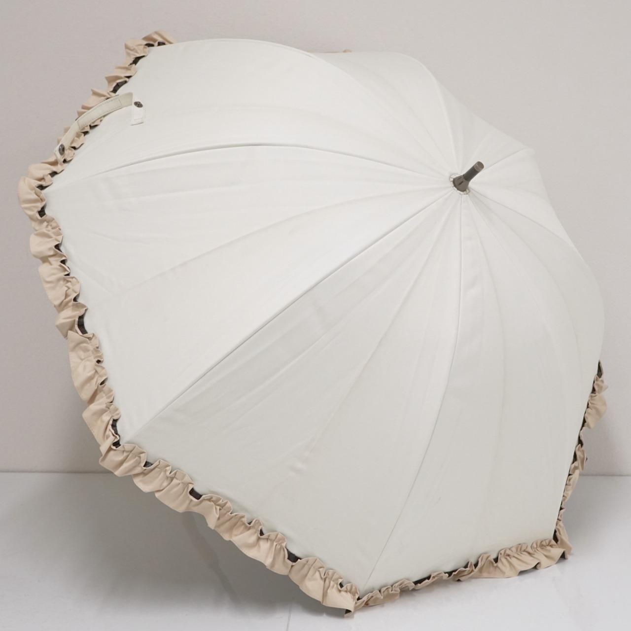 日傘 芦屋ロサブラン 完全遮光日傘 USED品 アイボリー ベージュ フリル ショートサイズ 50cm S1764