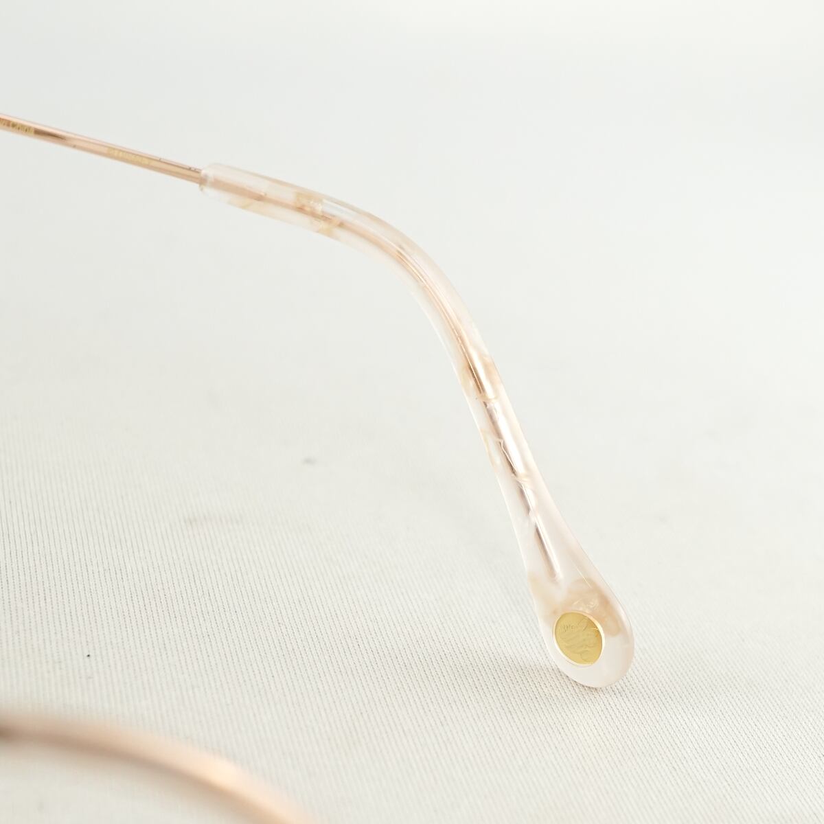 ※左の丁番部分のネジにゆるみがあり、左のテンプルがかなり緩くなっています。(ややネジ山がつぶれ気味です。)