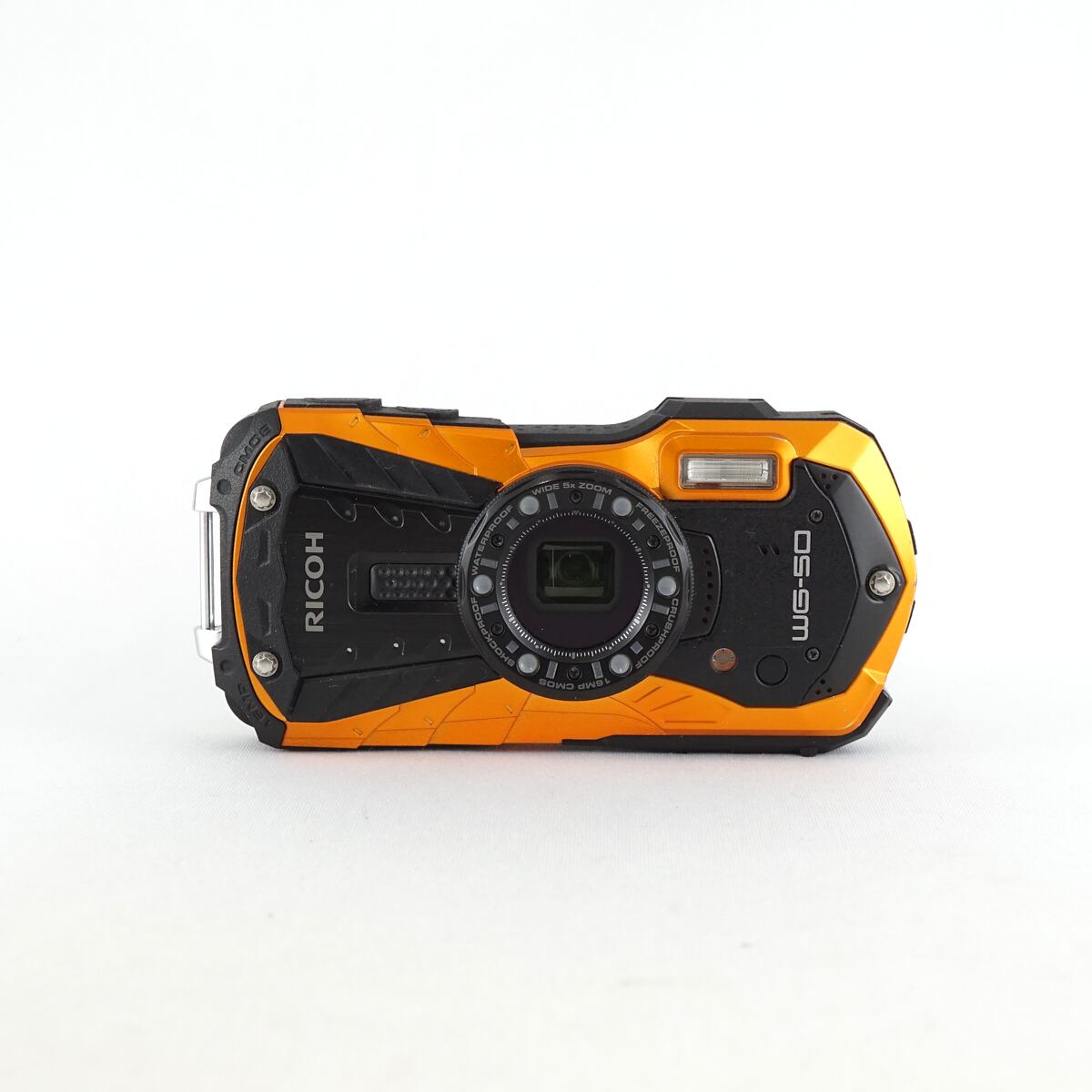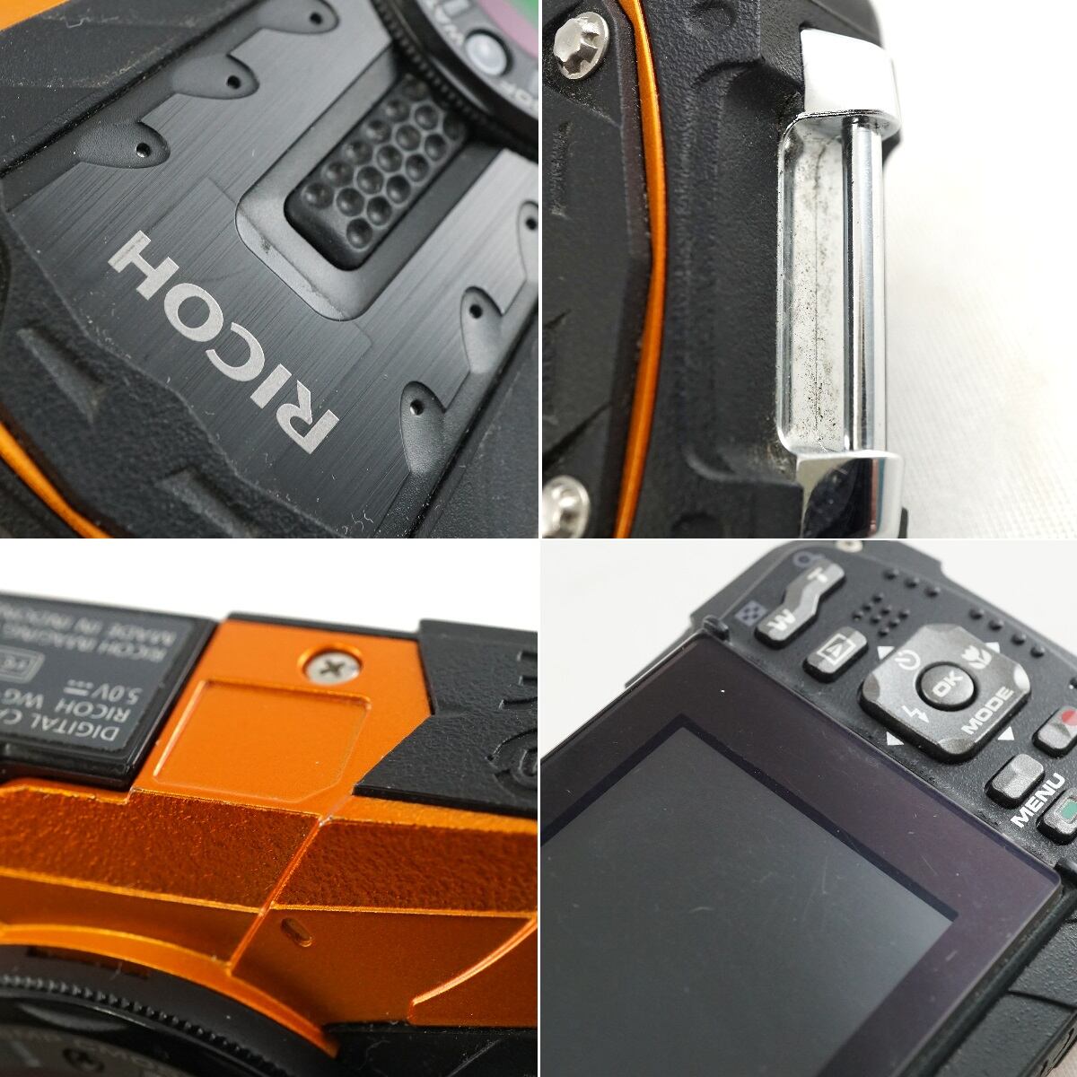 RICOH WG-50 USED美品 タフカメラ 本体+バッテリーのみ 防水 耐衝撃 耐寒 1600万画素 アウトドア 水中 雪山 オレンジ 完動品 中古 CP7430