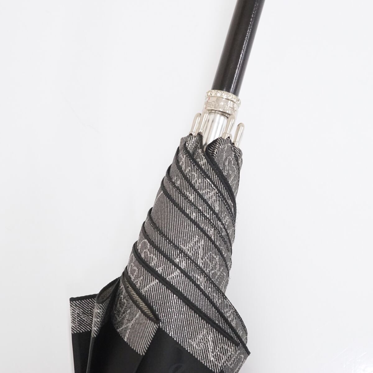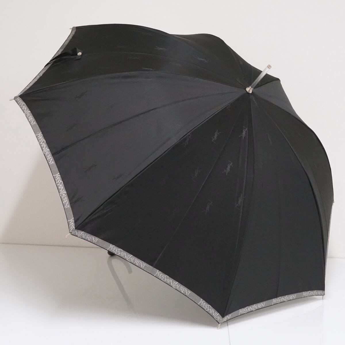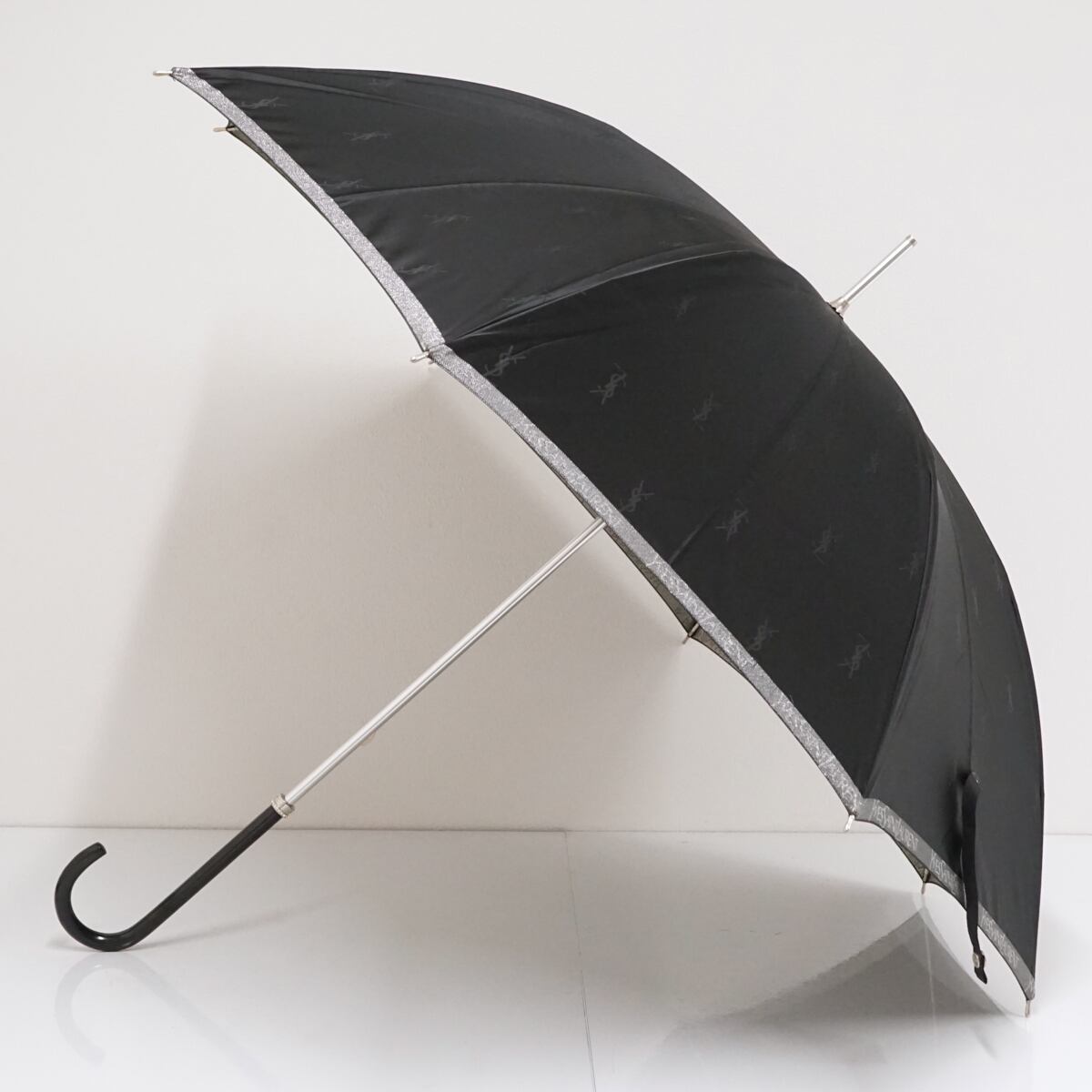 傘 YSL イヴサンローラン USED美品 ロゴ ブラック ラメ ブランド グラス骨 60cm S1766