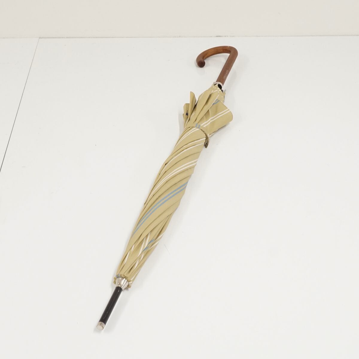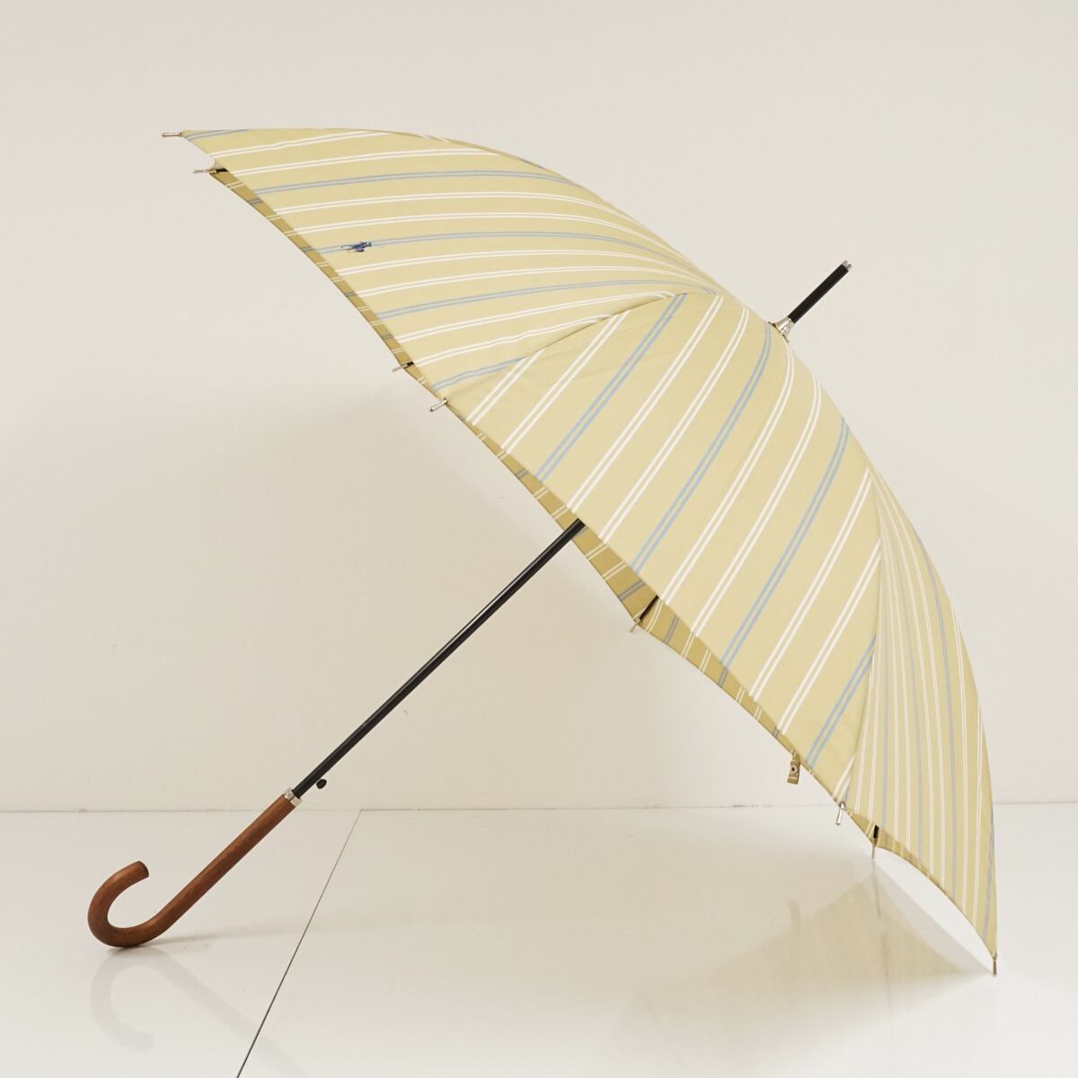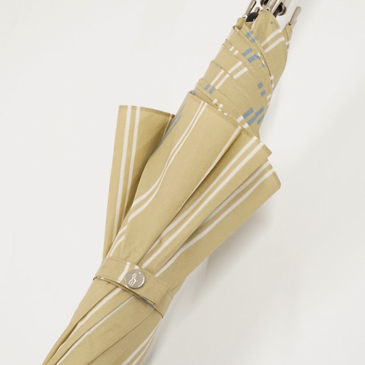 傘 Polo Ralph Lauren ポロラルフローレン USED美品 ストライプ ベージュ ポロ 高級 ジャンプ 60cm KR A1768