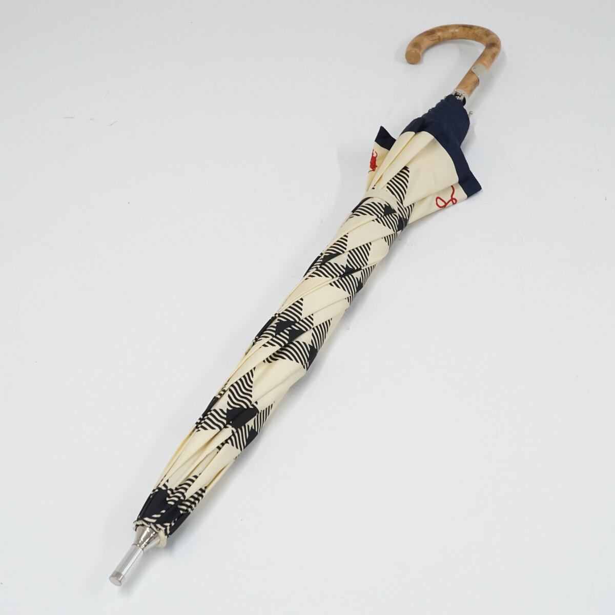POLO RALPH LAUREN ポロラルフローレン 傘 USED美品 クリームイエロー バイアスチェック ポロポニー ロゴ刺繍 丈夫 グラス骨 60cm S1785