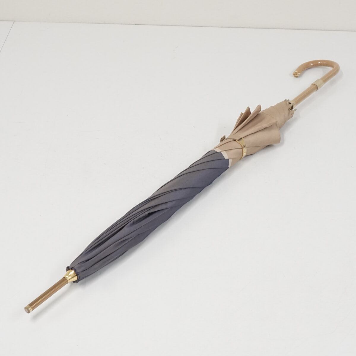傘 LANVIN COLLECTION ランバンコレクション USED美品 カラーボーダー ネイビーブルー ベージュ グラス骨 レザー手元 58cm S3713