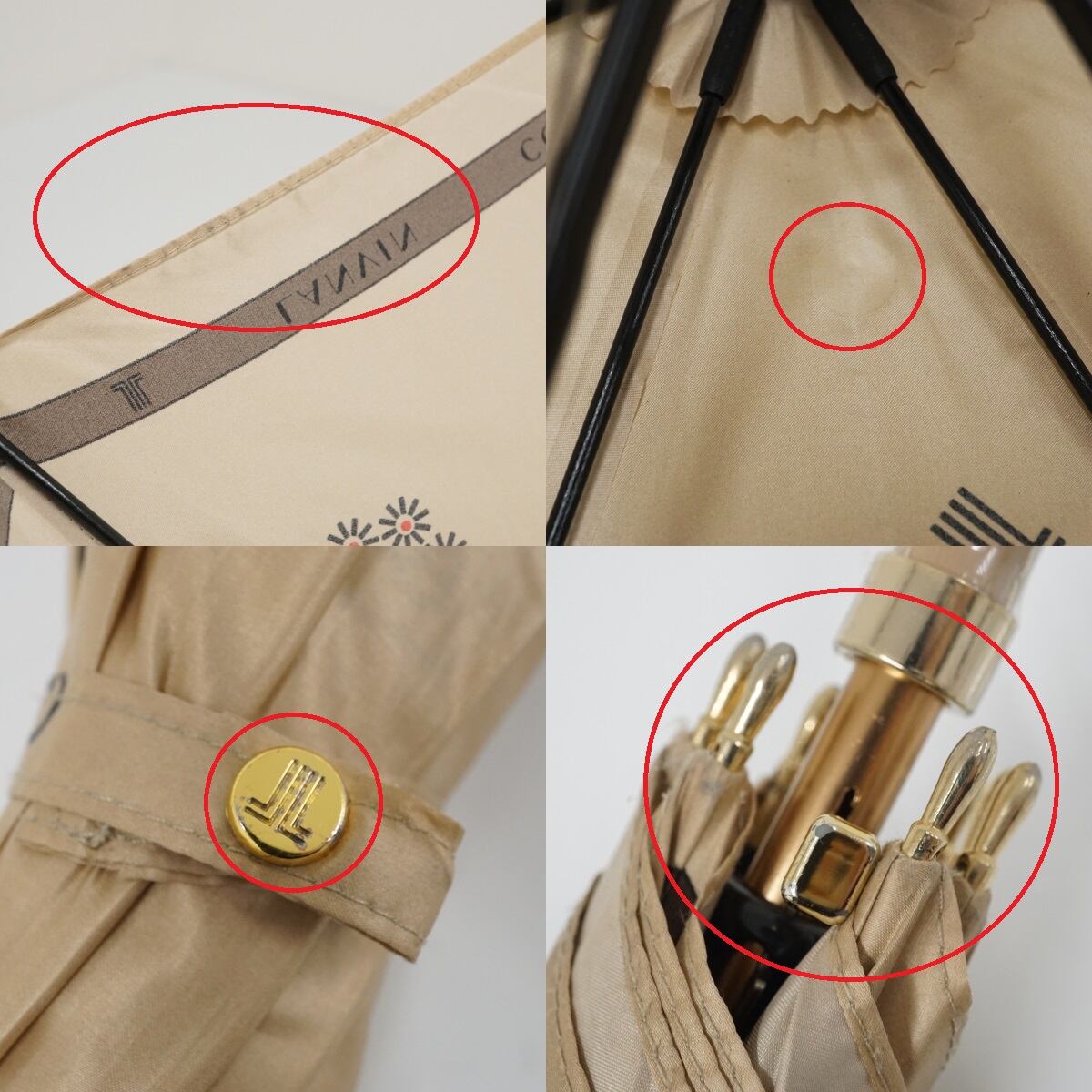 傘 LANVIN COLLECTION ランバンコレクション USED品 ロゴモチーフ ベージュ グラス骨 レザー手元 60cm A1790