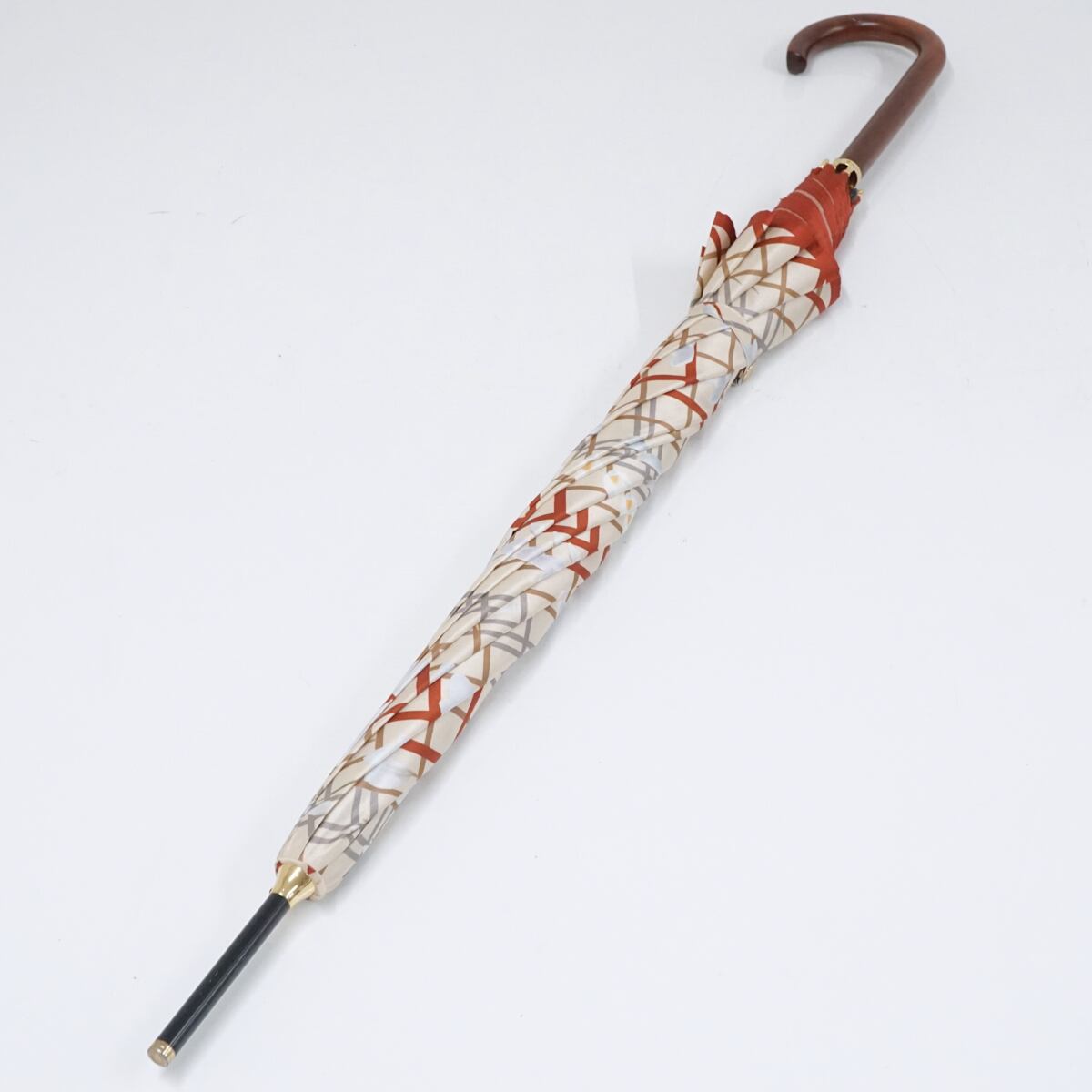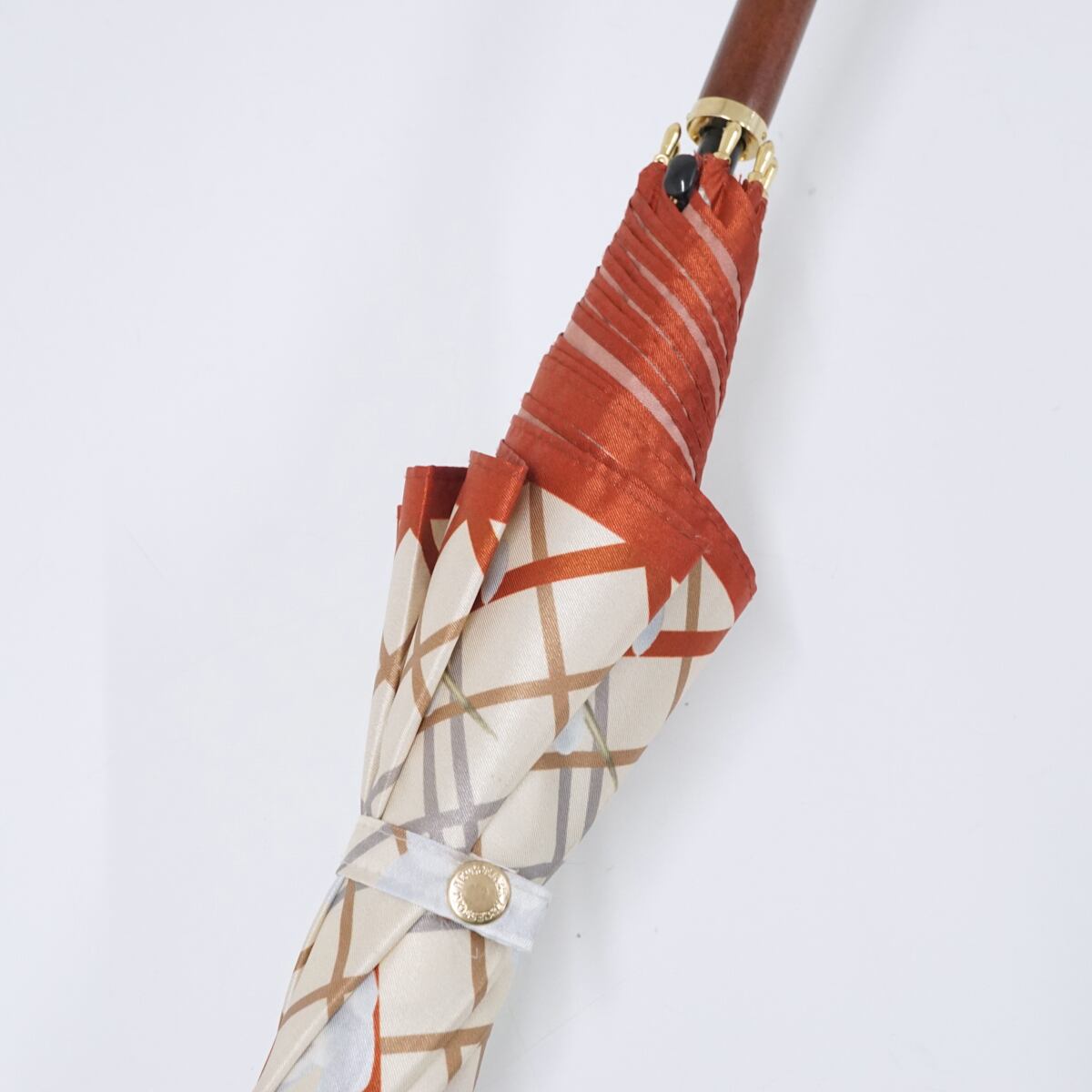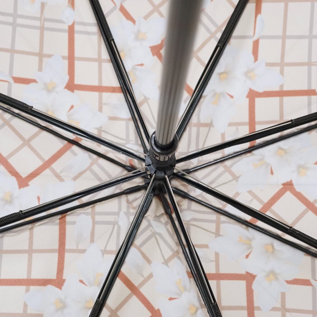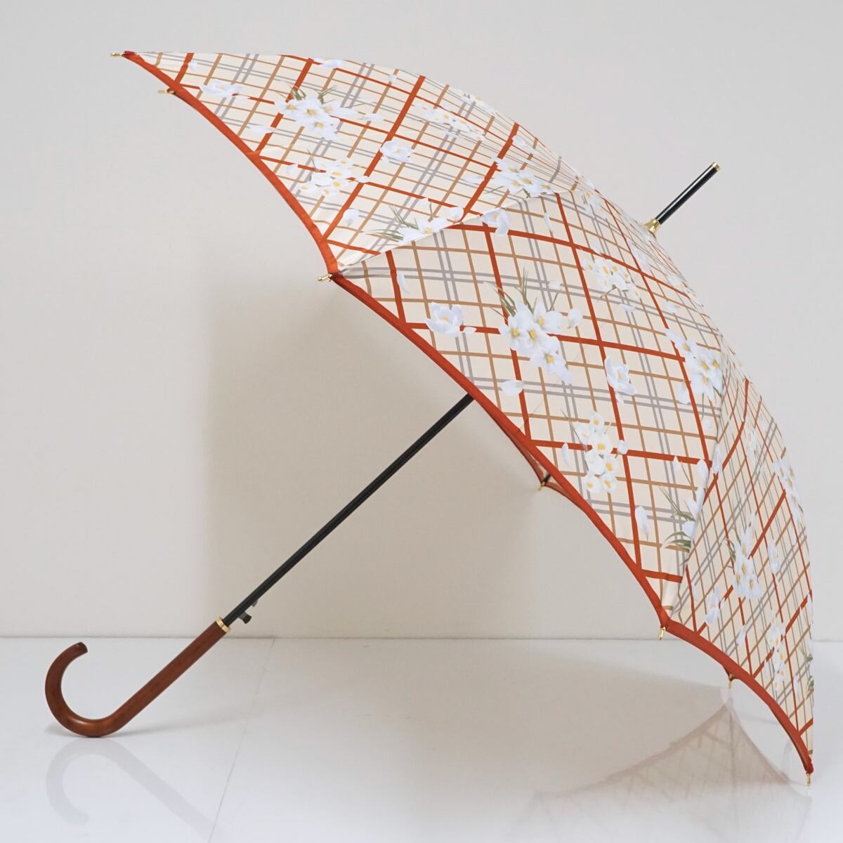 傘 NEWYORKER ニューヨーカー 傘 USED美品 チェック フラワー グラス骨 木製手元 ジャンプ 日本製 A1797