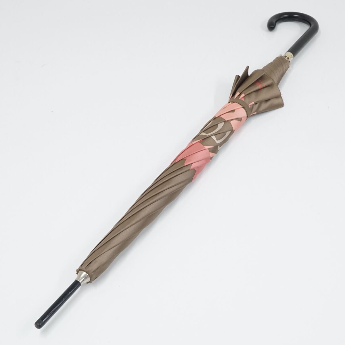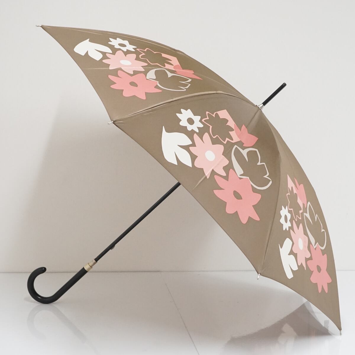 淡い光沢のあるブラウン系の生地にフラワーイラストをデザインした個性的でかわいい傘です。