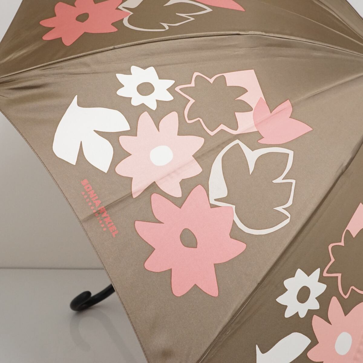 傘 SONIA RYKIEL ソニアリキエル USED美品 フラワー ピンク ブラウン ロゴ グラス骨 60cm A1810