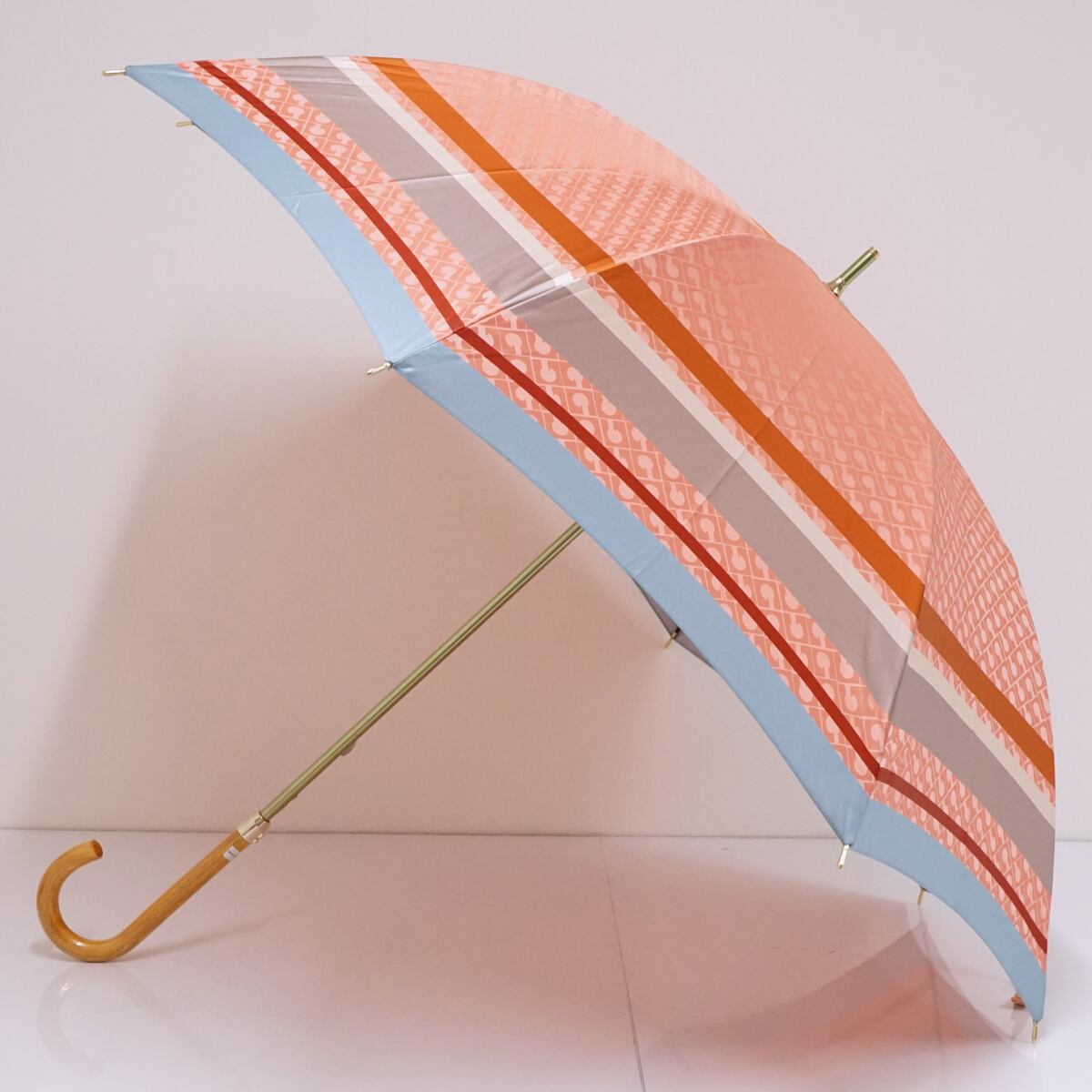 傘 GHERARDINI ゲラルディーニ USED美品 ロゴ ピンク ボーダー おしゃれ 高級 ブランド 60cm S1813
