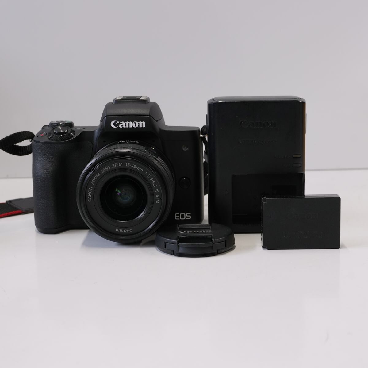 Canon EOS Kiss M + EF-M15-45mm F3.5-6.3 IS STM USED超美品 標準ズーム レンズキット APS-C ミラーレス一眼 カメラ Wi-Fi 完動品 CP8311