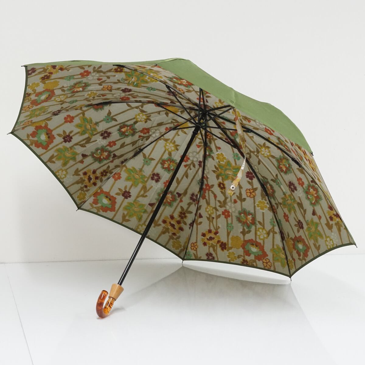 折りたたみ傘 小宮商店 和花 晴雨兼用 USED美品 ほぐし織り 甲州織 グリーン 日本製 高級 FS8747