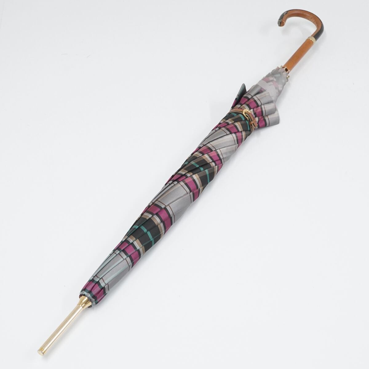 傘 AURORA オーロラ USED品 日本製 チェック ベルト 60cm A1830