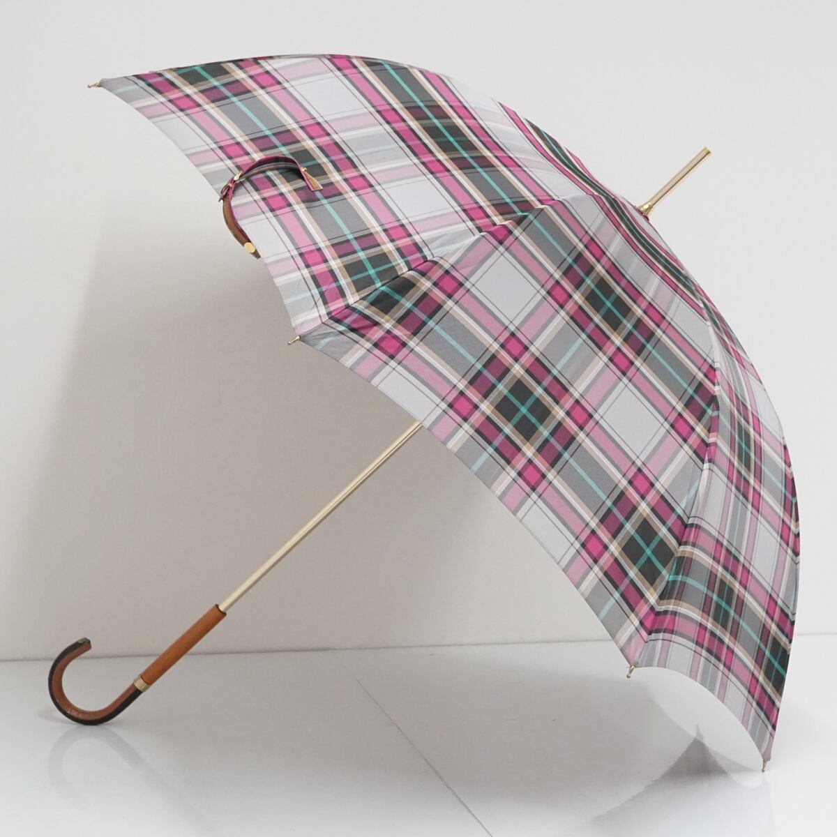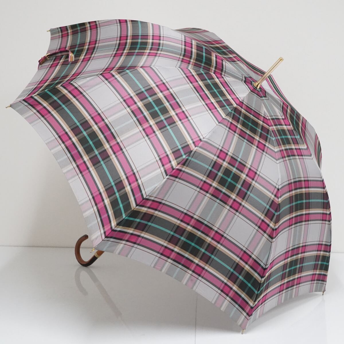 チェック柄の生地が美しい傘です。