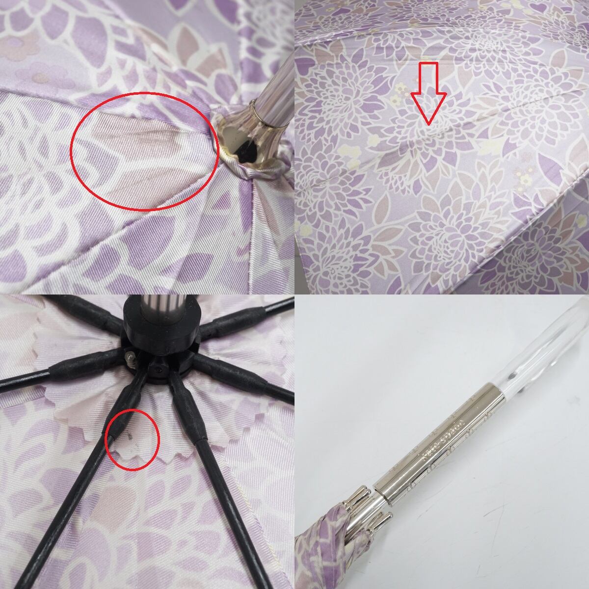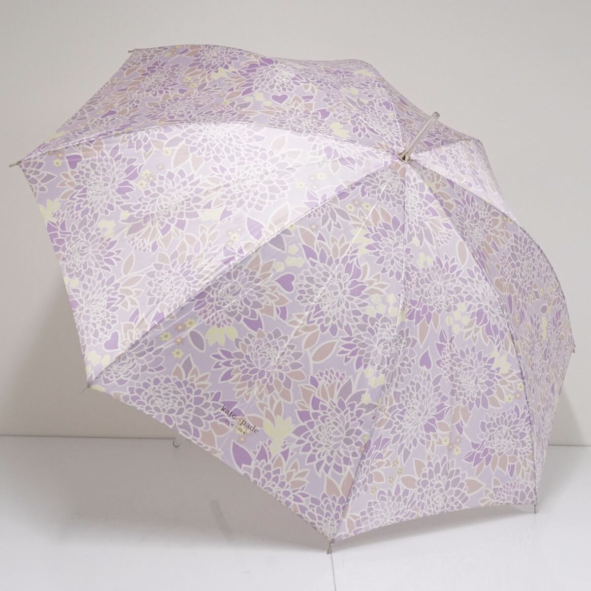 傘 Kate spade new york ケイトスペード USED美品 ライトパープル 花柄 ロゴ グラス骨 軽量 60cm S1831