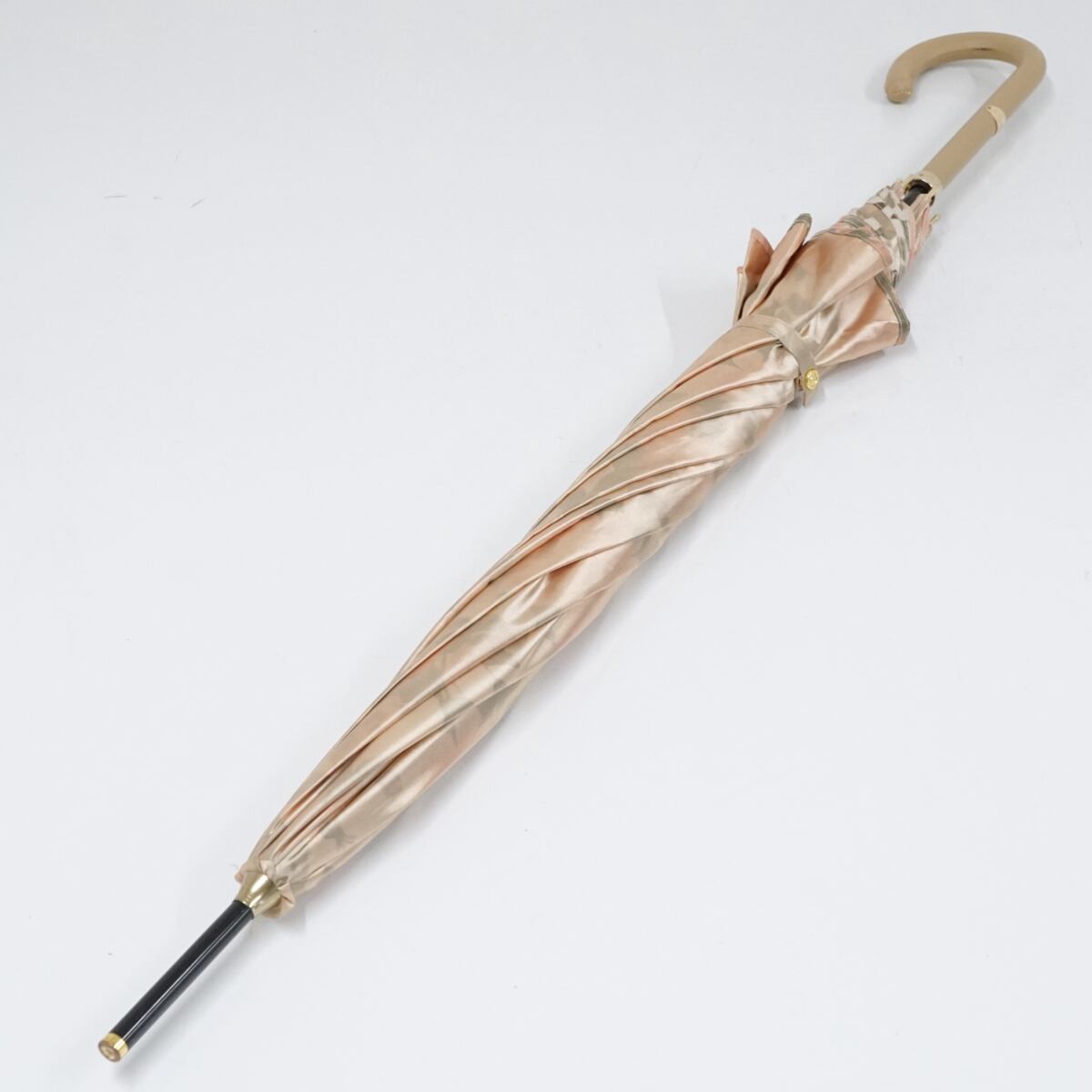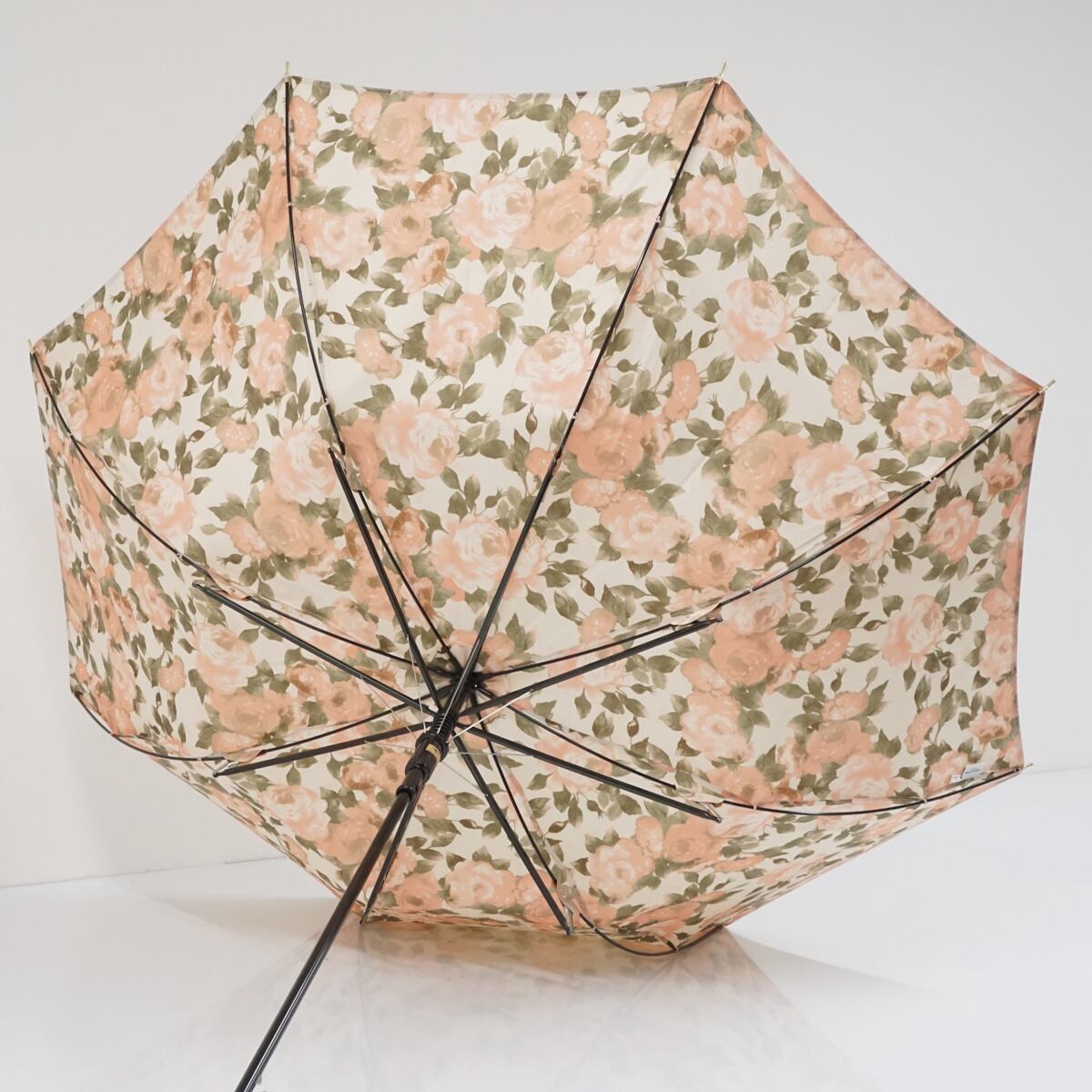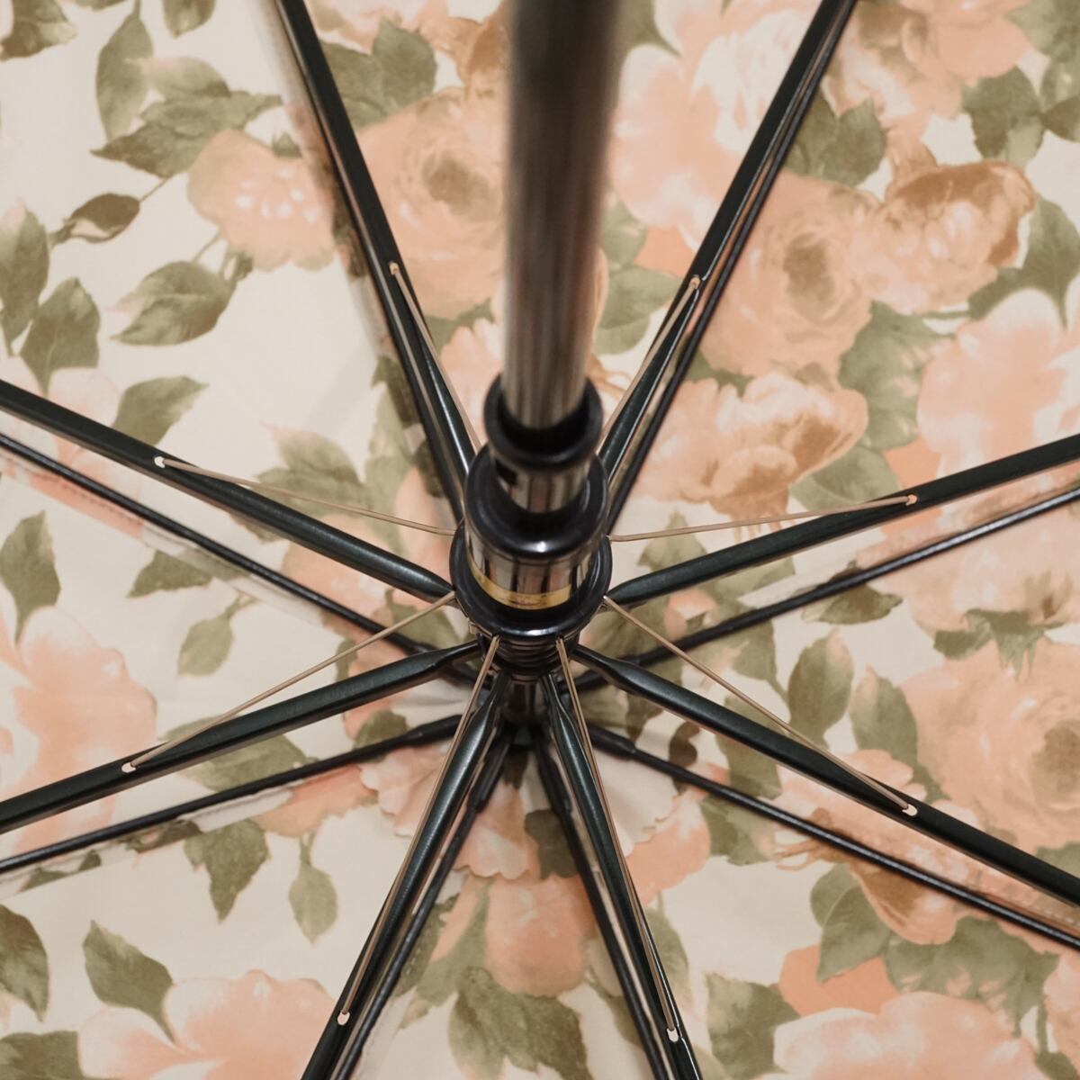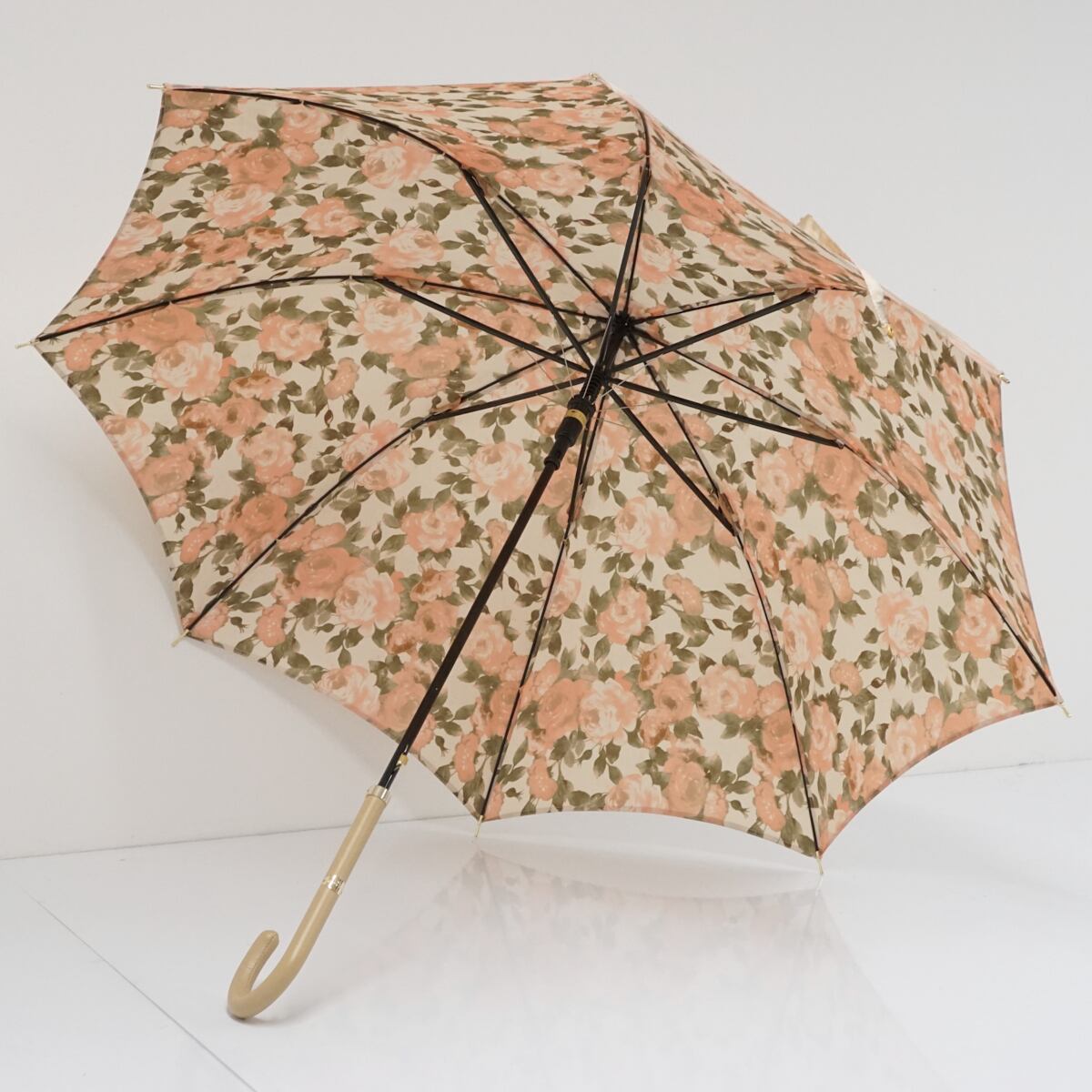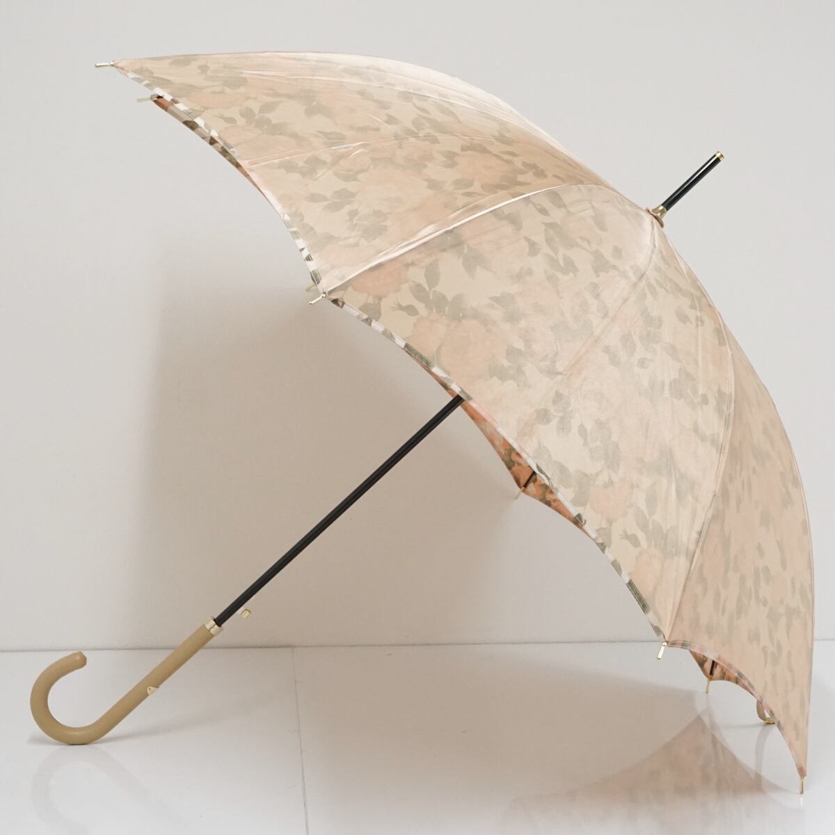 光沢のあるシャンパンゴールドの表地で、裏地にはロマンチックな花柄が咲き乱れています。