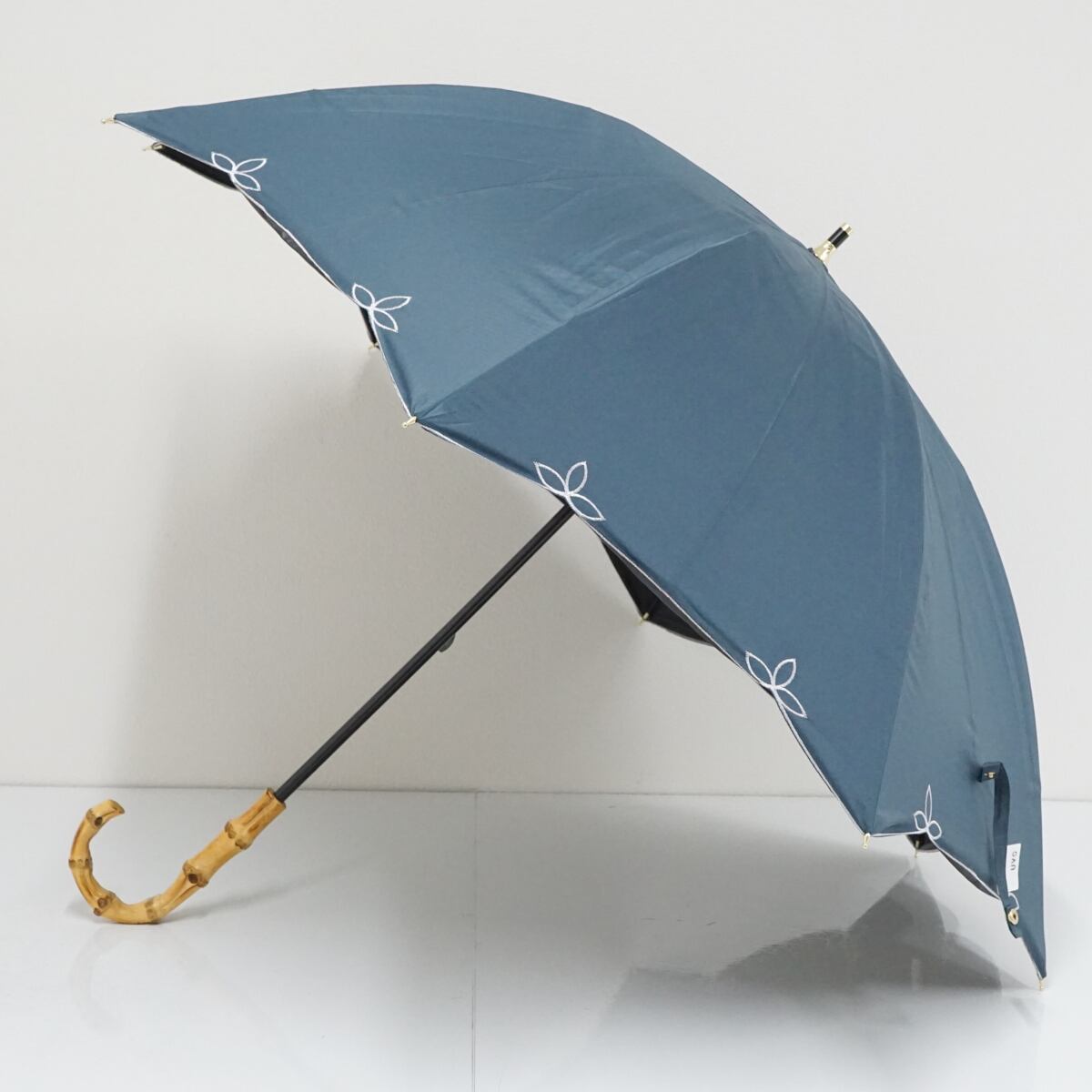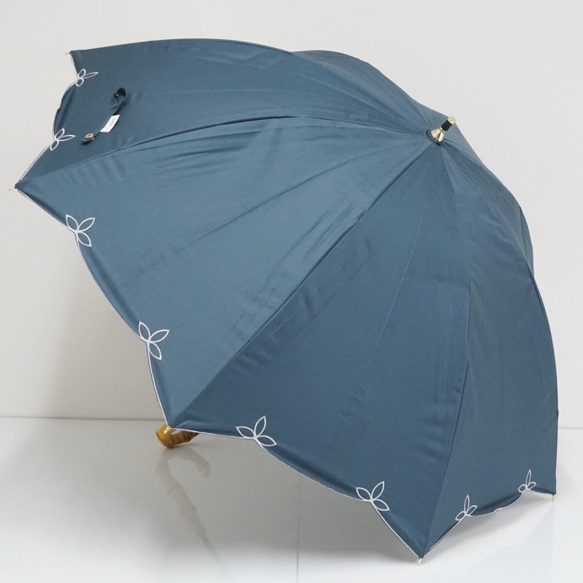 完全遮光日傘 UVO Wpc. ウーボ USED超美品 刺繍スカラップ UV 遮光 遮熱 最強の日傘 大きめ シンプル 軽量 ブルーグレー 55cm S1834