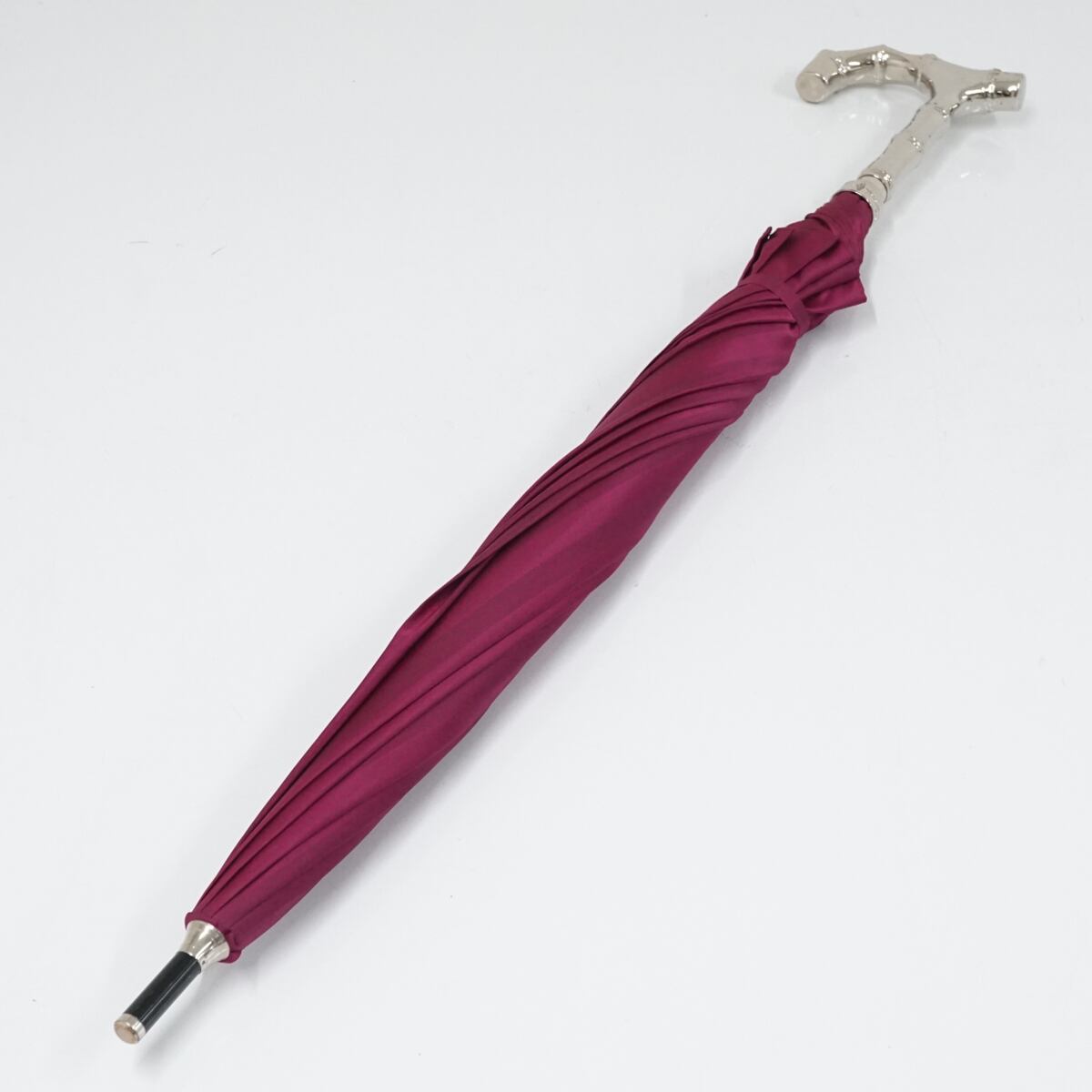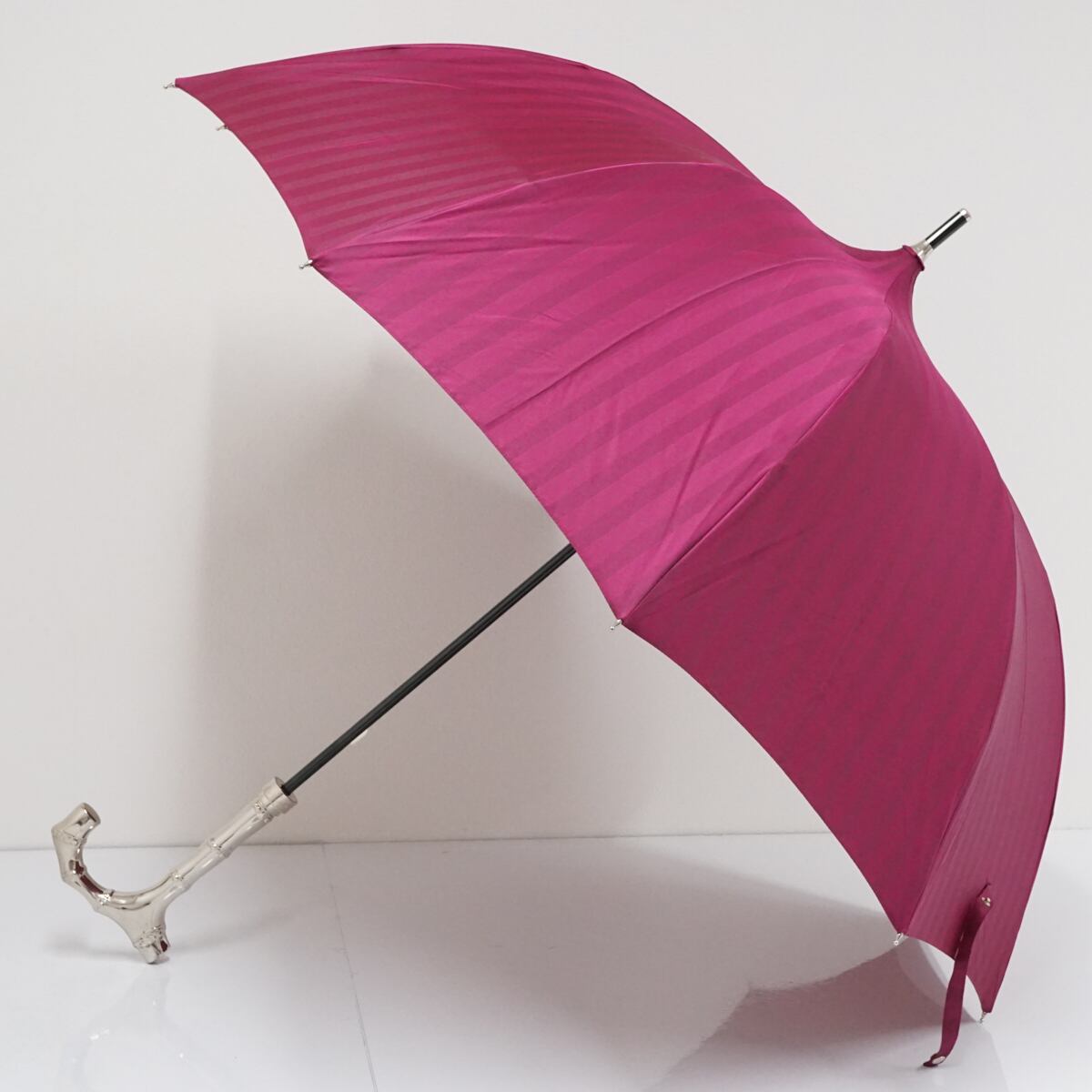 シンプルなパープルのストライプ生地にオーブの刺繍を施したおしゃれなアンブレラです。