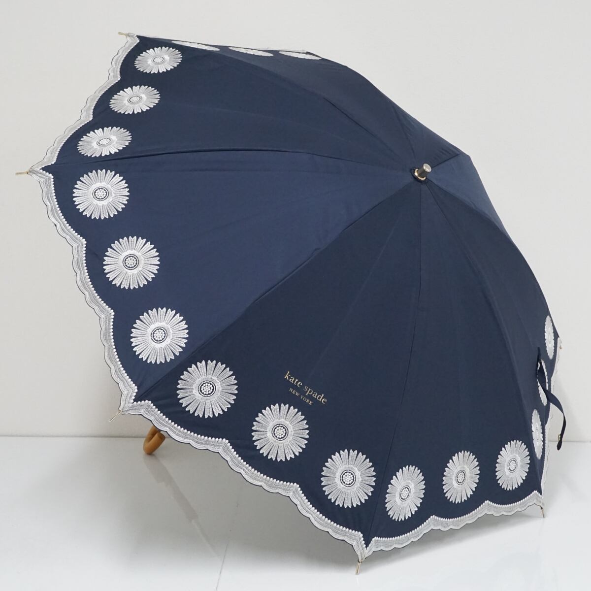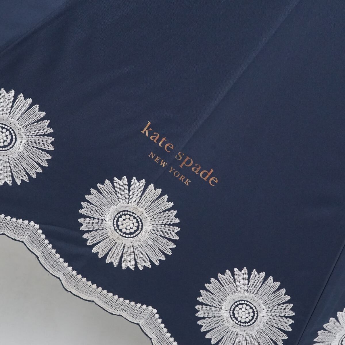 晴雨兼用日傘 Kate spade new york ケイトスペード USED美品 サマーシールド Li ネイビー フラワー 刺繍 ロゴ 遮熱 遮光 UV 50cm S1839