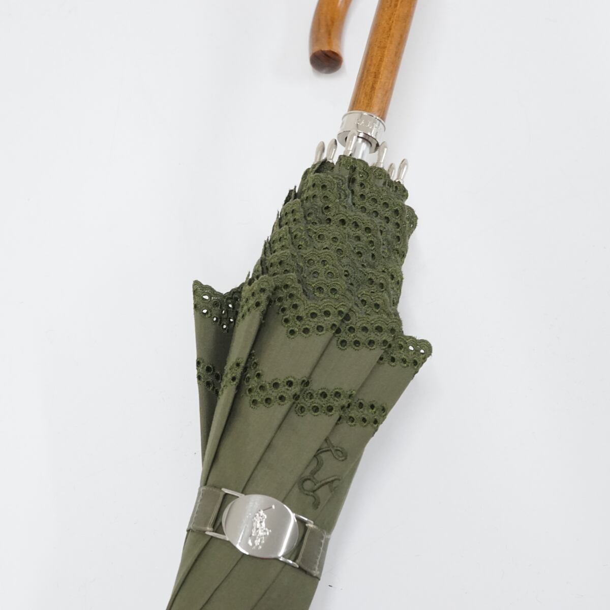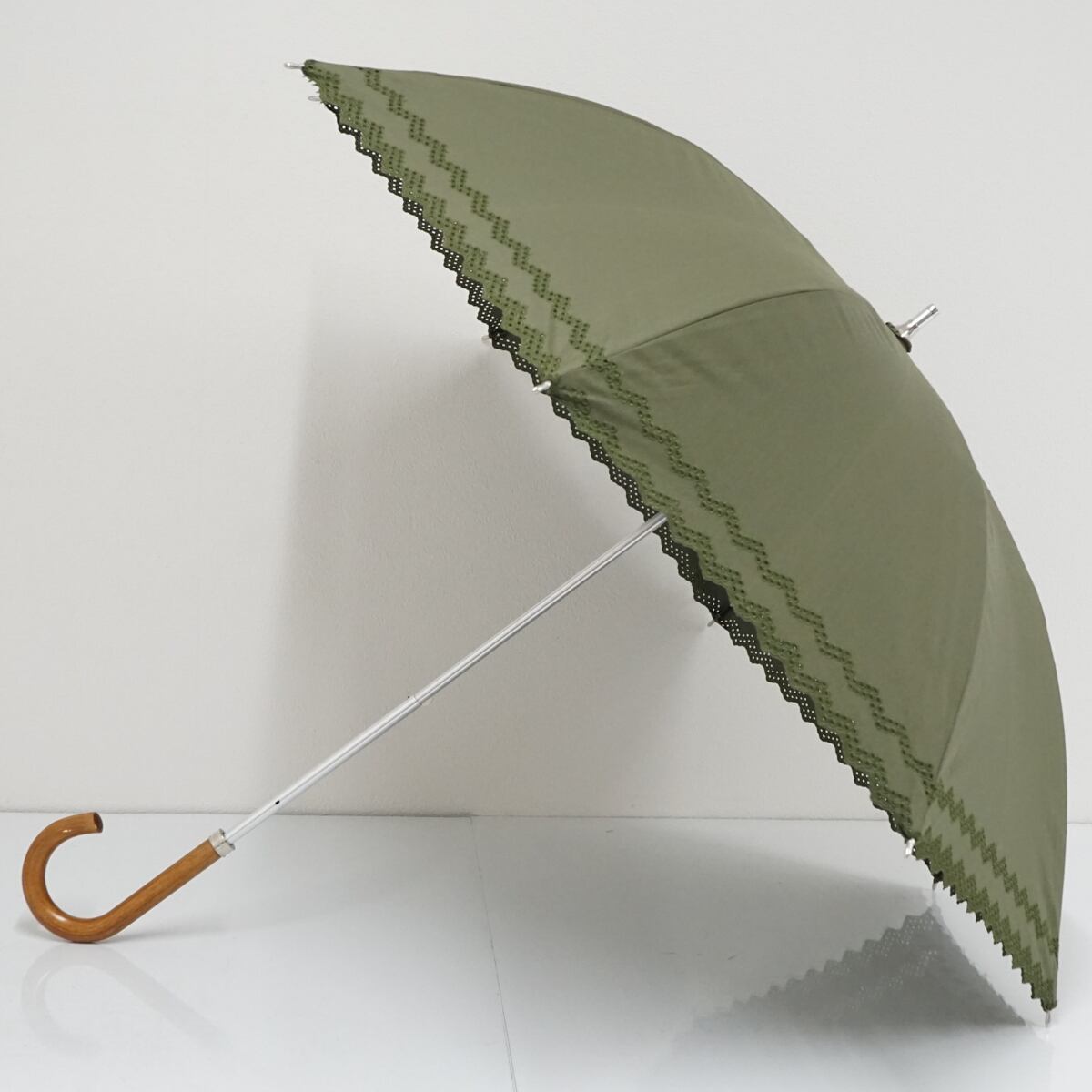 晴雨兼用日傘 POLO RALPH LAUREN ポロラルフローレン USED美品 グリーン ロゴ刺繍 グラス骨 UV 木製手元 50cm S1838