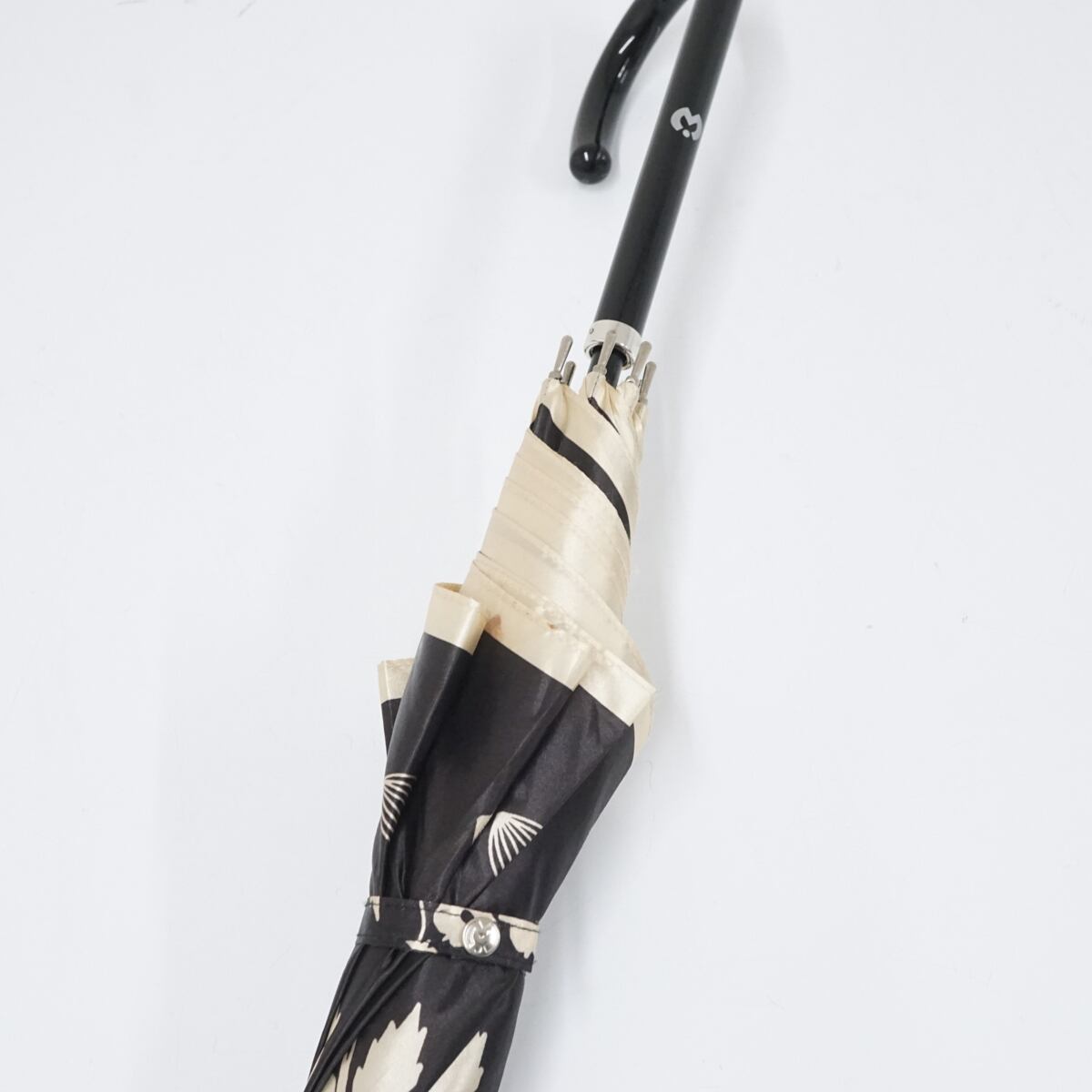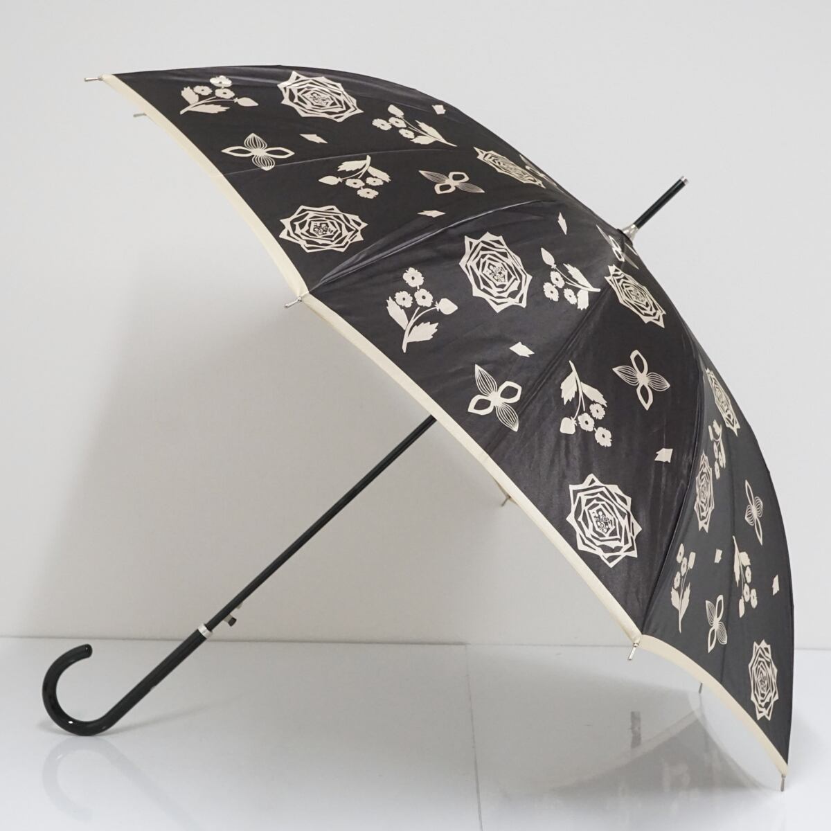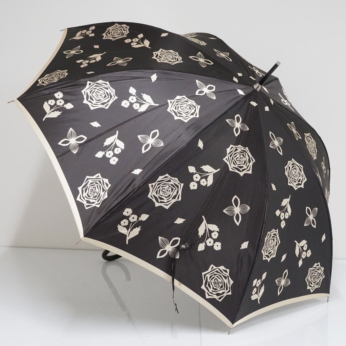 傘 mila schon ミラショーン USED美品 レディース ブラック 花柄 シルエット エレガント ジャンプ 60cm A1841