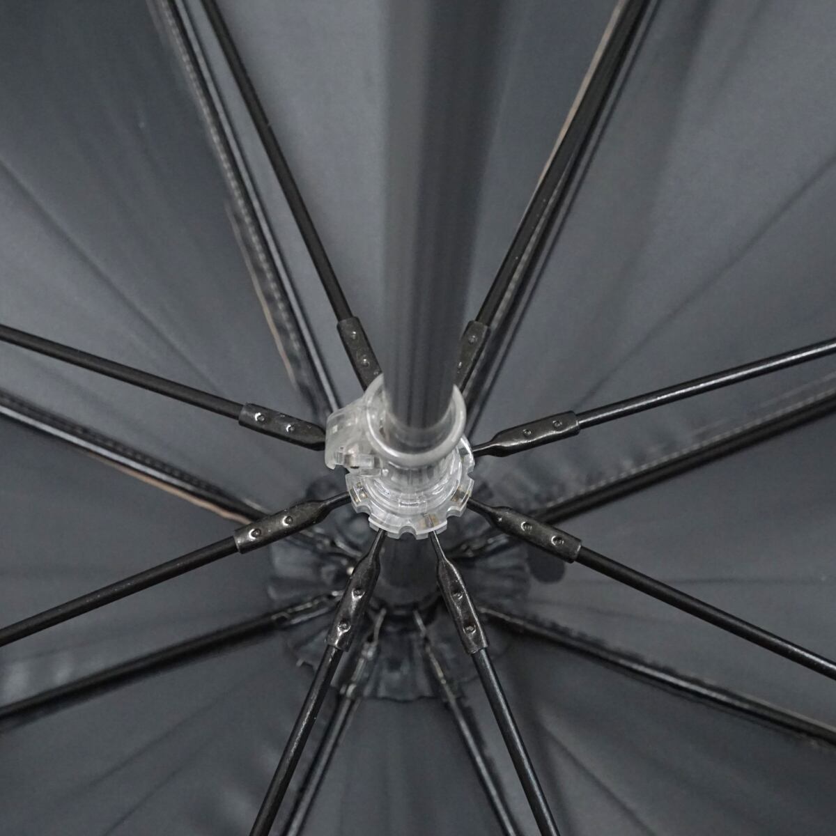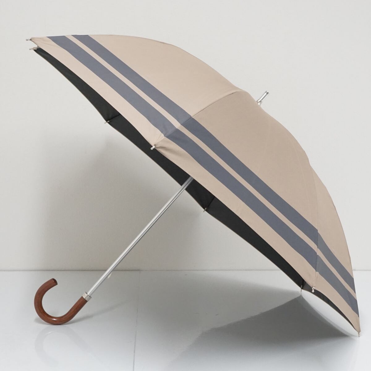 カーキの生地にボーダーラインをデザインしたシンプルでおしゃれな晴雨兼用日傘です。