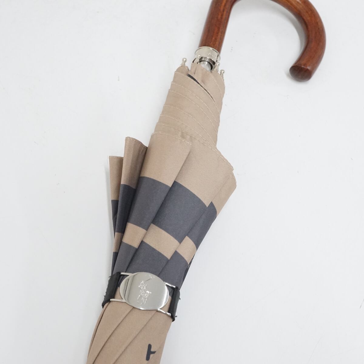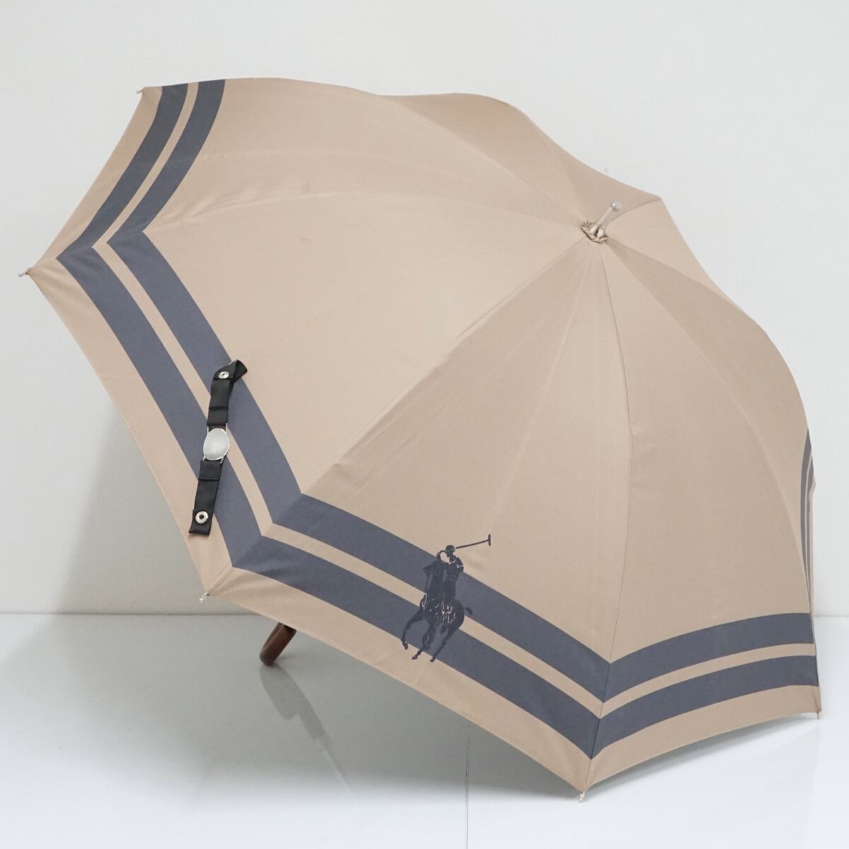 POLO RALPH LAUREN ポロラルフローレン 日傘 USED品 晴雨兼用 カーキ ボーダー ポロポニー UV 大きめ 53cm A1847