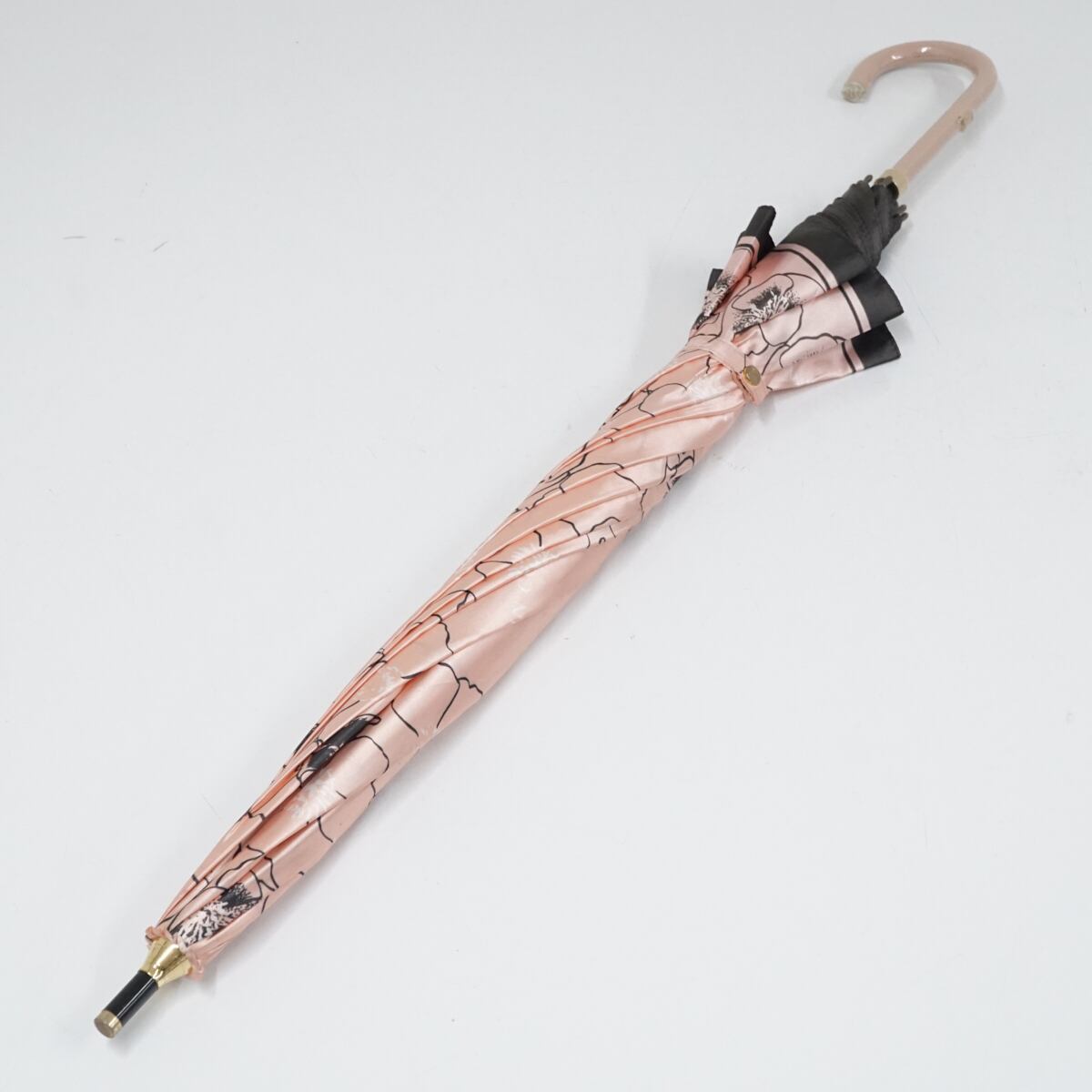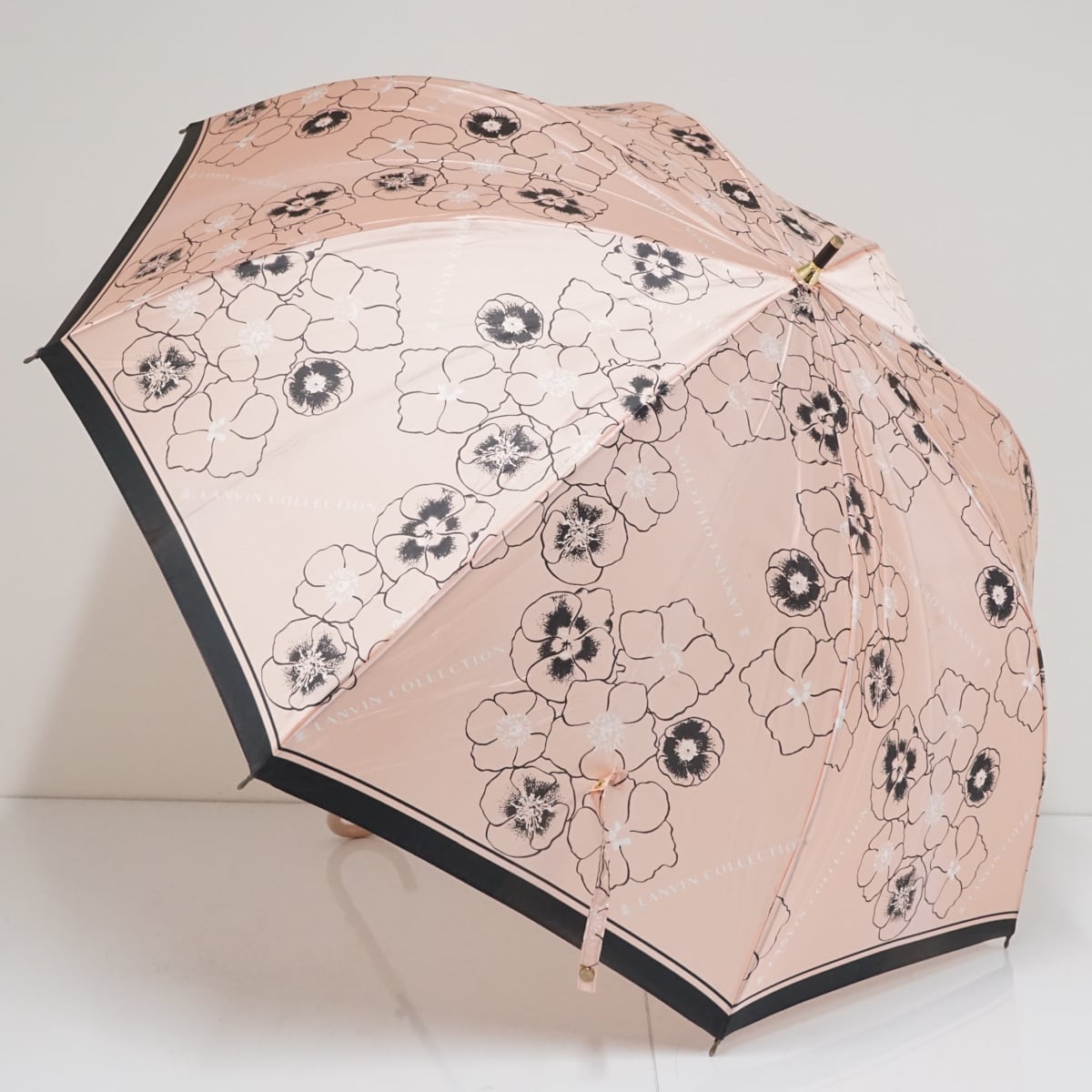LANVIN COLLECTION ランバンコレクション 傘 USED品 ピンク フラワープリント 花 グラスファイバーフレーム ジャンプ 60cm A1853