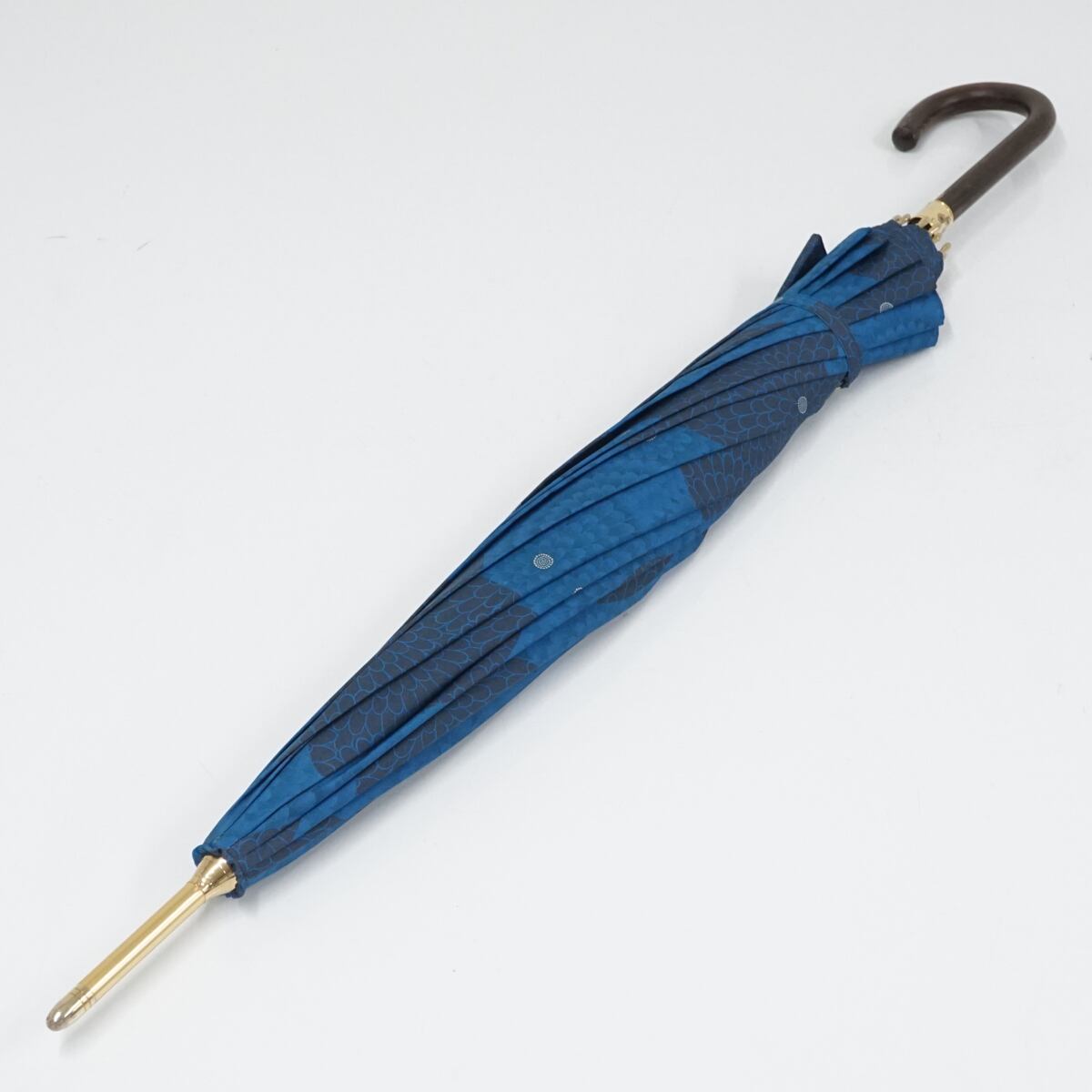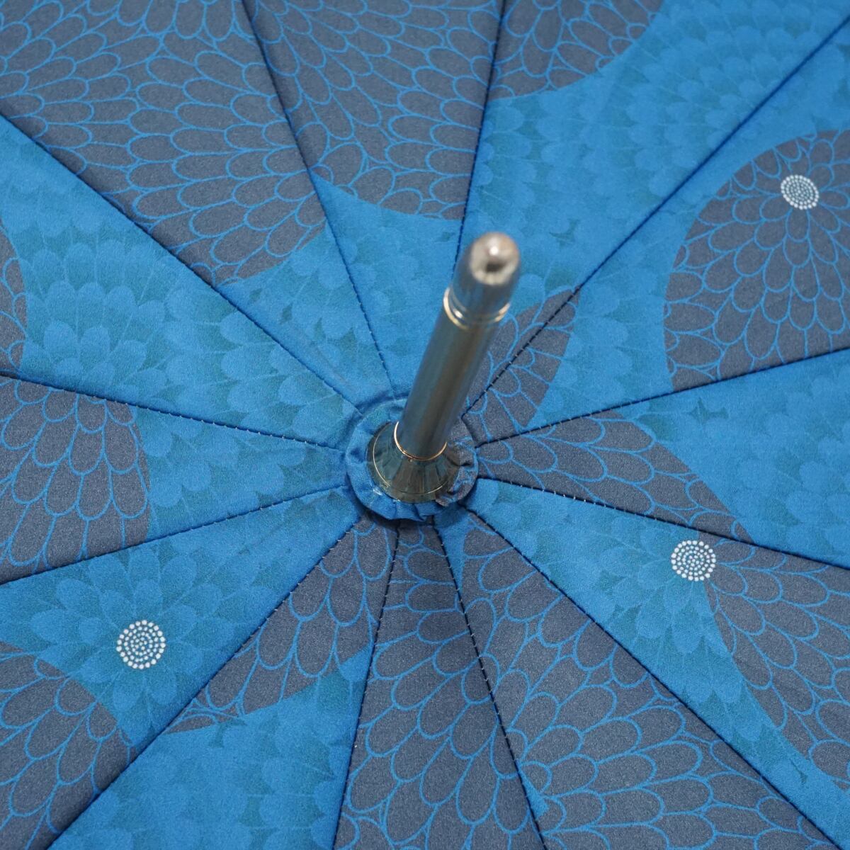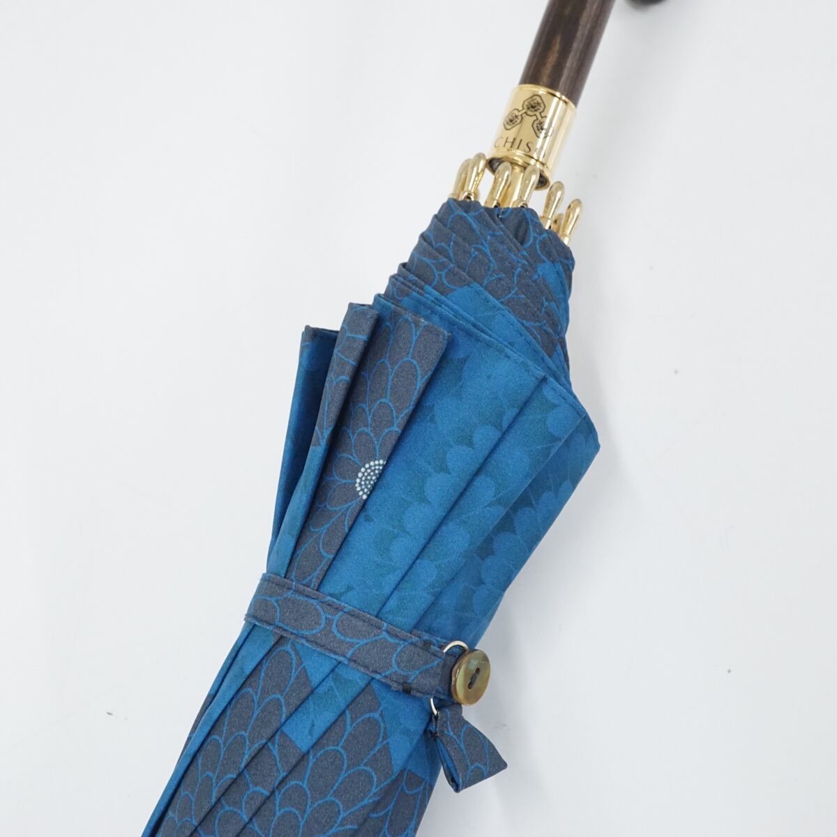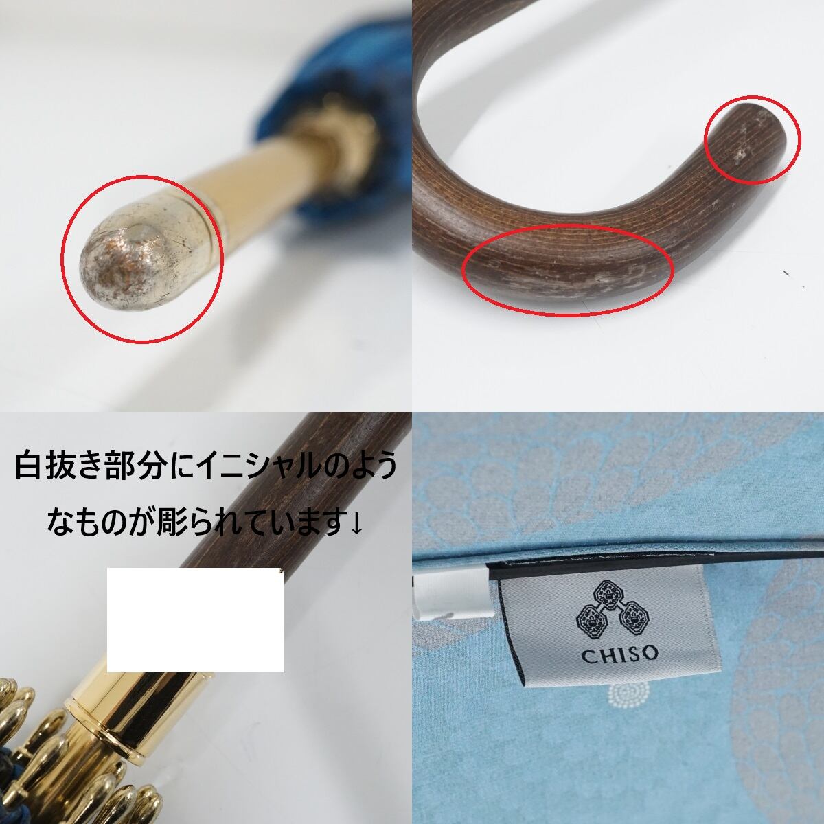 千總 CHISO 高級傘 USED美品 和柄 12本骨 多間 高級 老舗 エレガント おしゃれ ブルー系 雨傘 長傘 55cm S1857