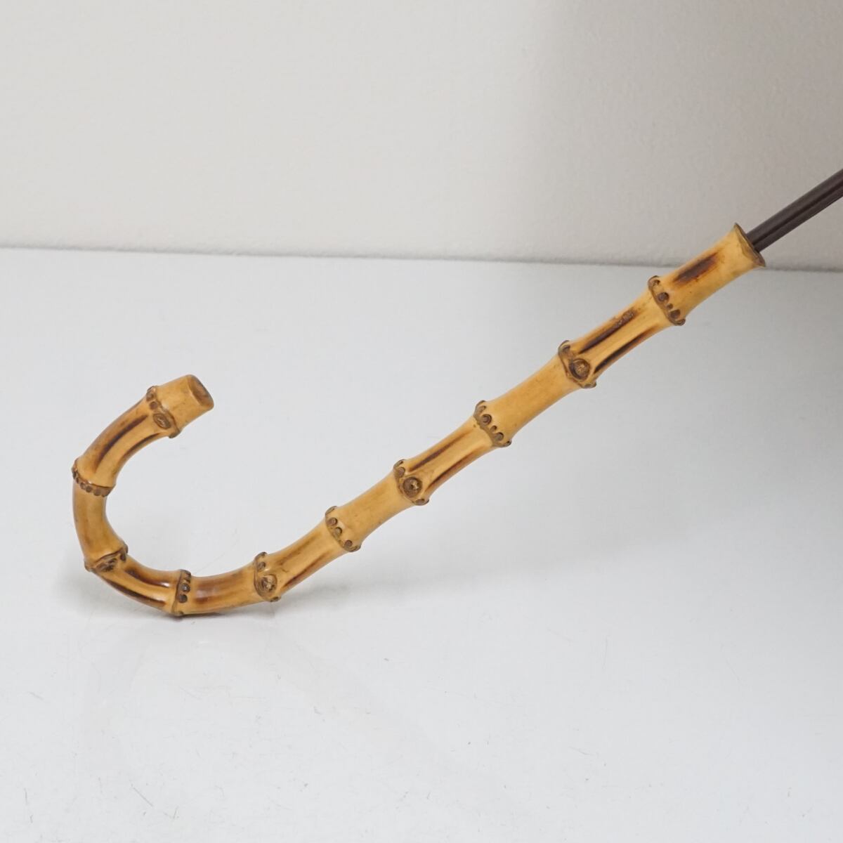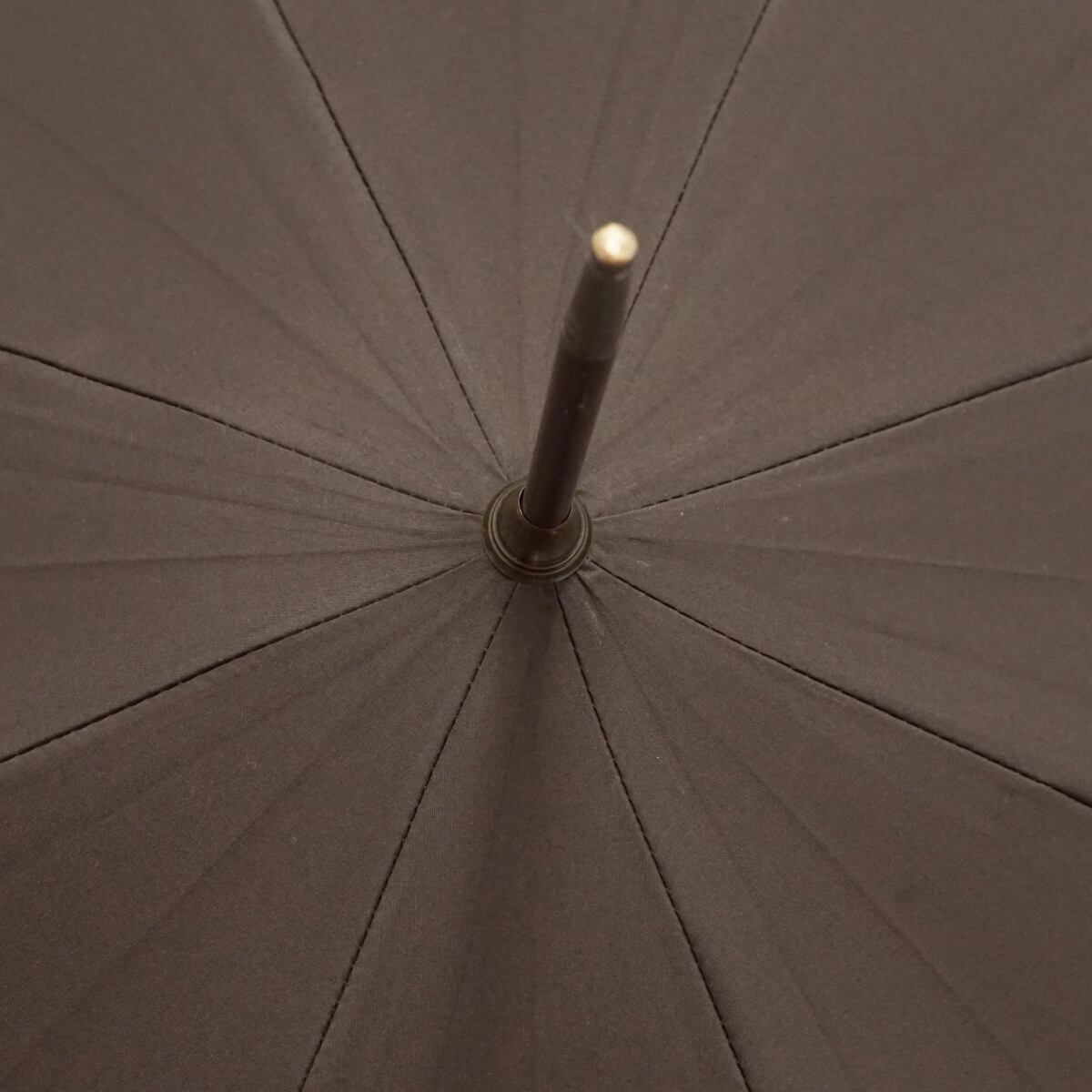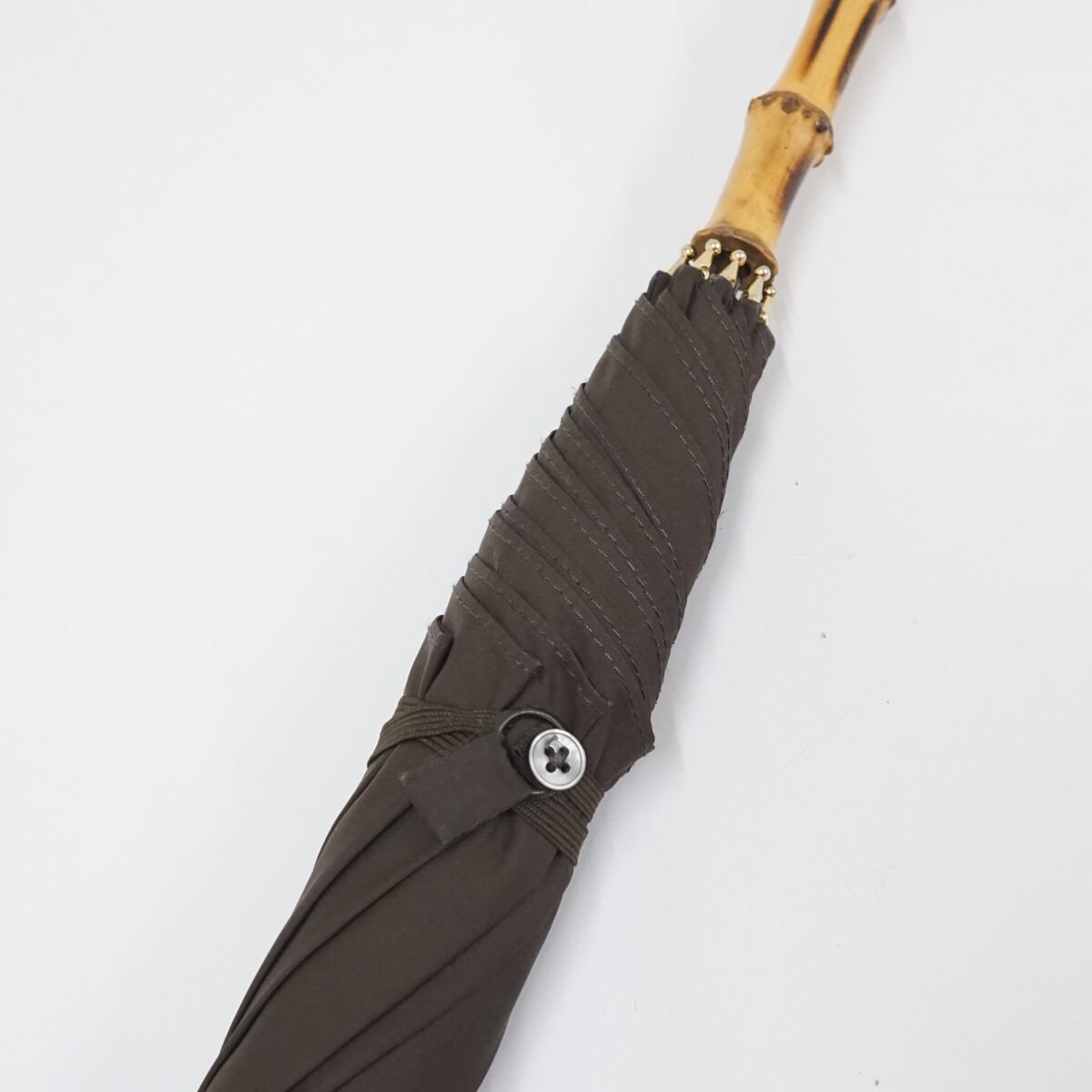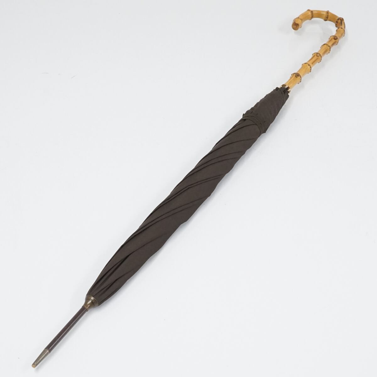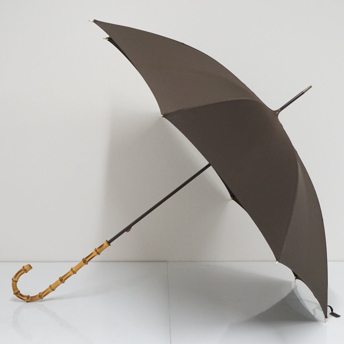 こちらはブラウンのシンプルな生地に長めの寒竹手元を合わせたナチュラルな印象の逸品です。