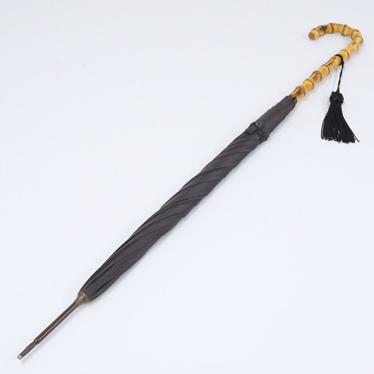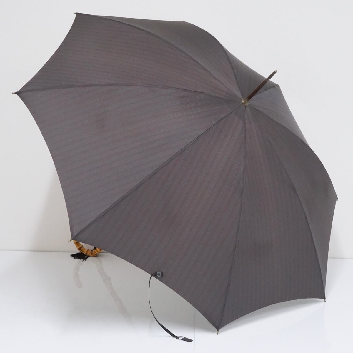 こちらはストライプの生地に長めの寒竹手元を合わせたナチュラルな印象の逸品です。