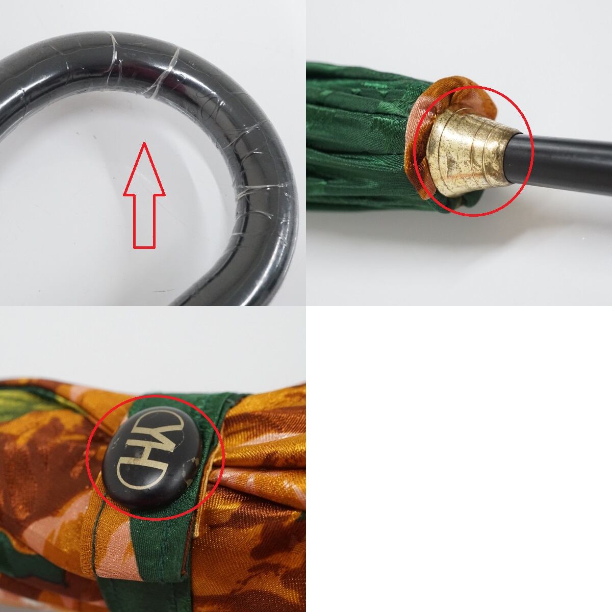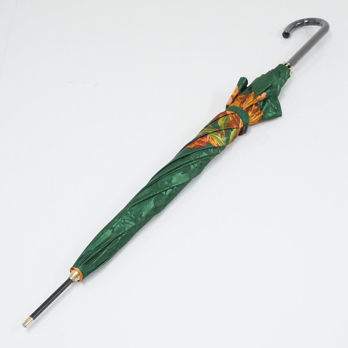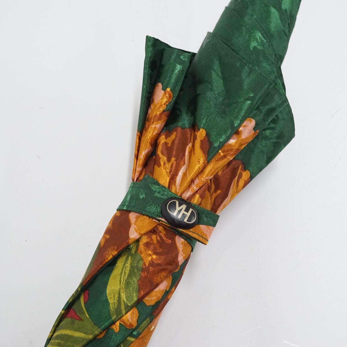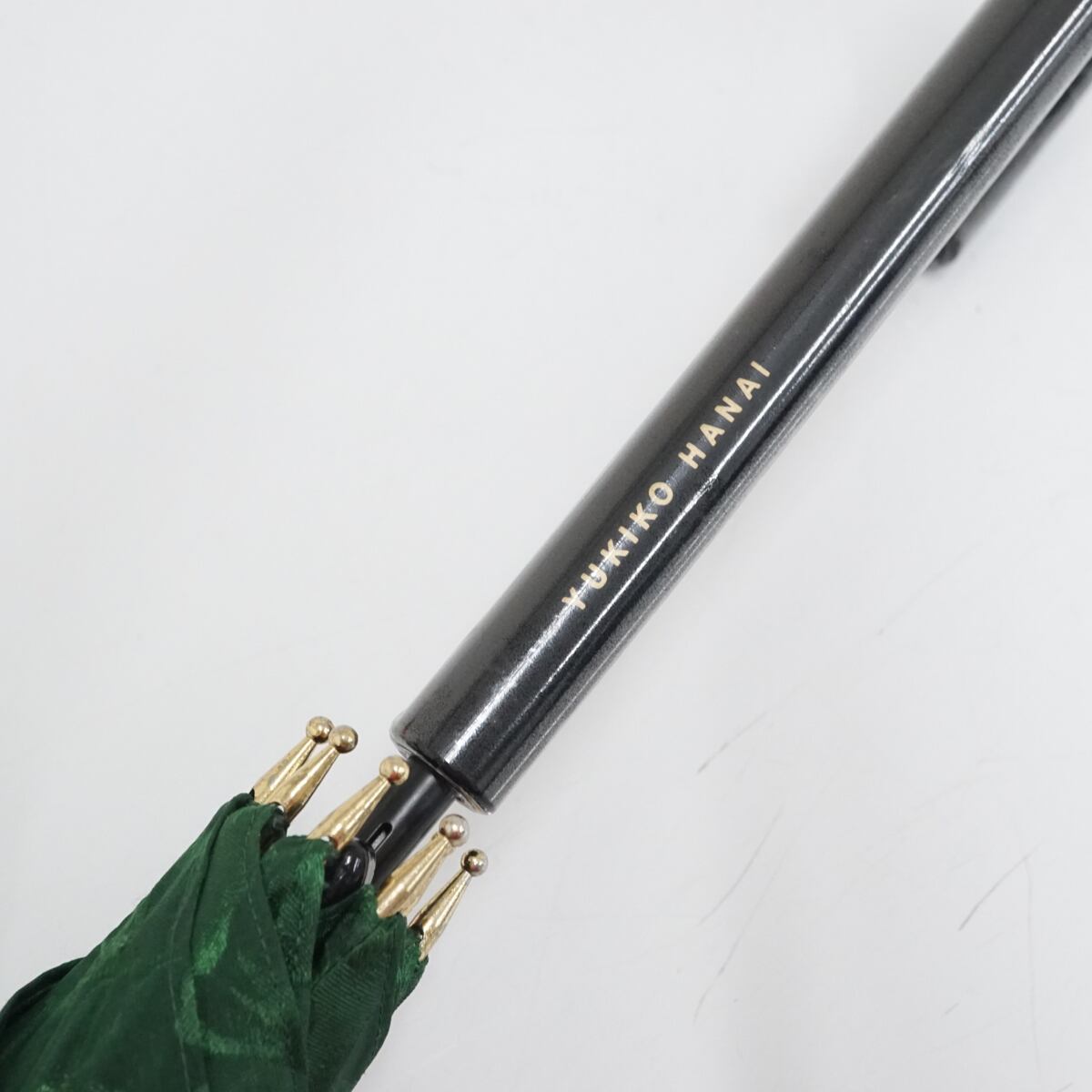 YUKIKO HANAI ユキコハナイ 傘 USED美品 エレガント グリーン フラワー 個性的 ロゴ ジャンプ 60cm S1863