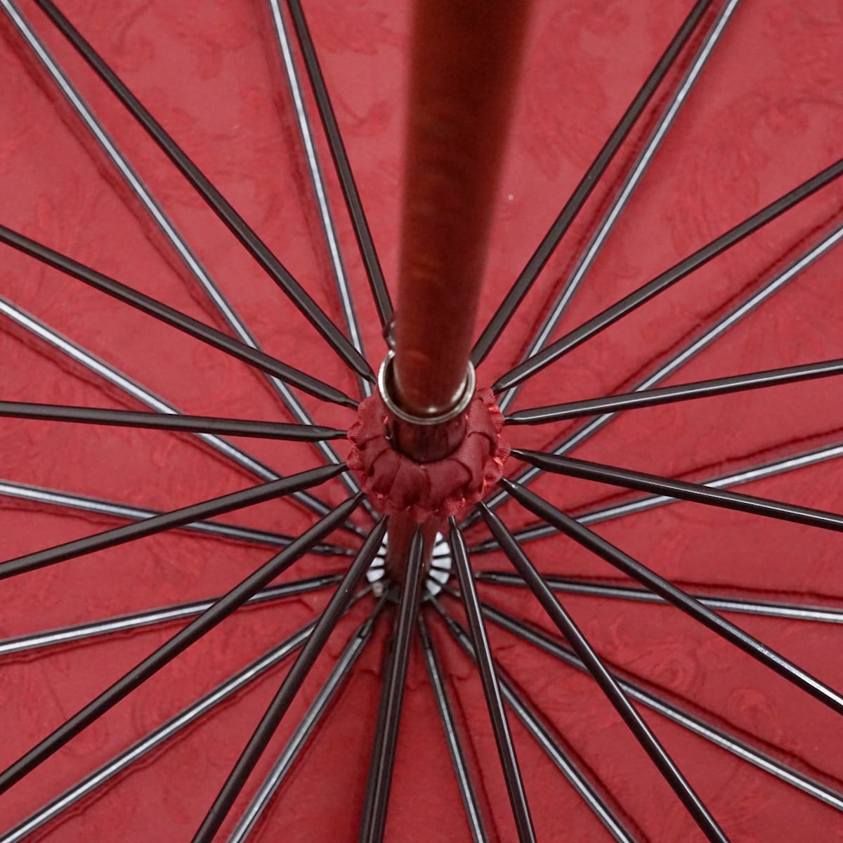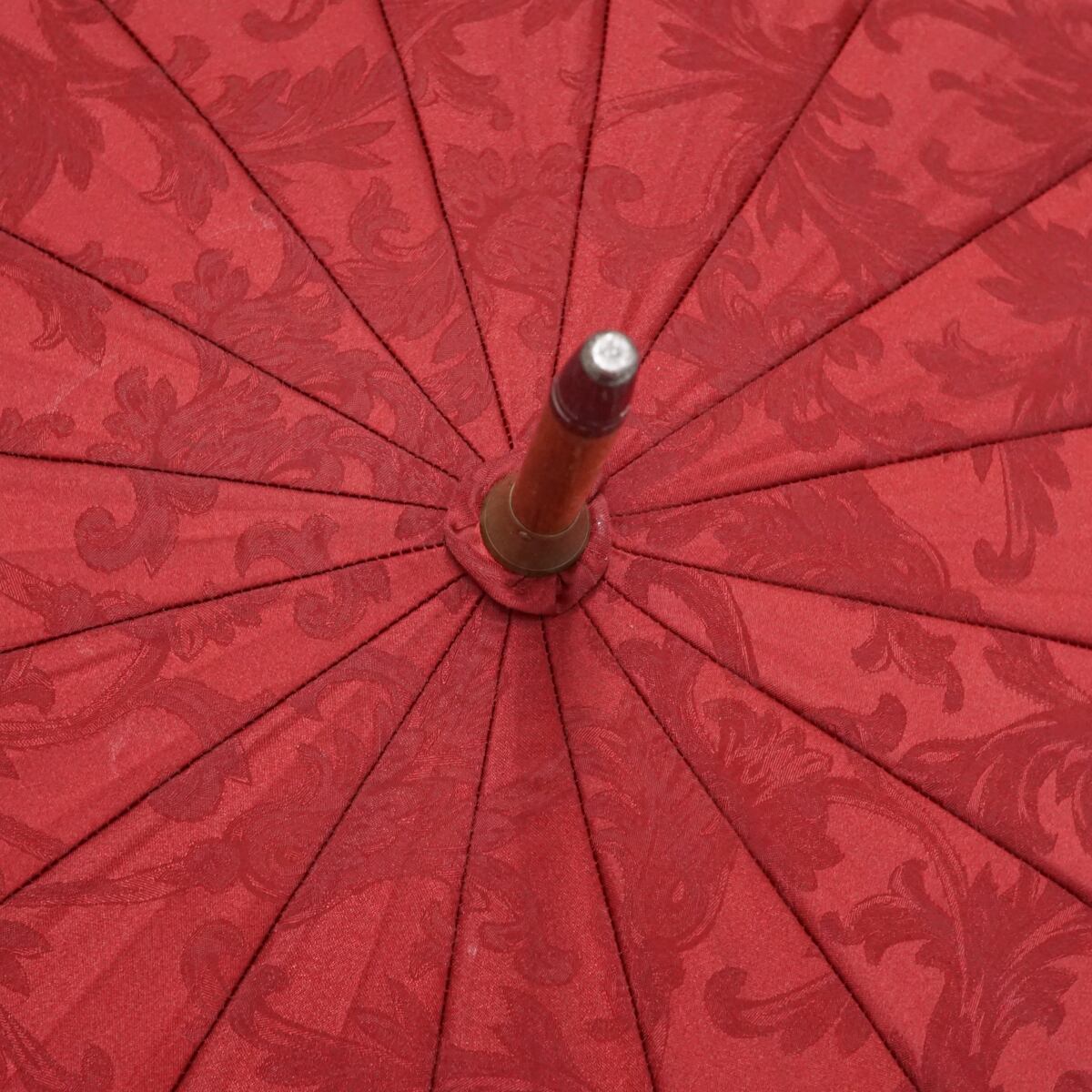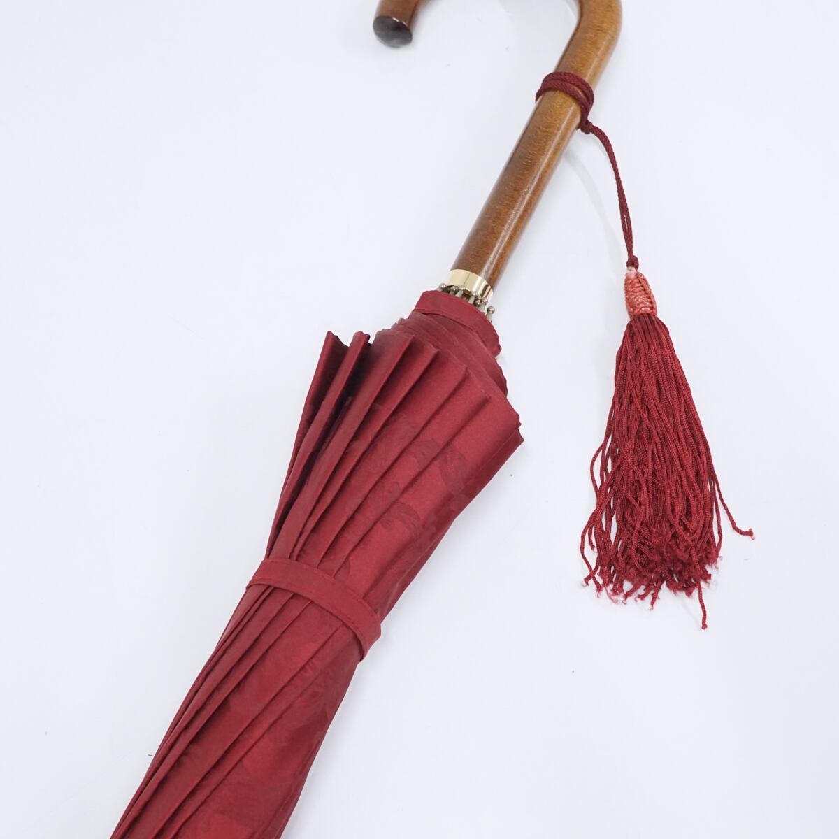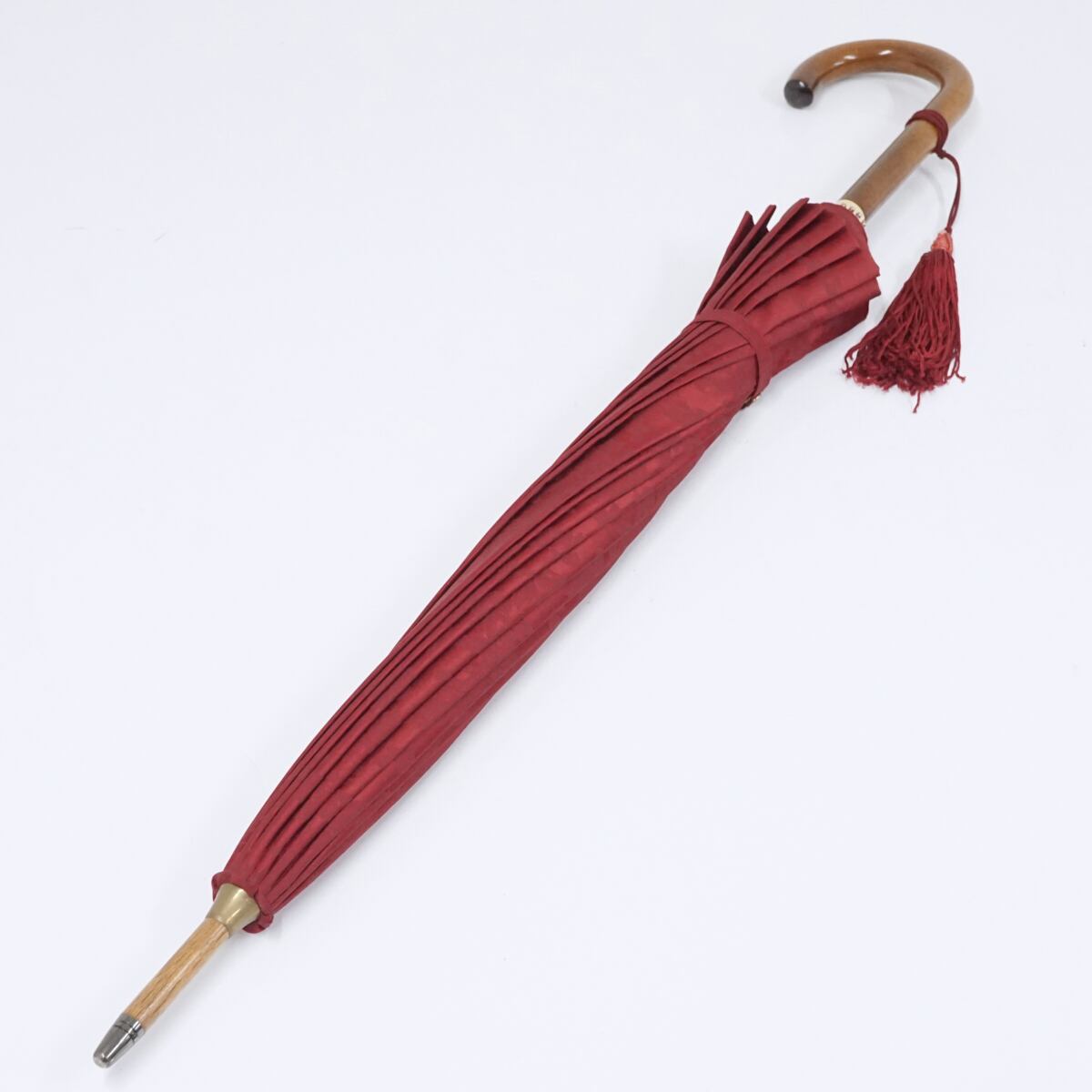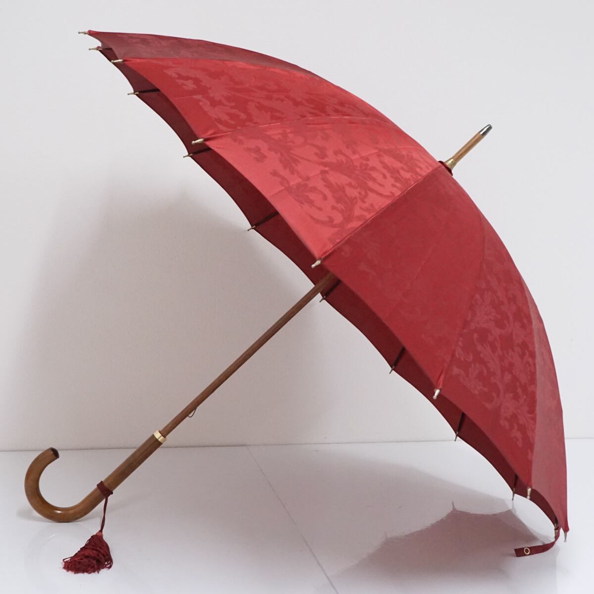 傘 前原光榮商店 USED美品 ラルフ レッド エンジ ジャガード織 16本骨 多間 レディース 楓手元 高級 日本製 皇室御用達 55cm S1864