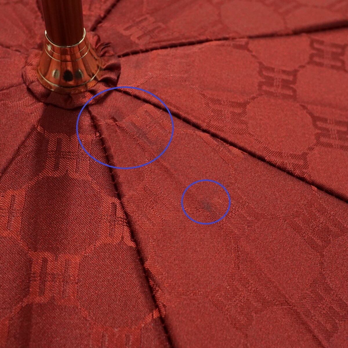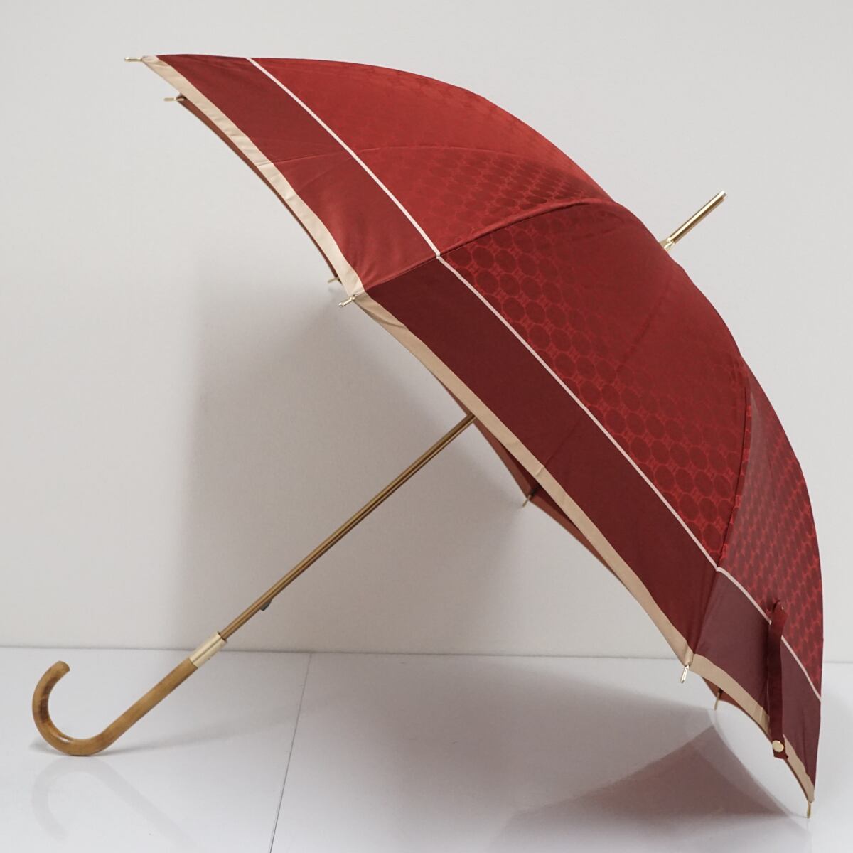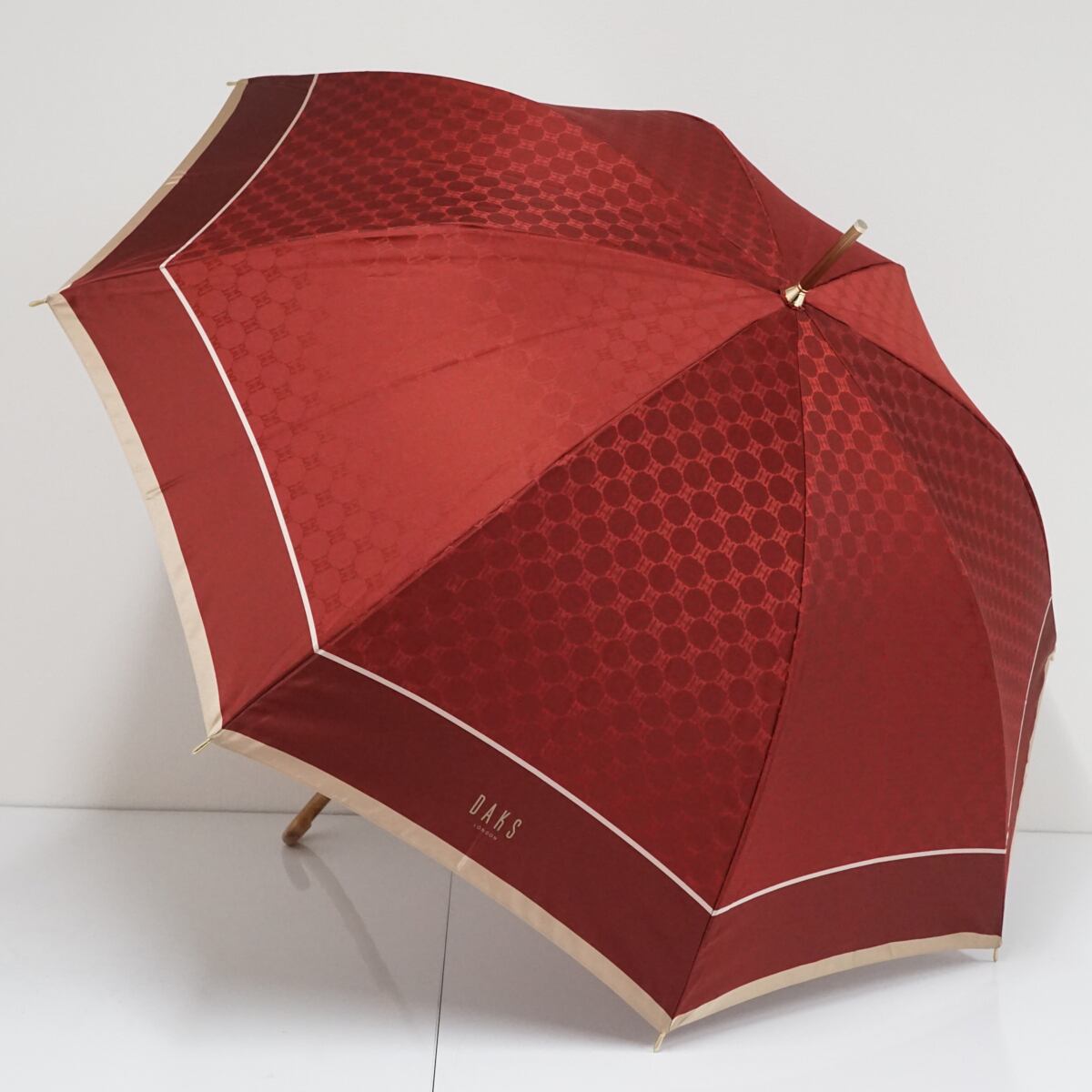 傘 DAKS ダックス 高級 USED美品 ジャガード レッド ロゴ モノグラム 60cm グラス骨 S1866