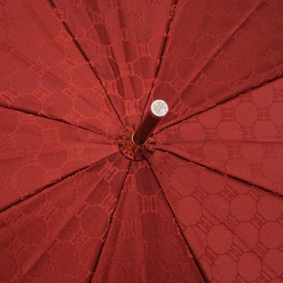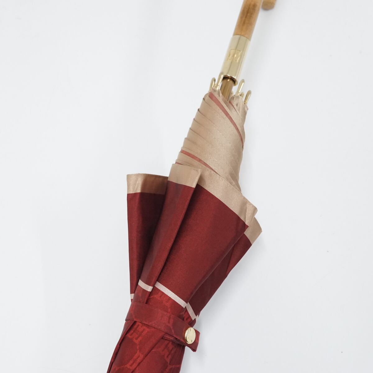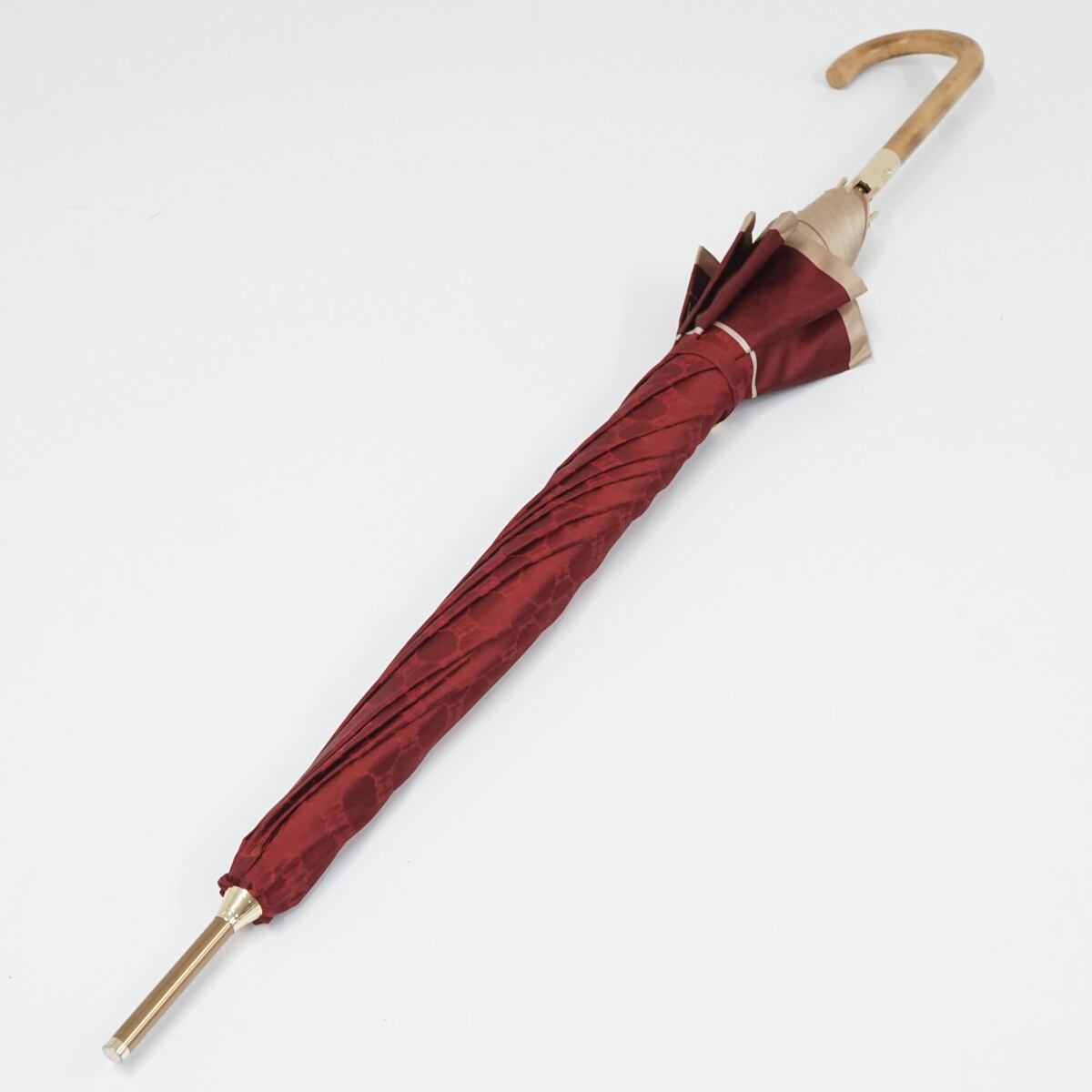 傘 DAKS ダックス 高級 USED美品 ジャガード レッド ロゴ モノグラム 60cm グラス骨 S1866