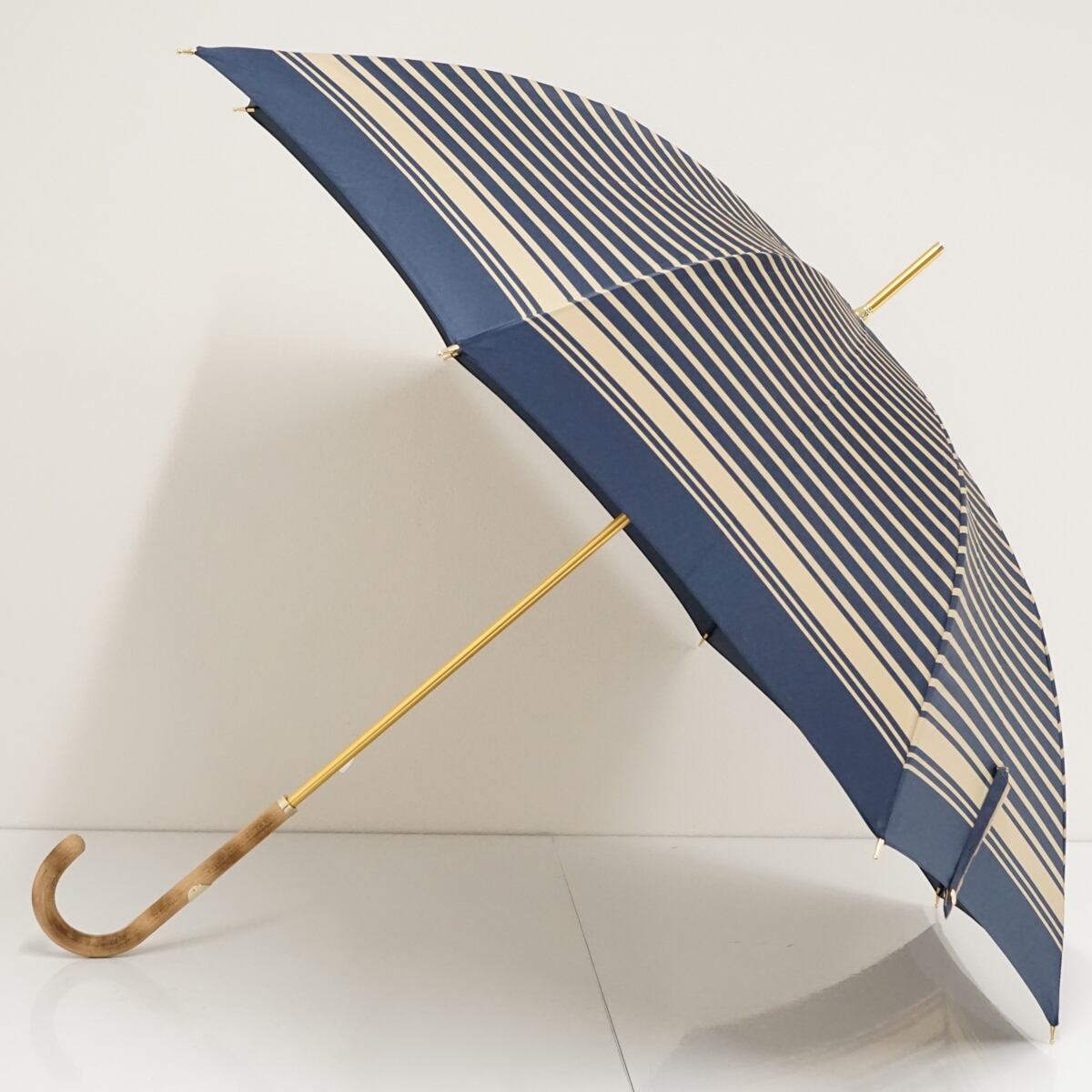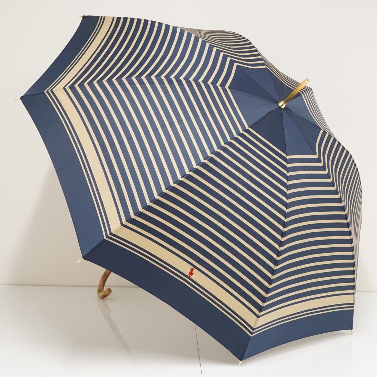 傘 Polo Ralph Lauren ポロラルフローレン USED美品 レディース ボーダー ポロ刺繍 木製手元 60cm S1870