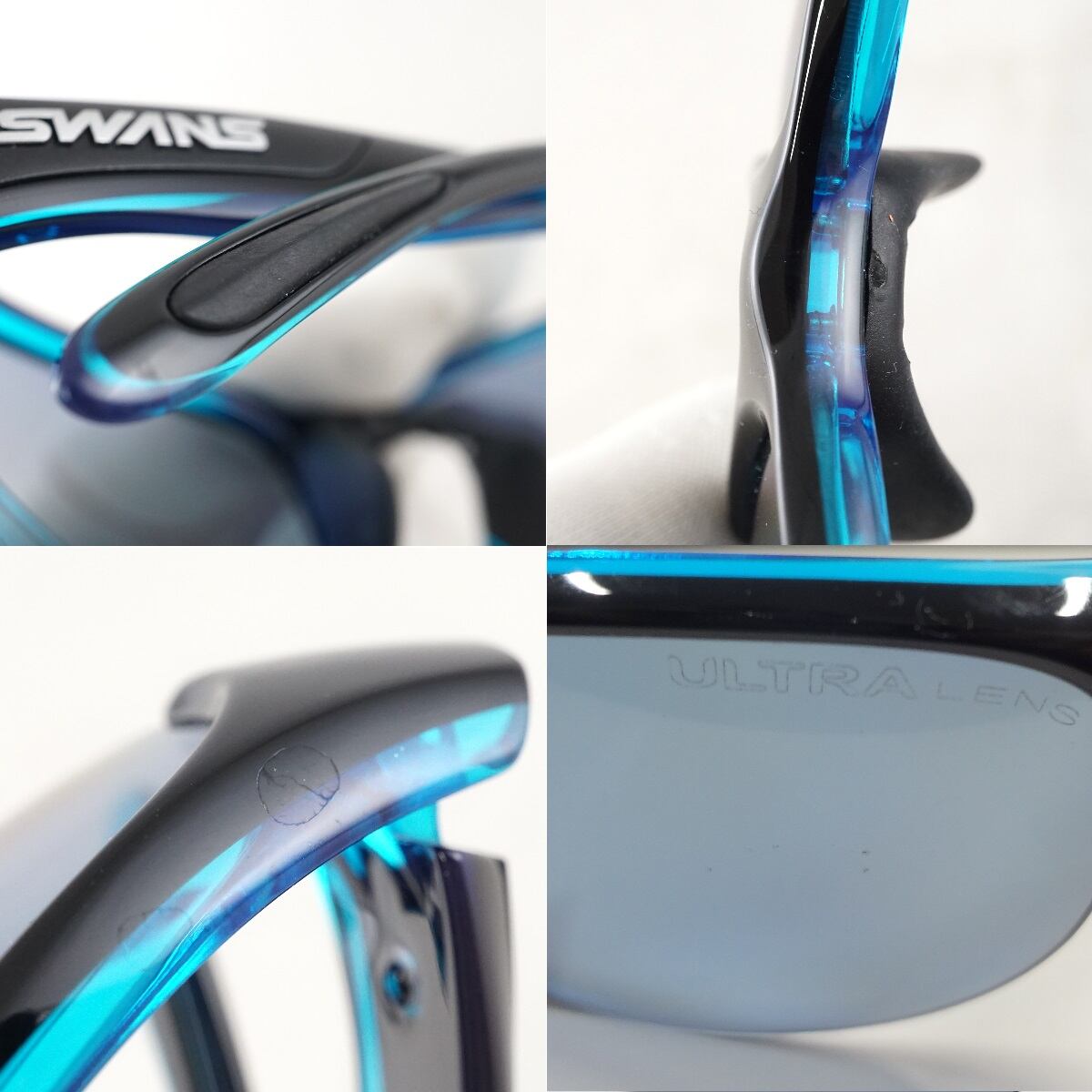 サングラス SWANS USED美品 ULTRA LENS ブルーxブラック スポーツサングラス 中古 アイウェア X6041