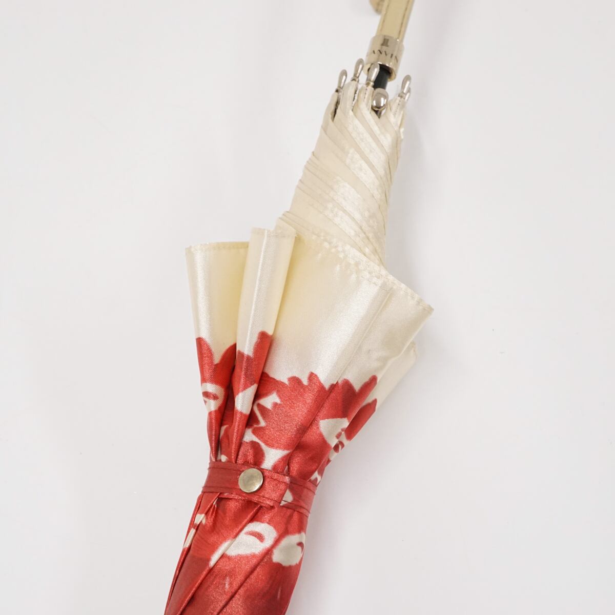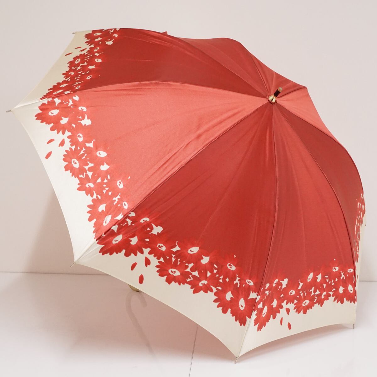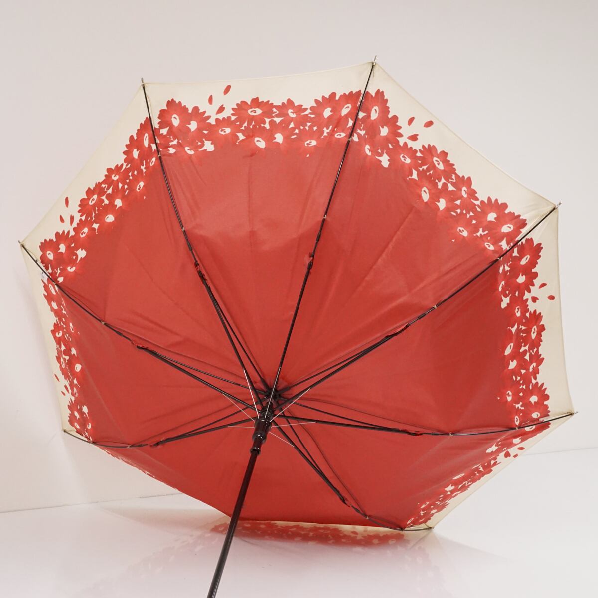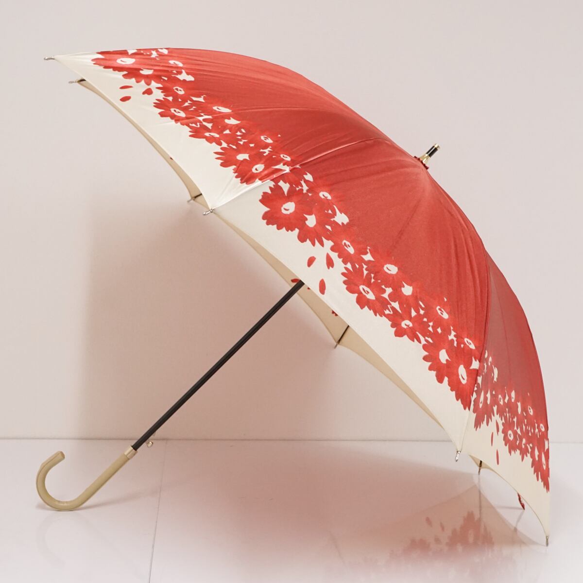 鮮やかなレッドをベースに、外周にフラワーをデザインした「ランバンオンブルー」のアンブレラです。