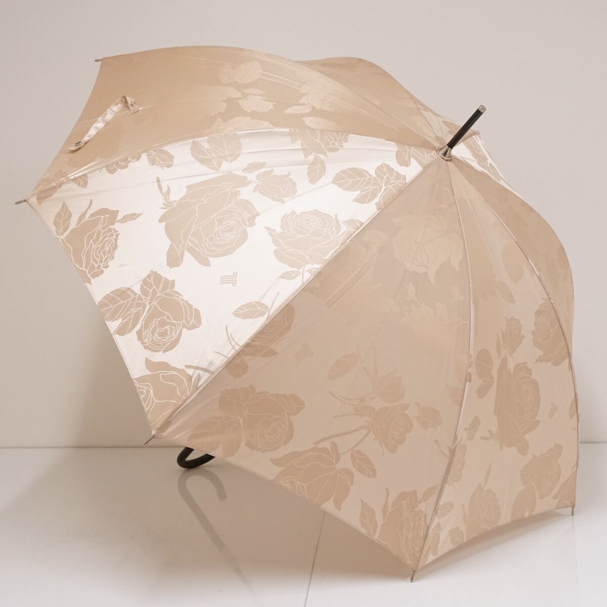 傘 LANVIN COLLECTION ランバンコレクション USED超美品 ロゴ ローズ ベージュ ジャガード 60cm S1884